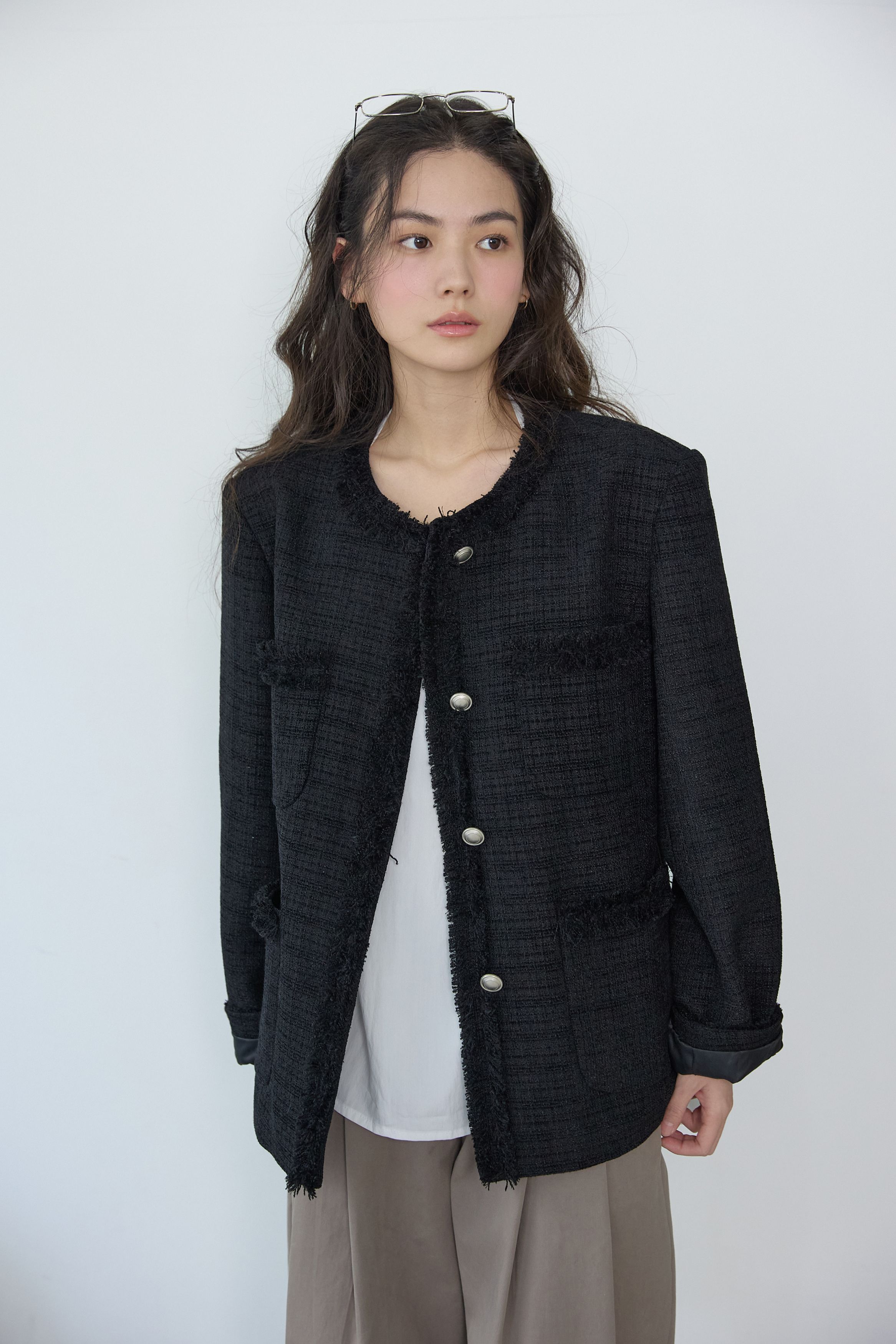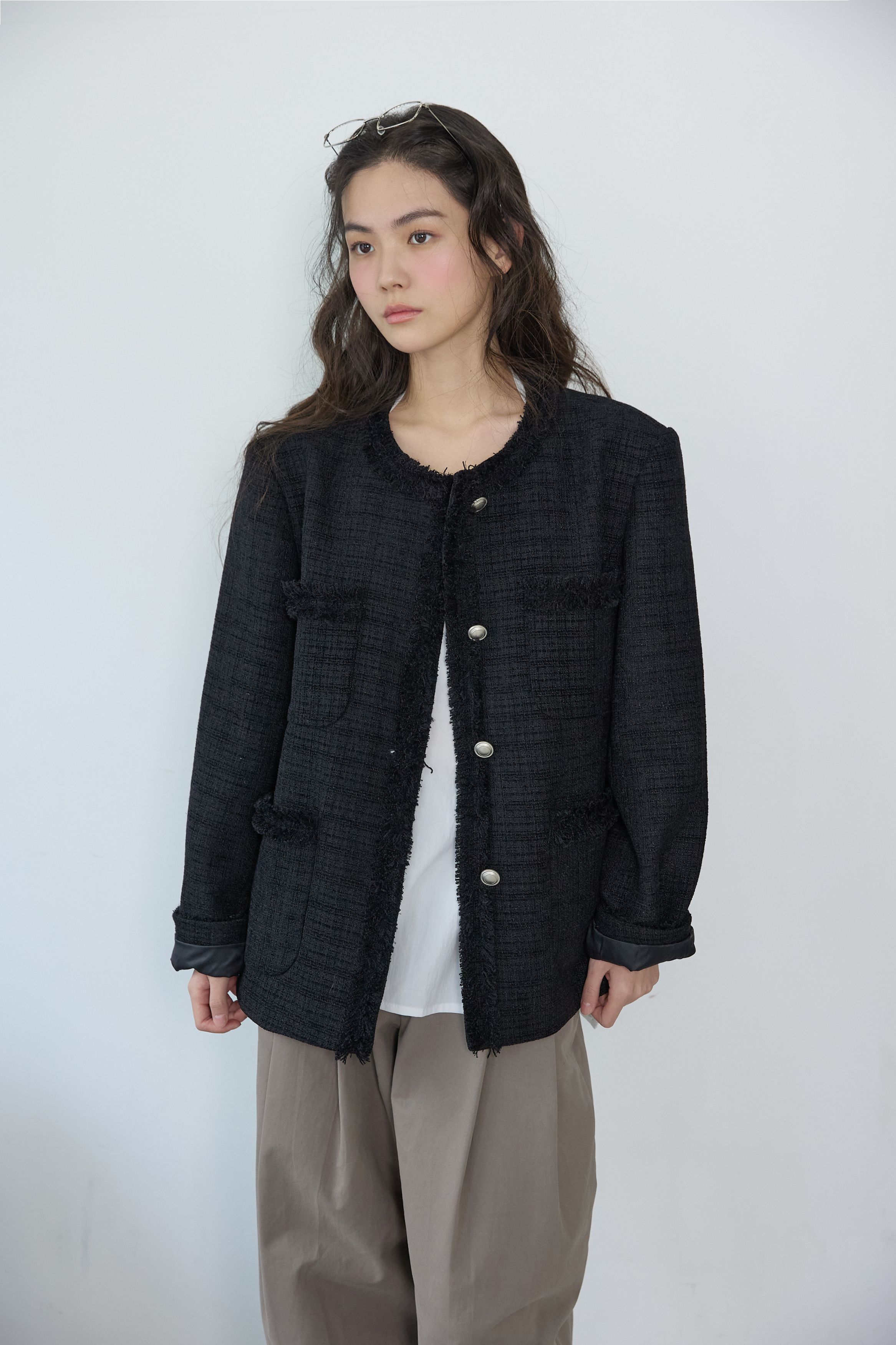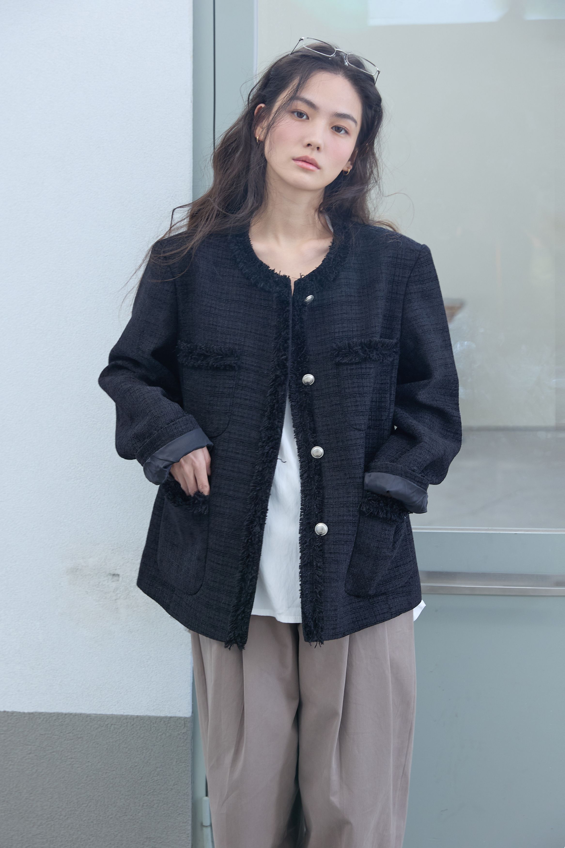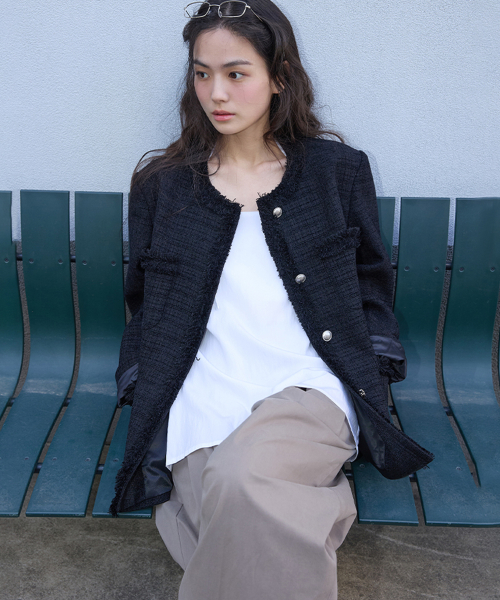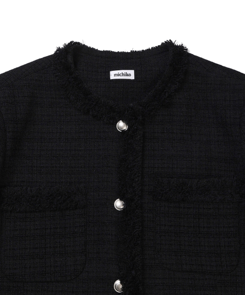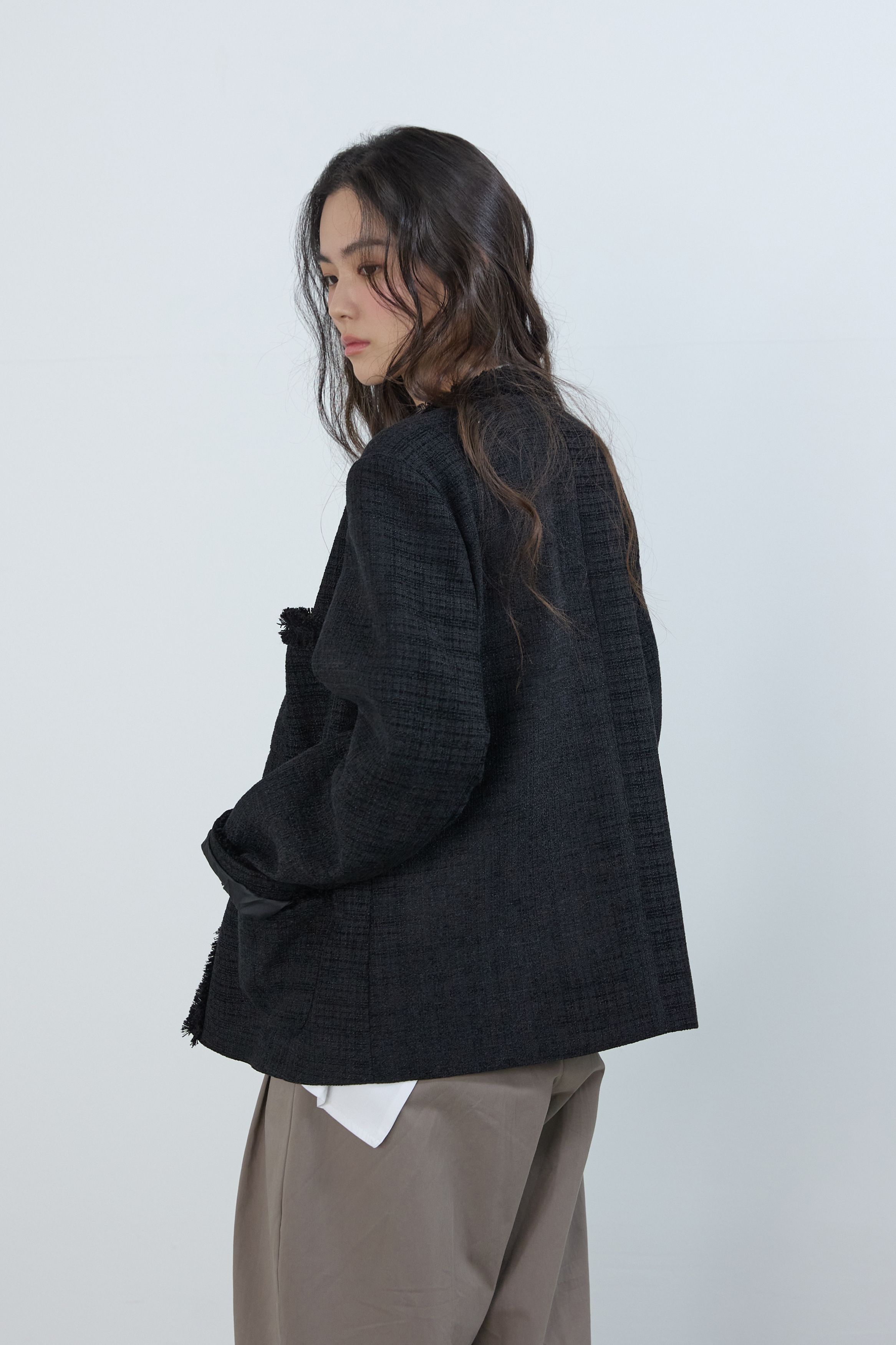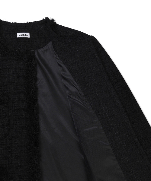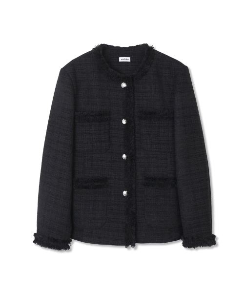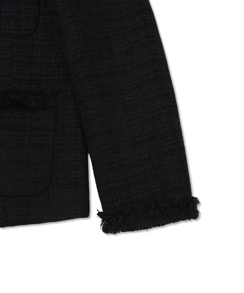 [무료반품] 프린지 트위드 자켓 블랙