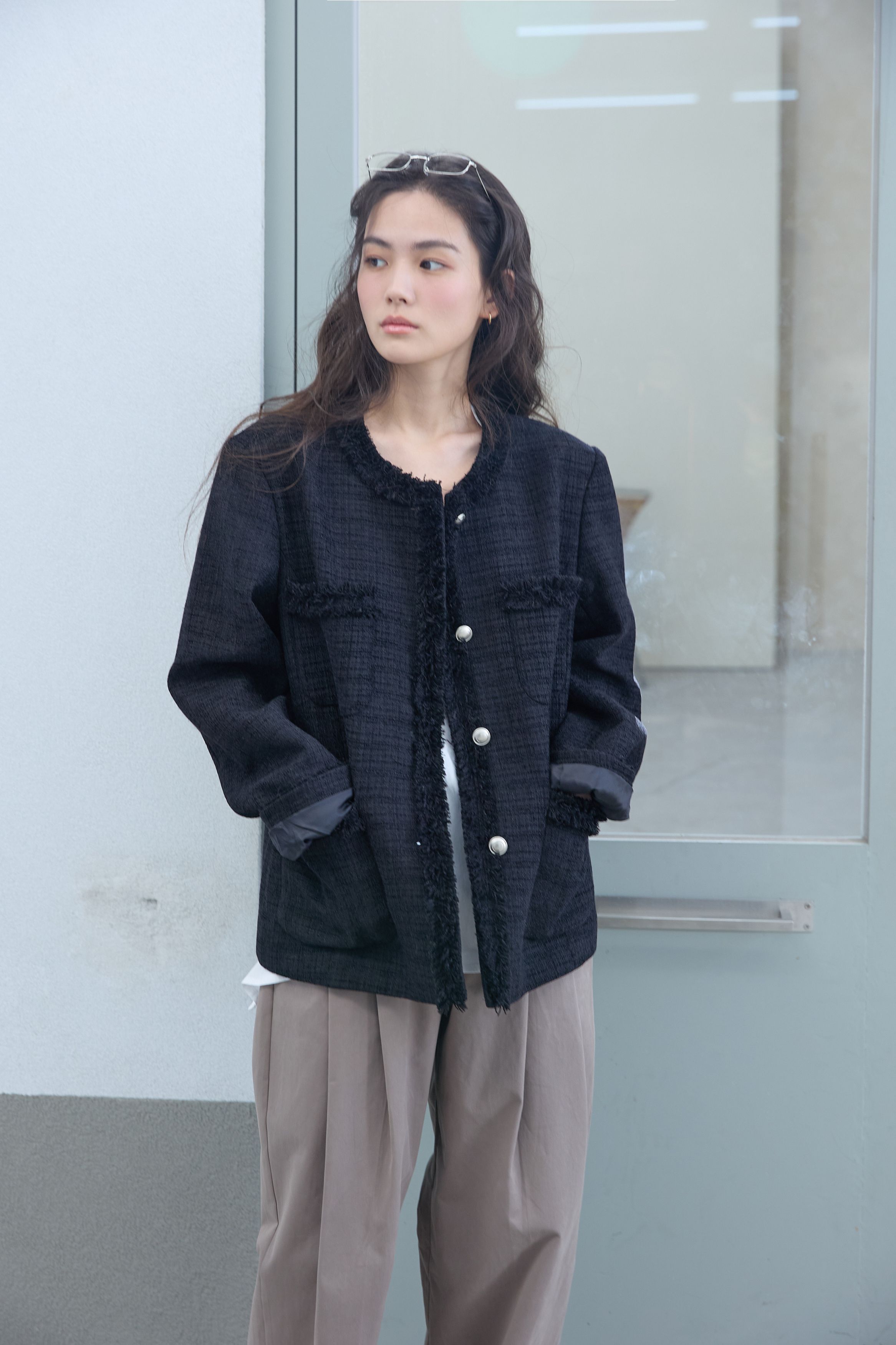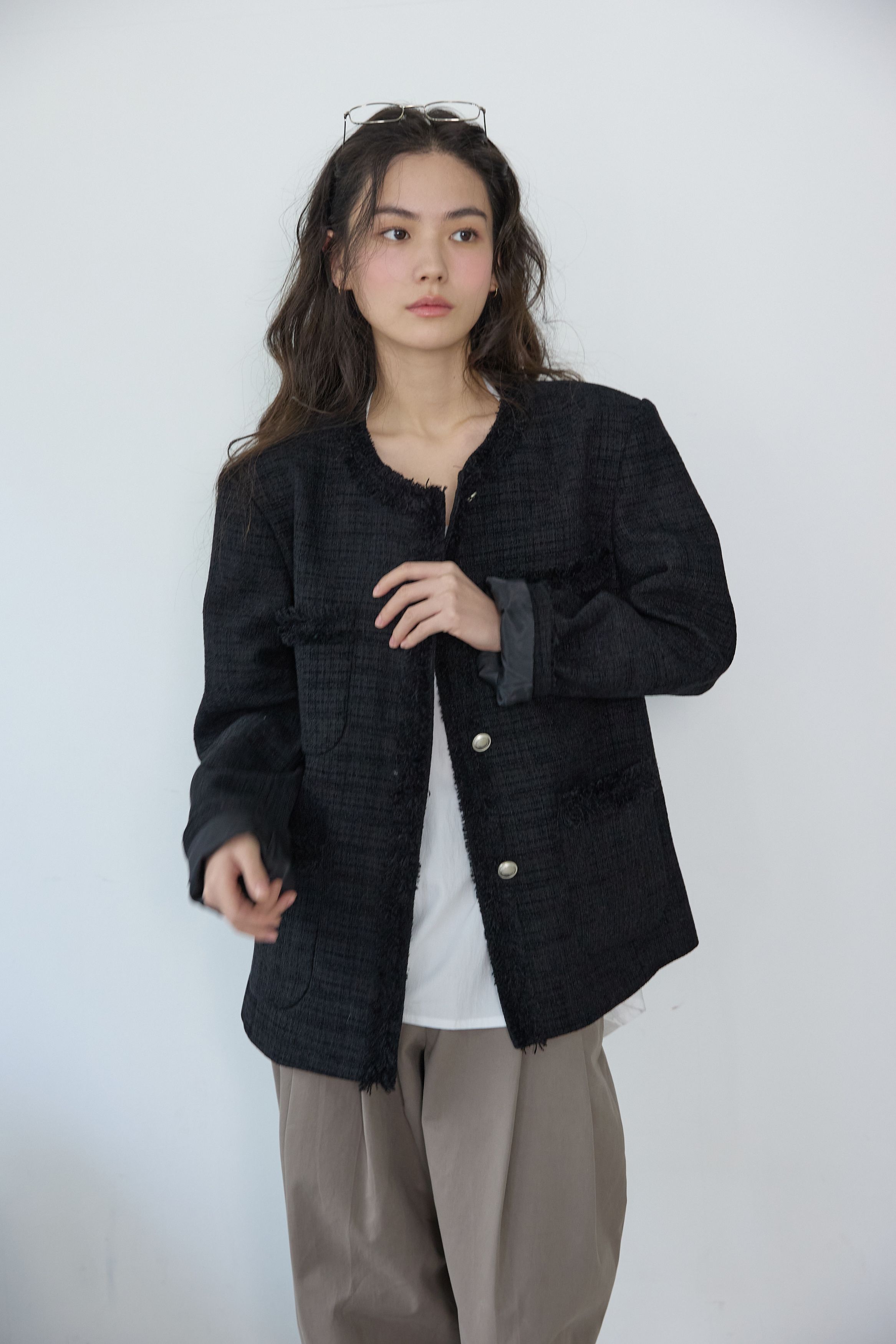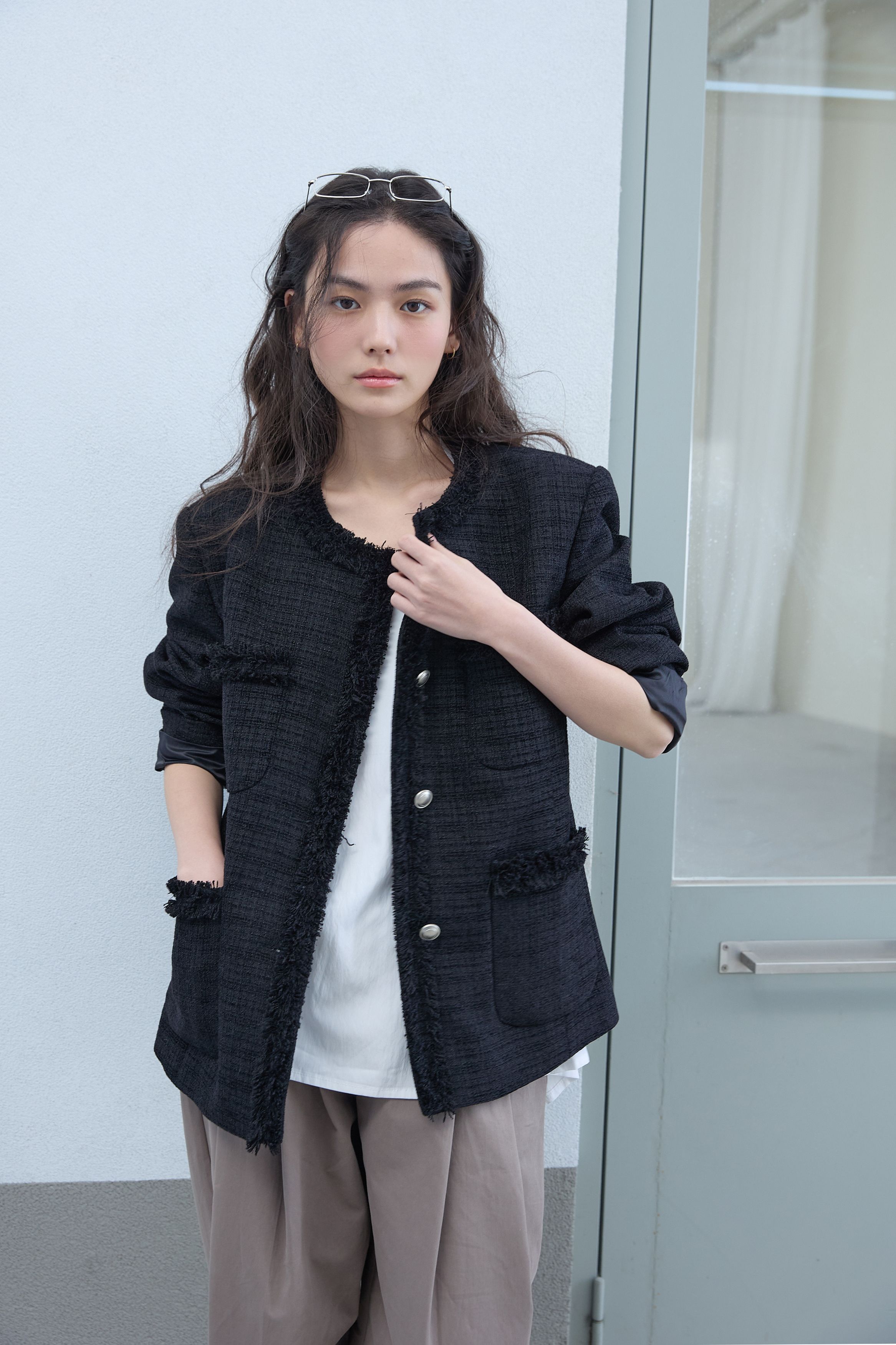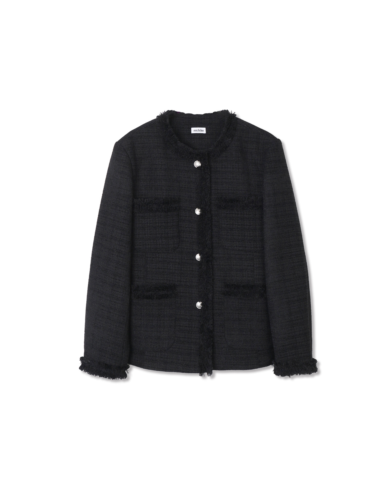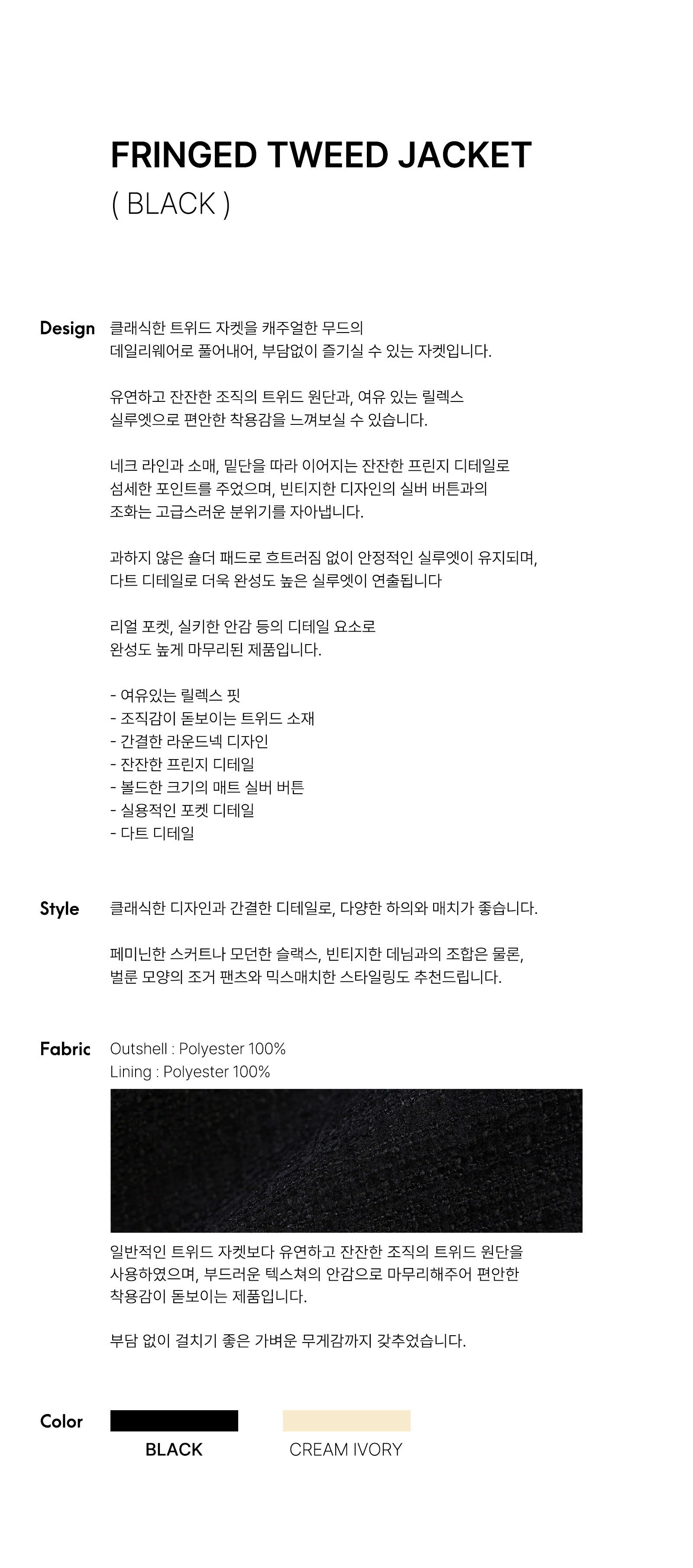 [무료반품] 프린지 트위드 자켓 블랙