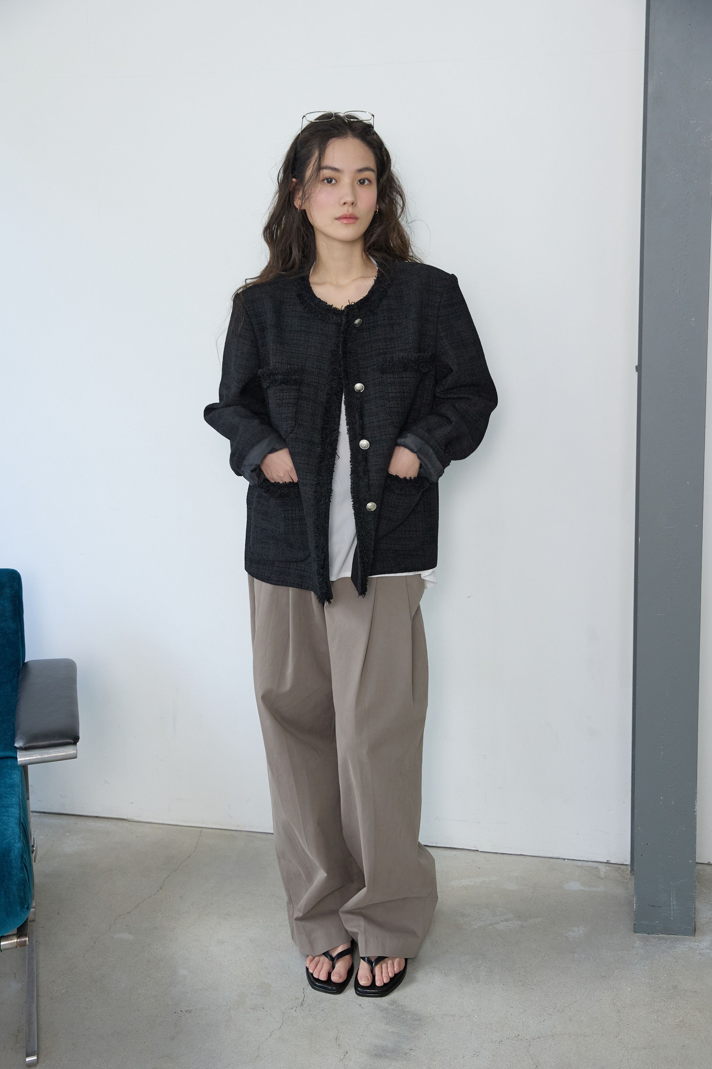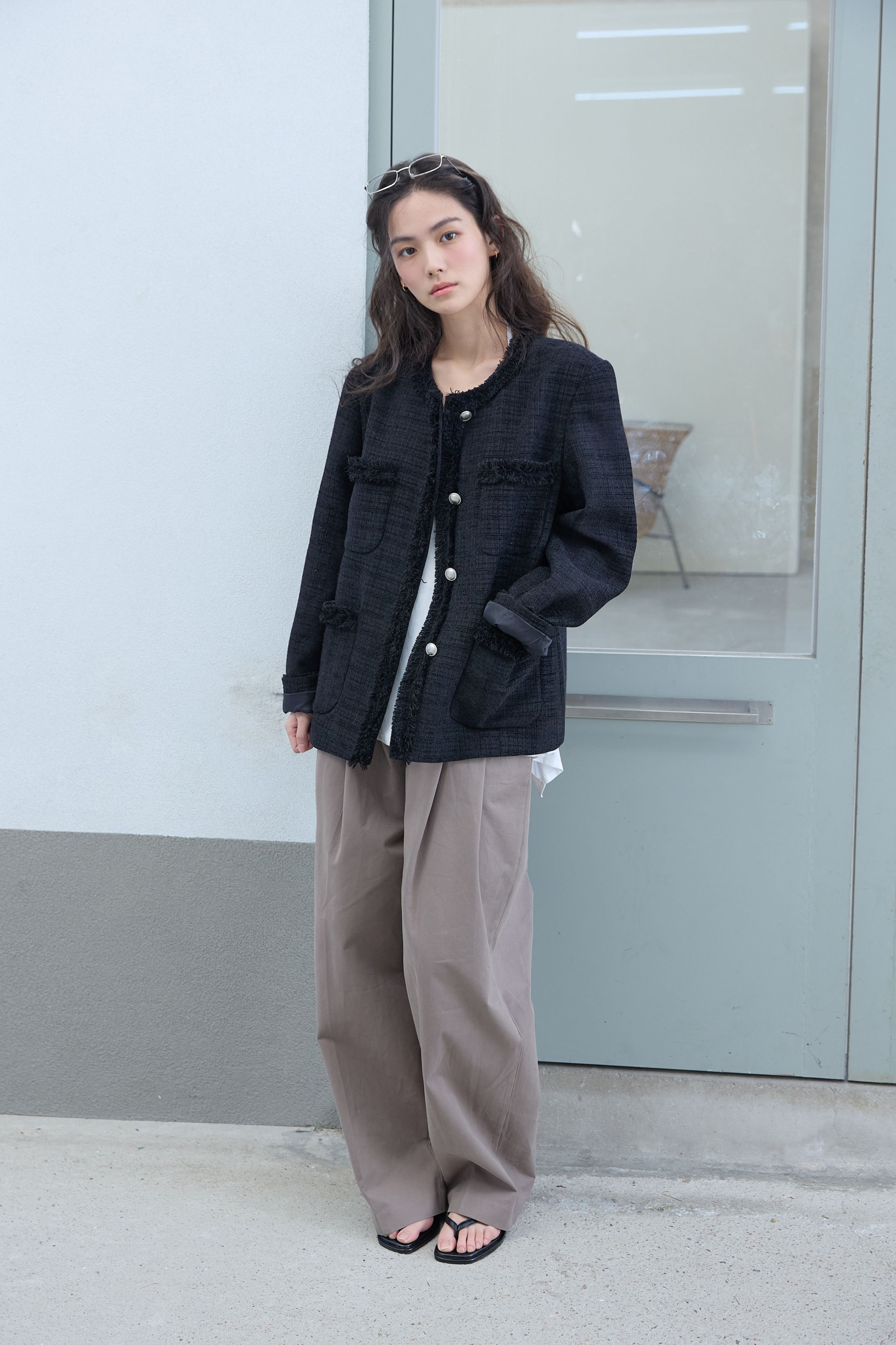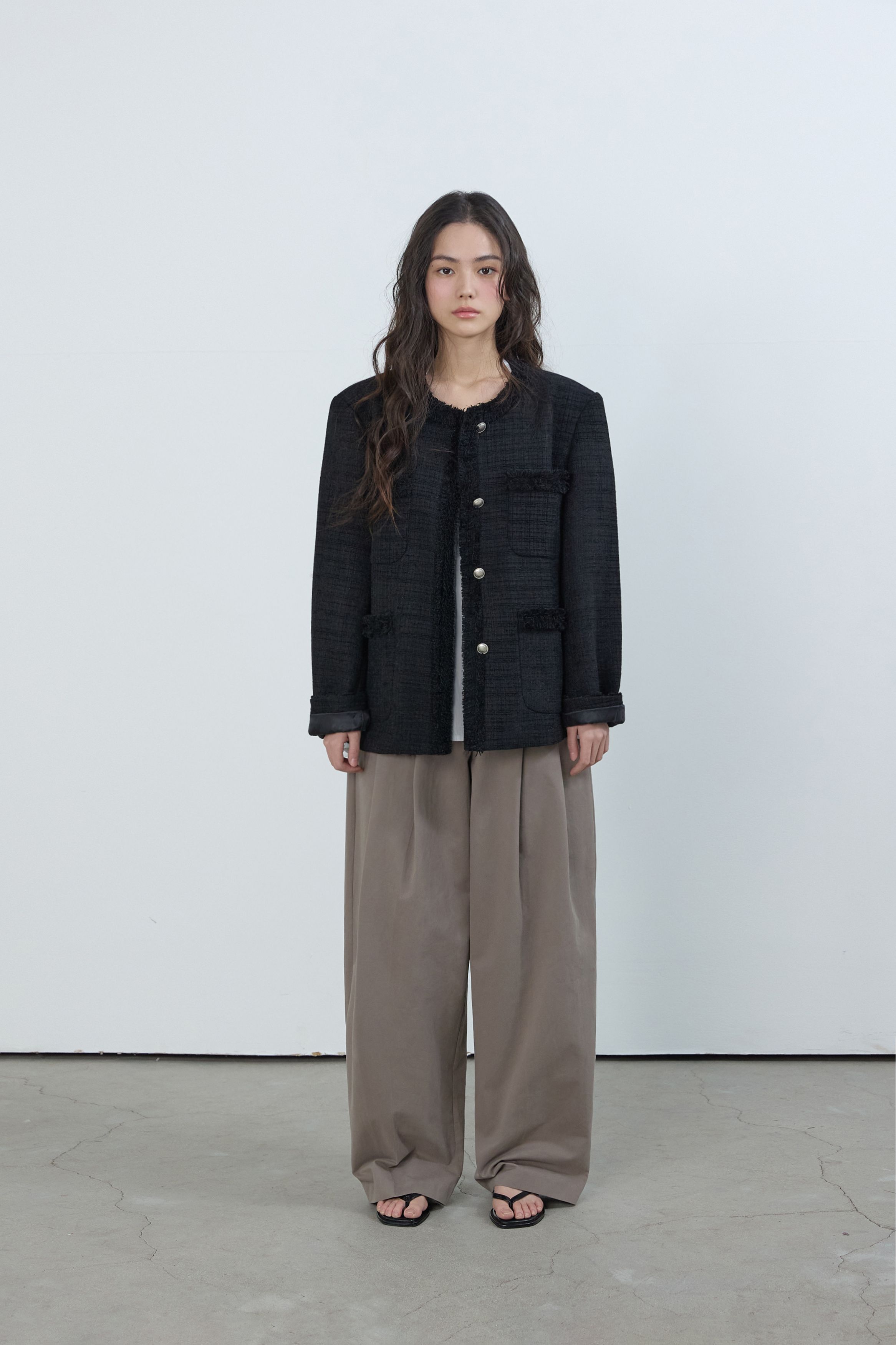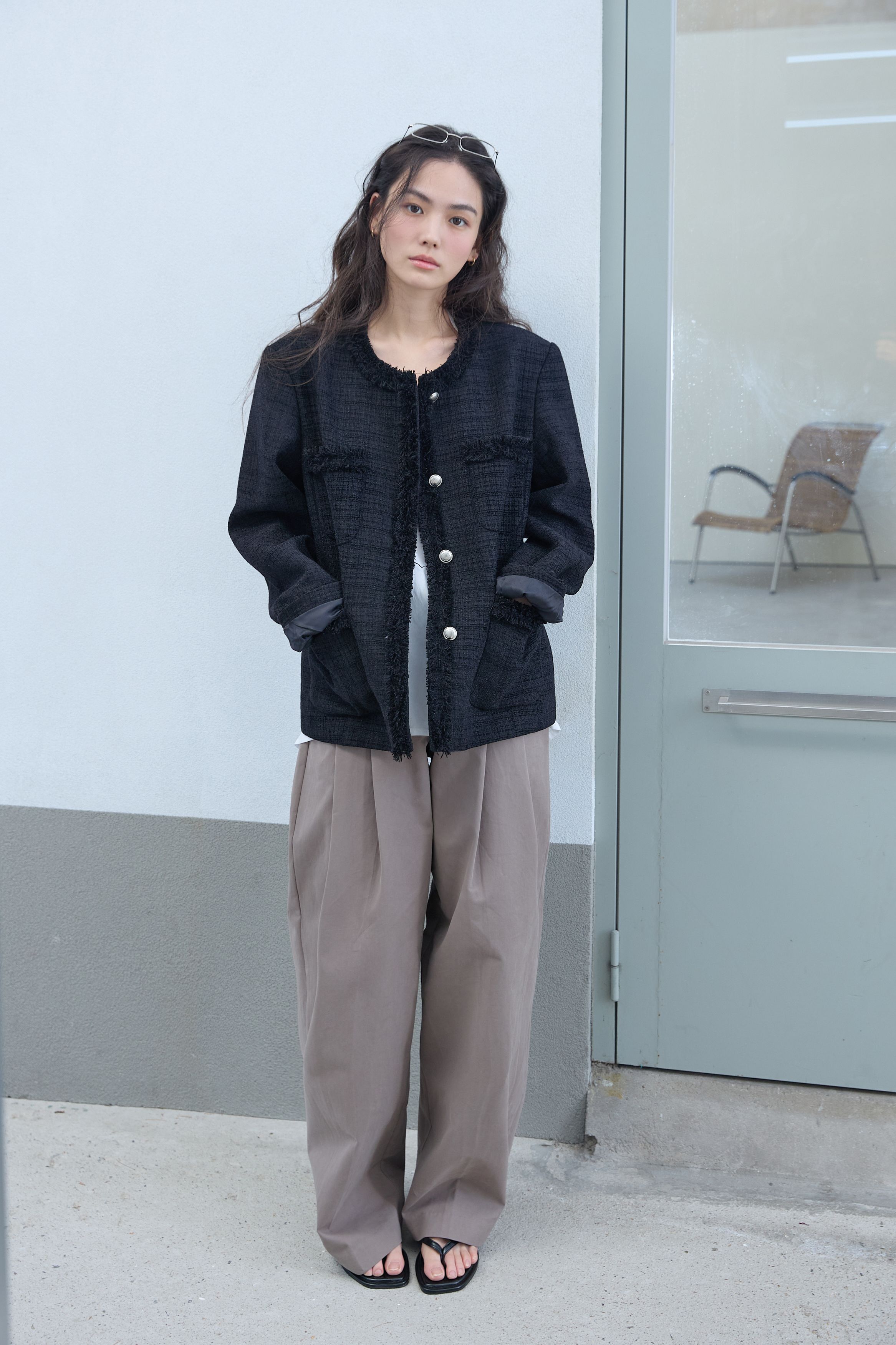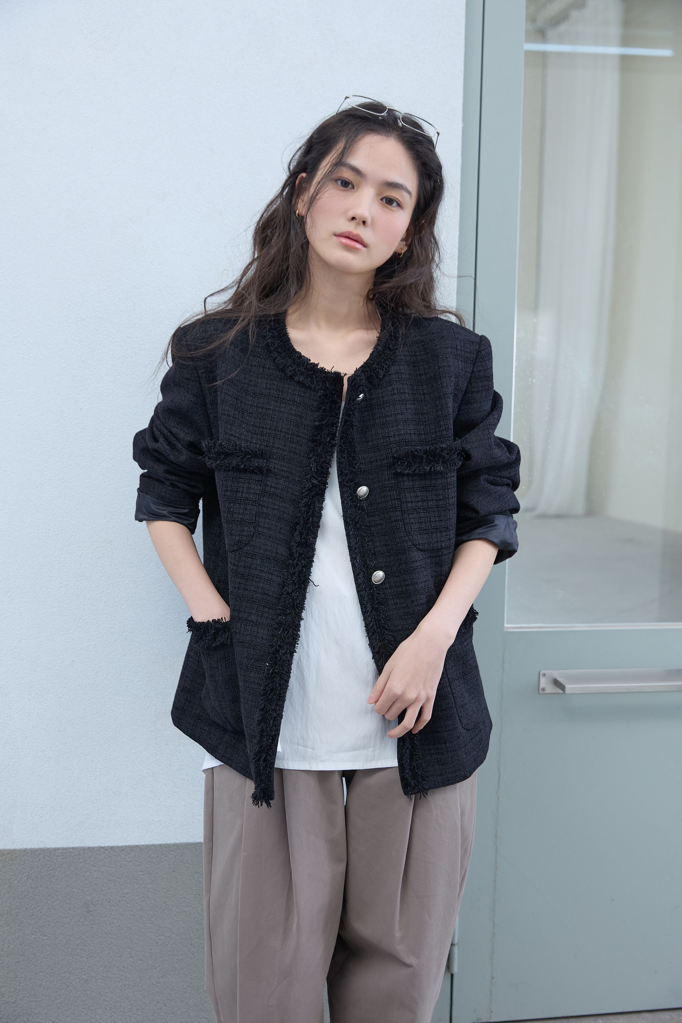 [무료반품] 프린지 트위드 자켓 블랙