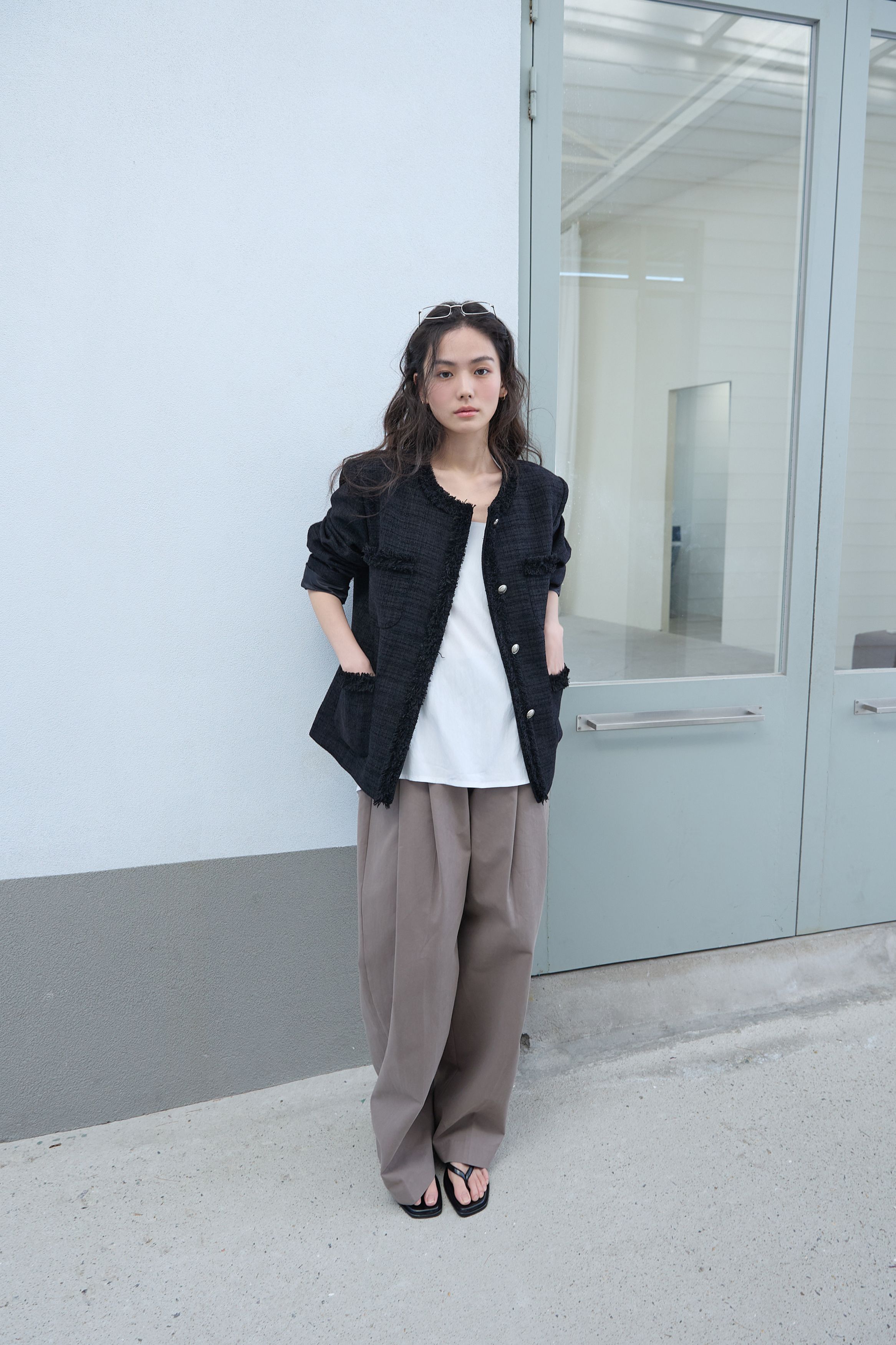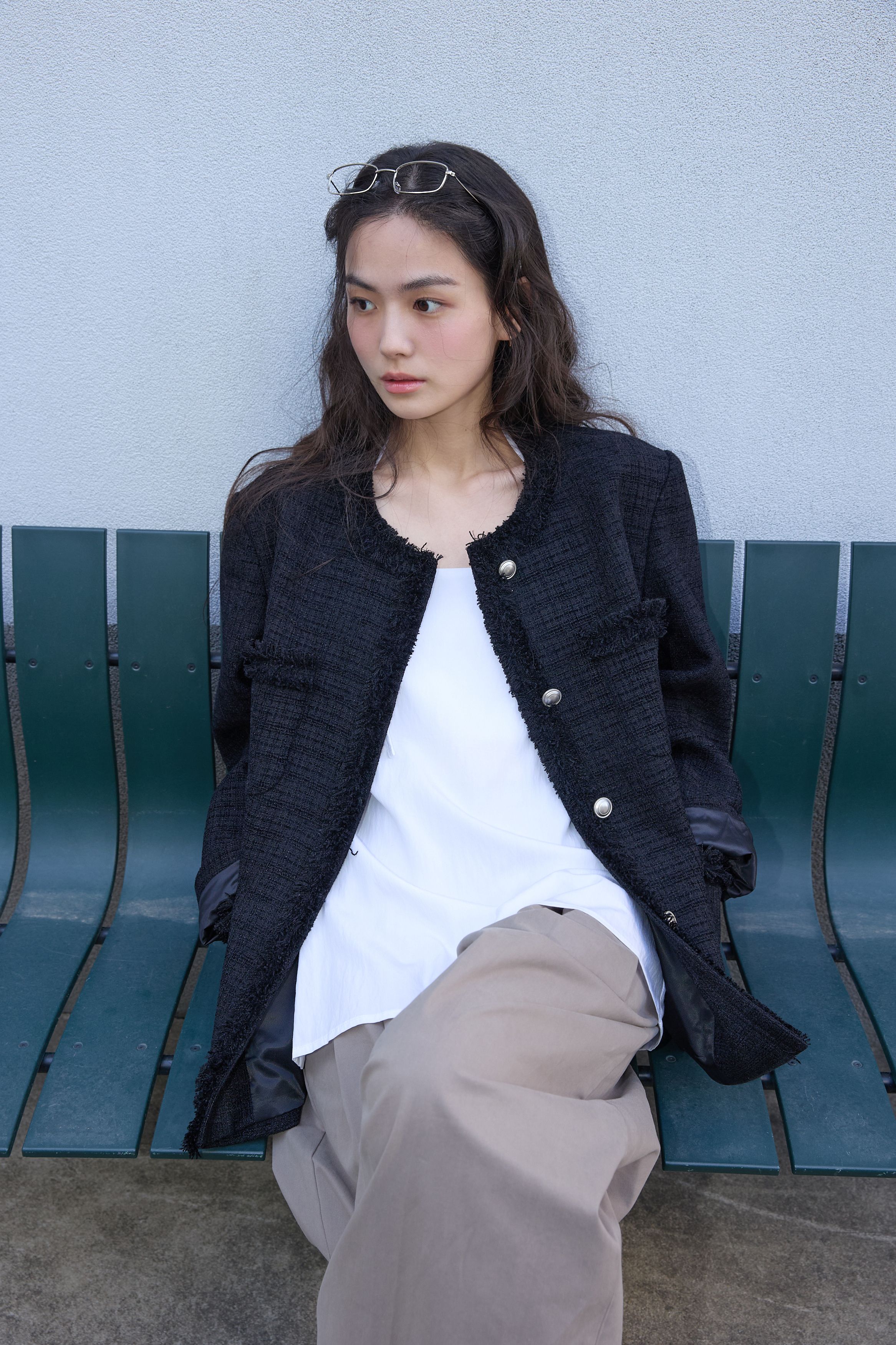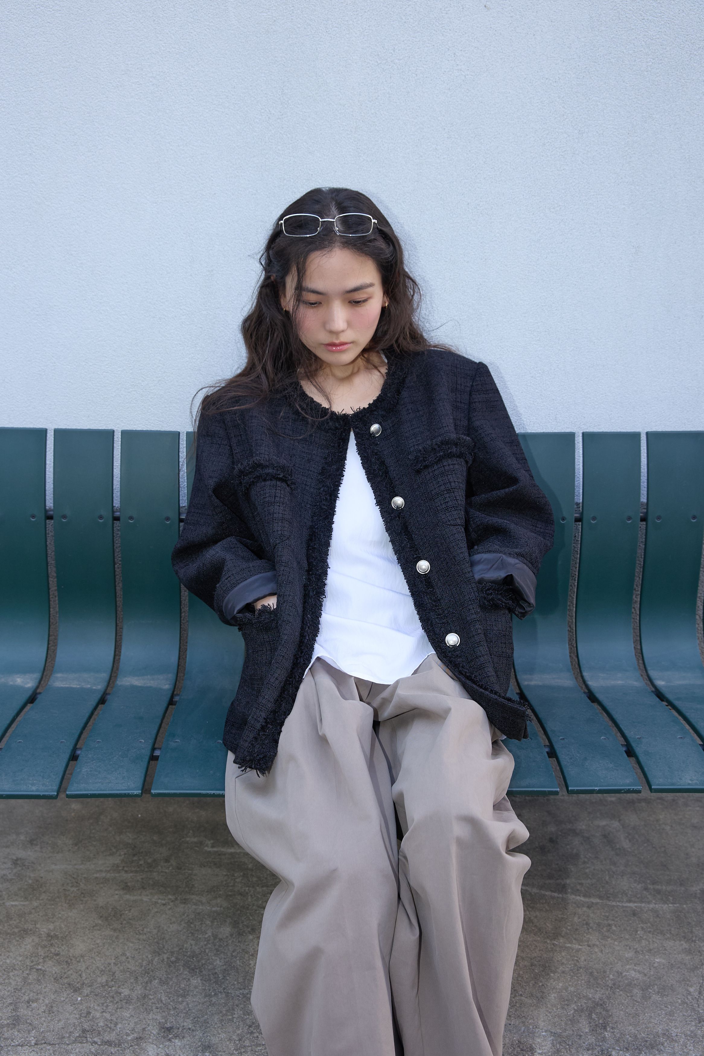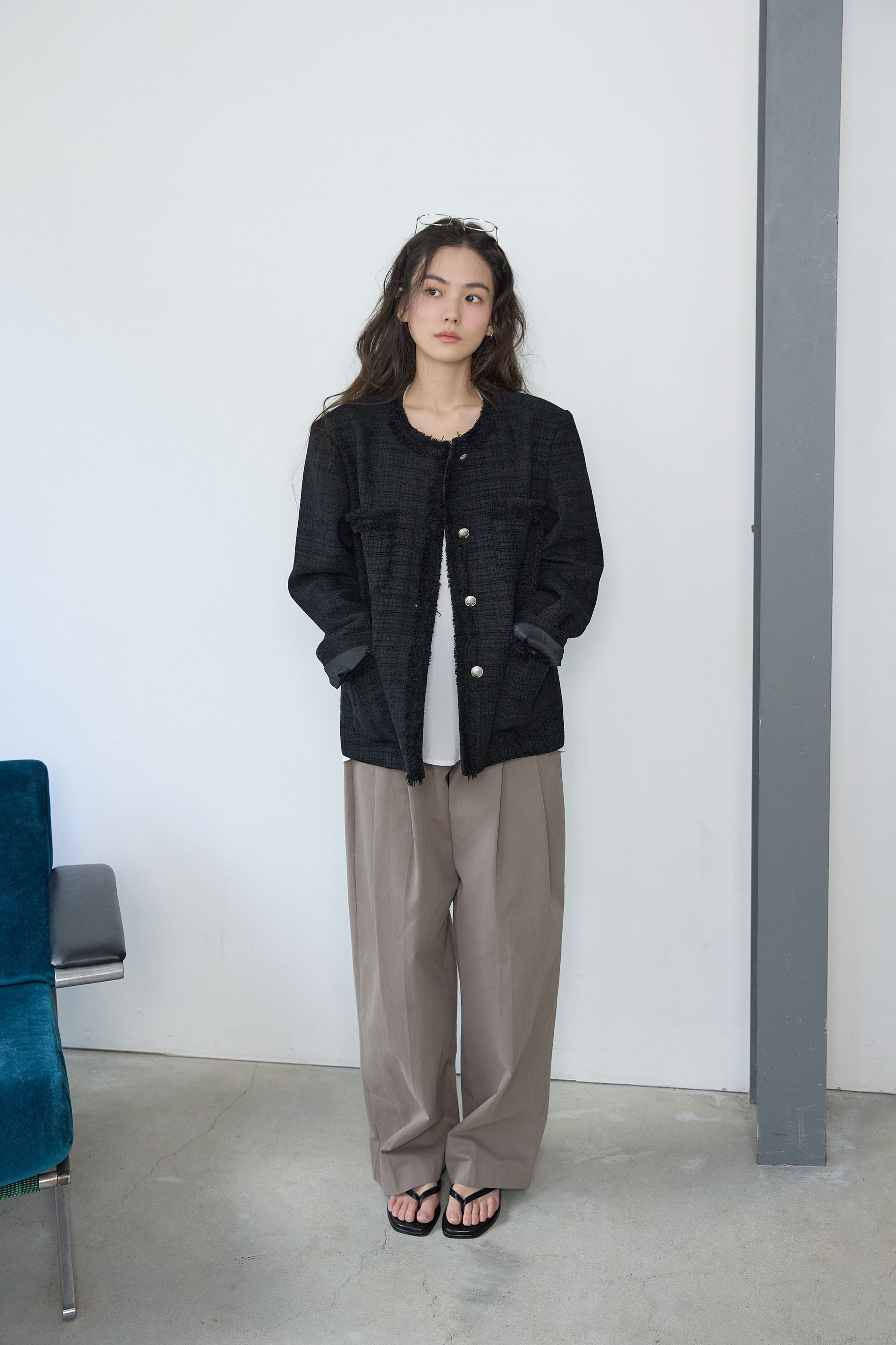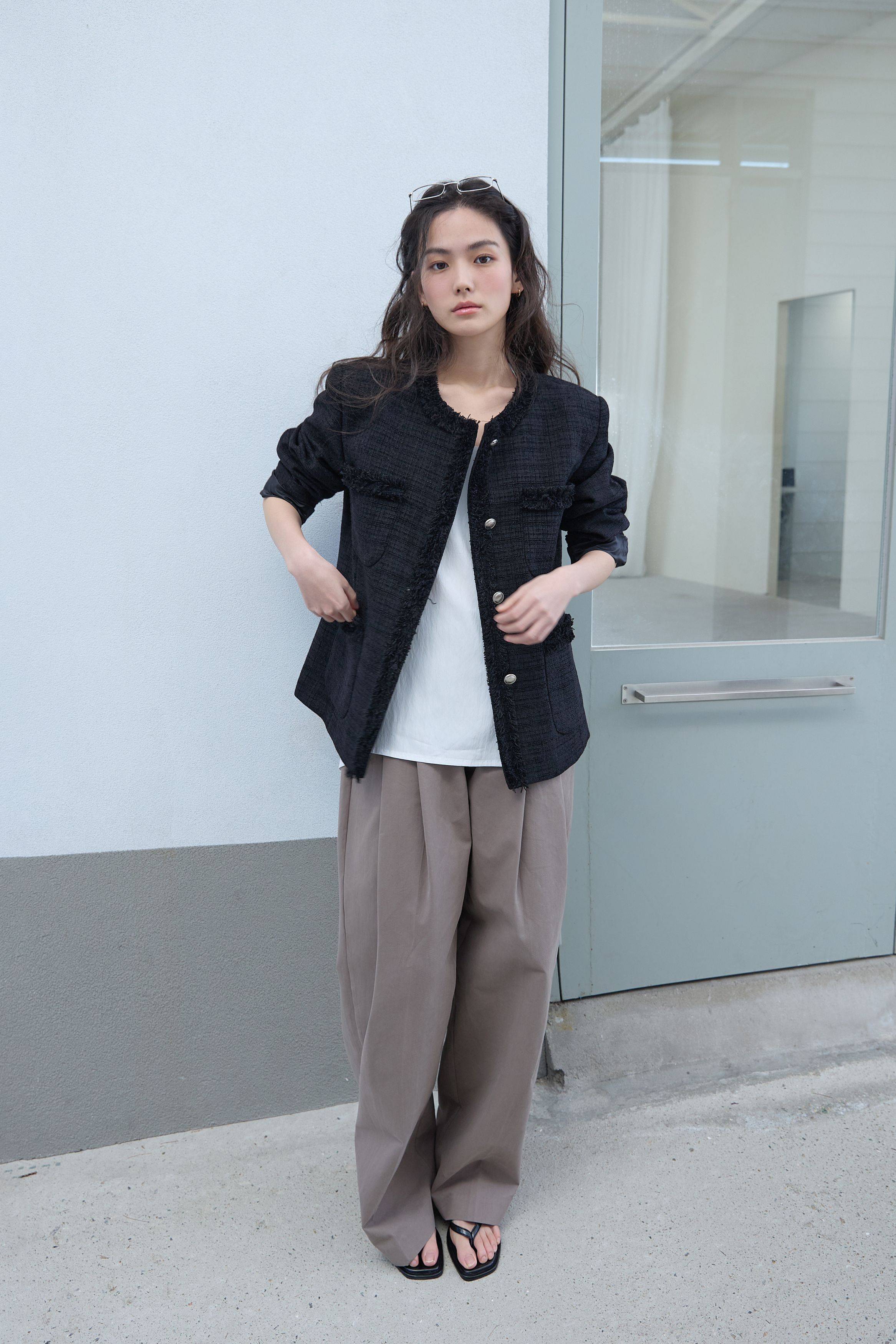[무료반품] 프린지 트위드 자켓 블랙