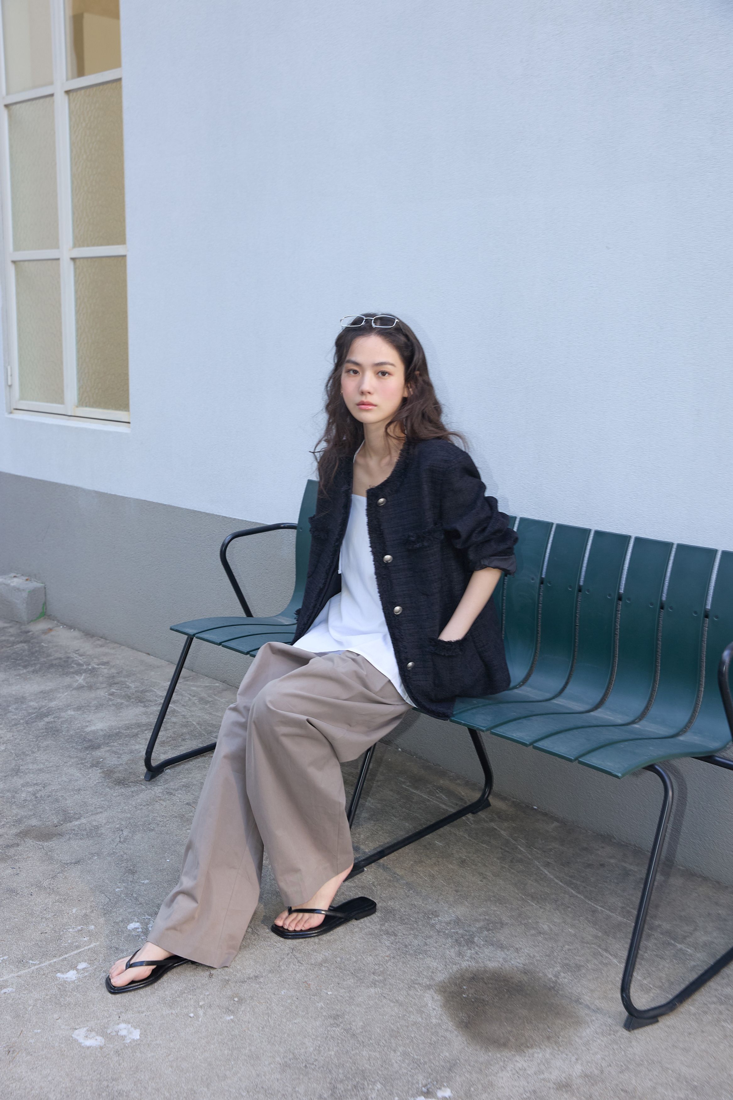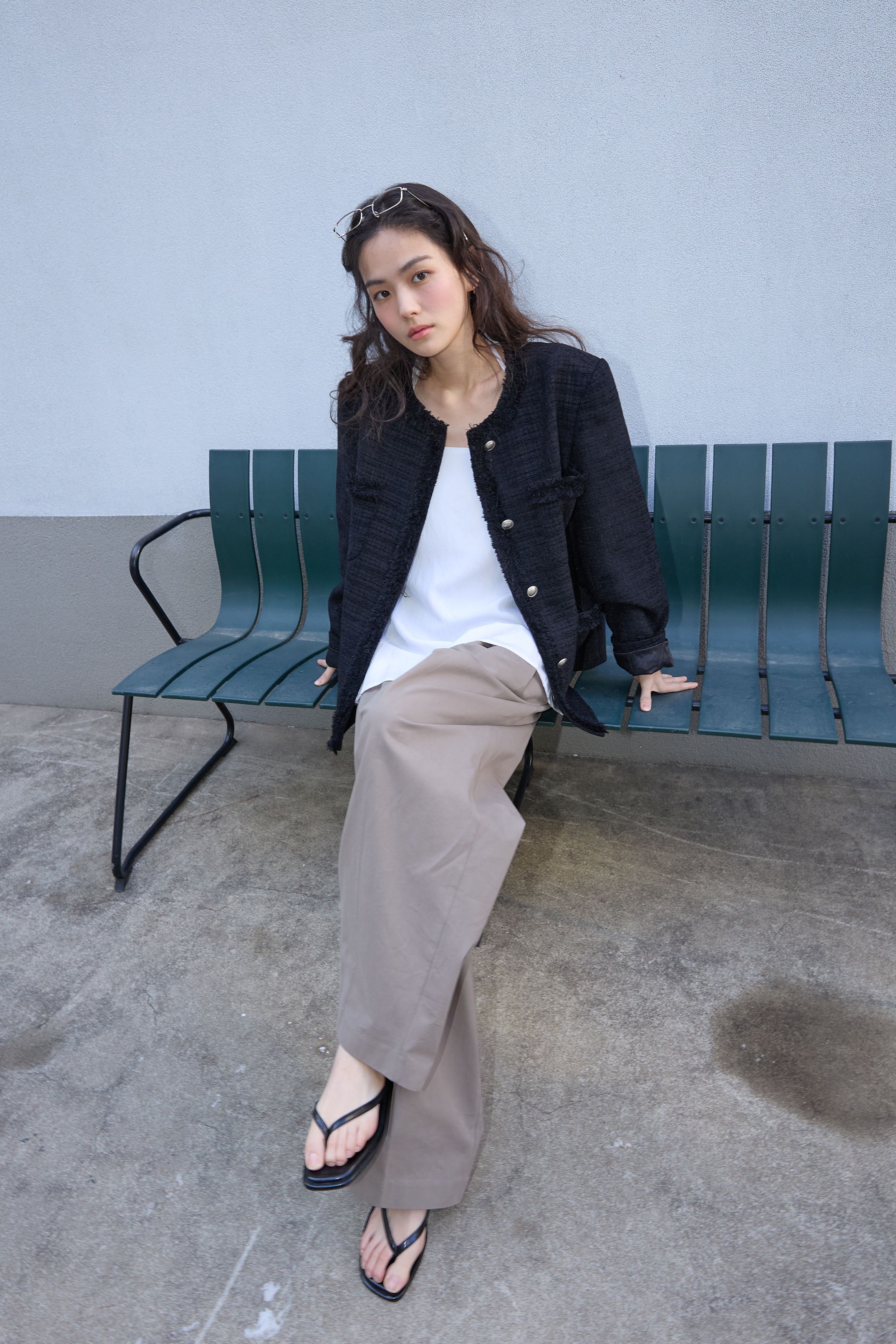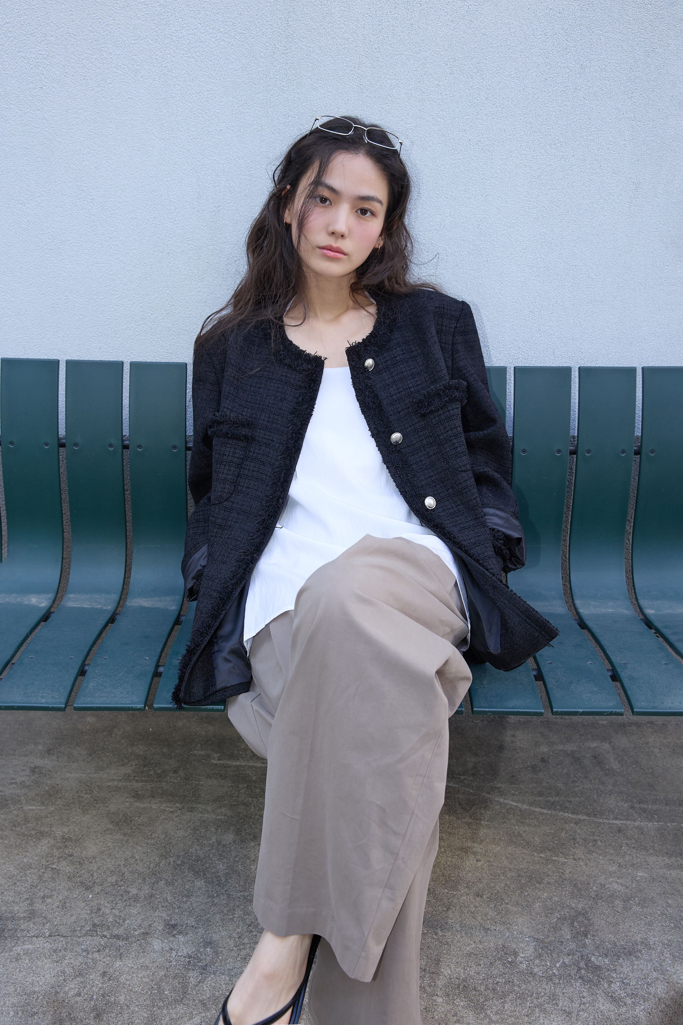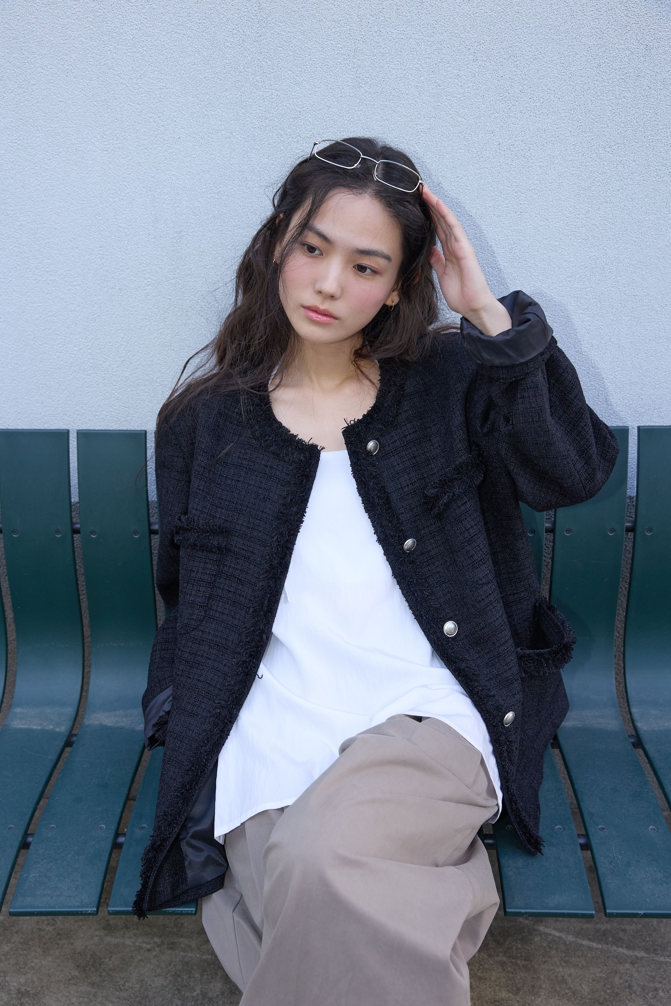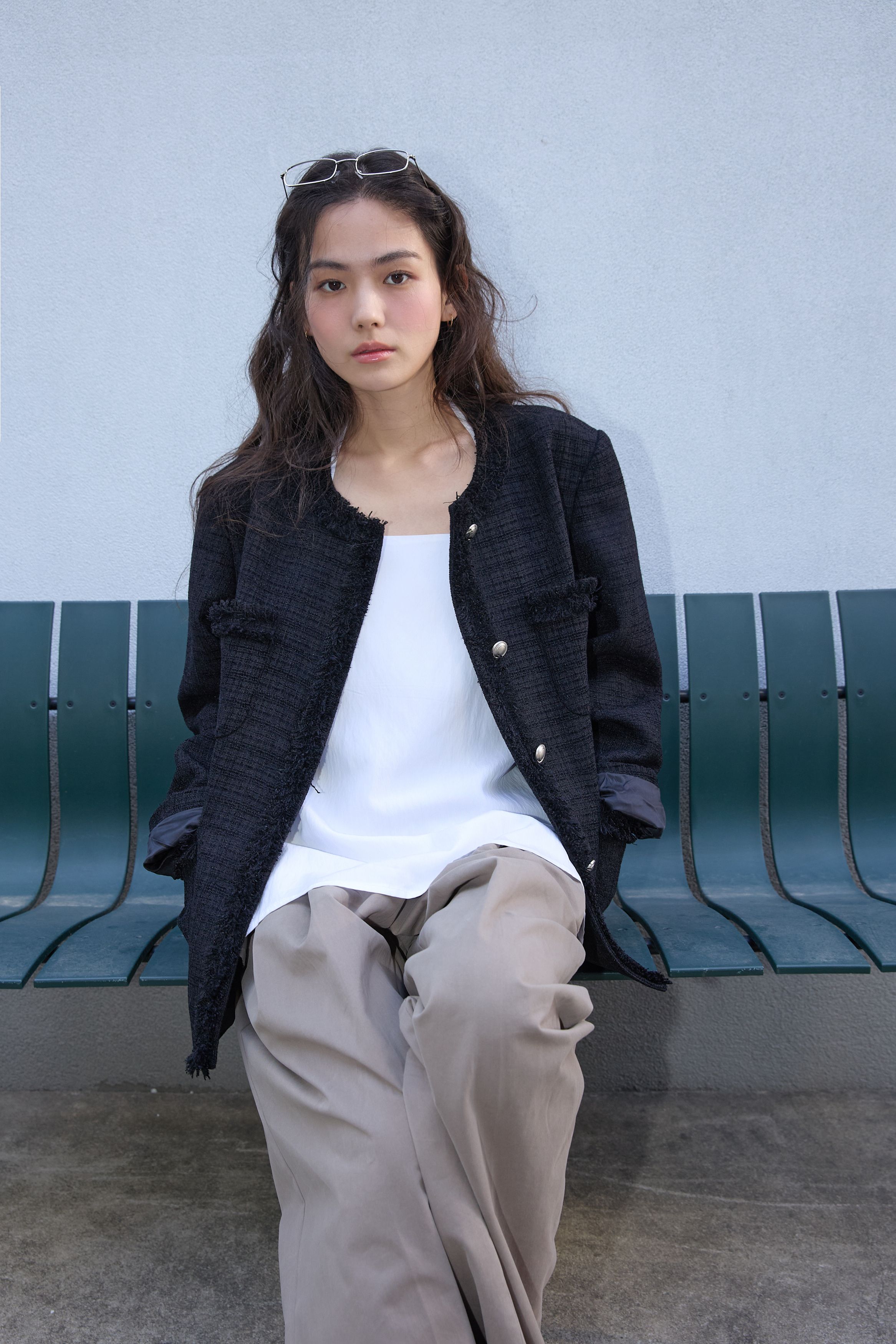 [무료반품] 프린지 트위드 자켓 블랙