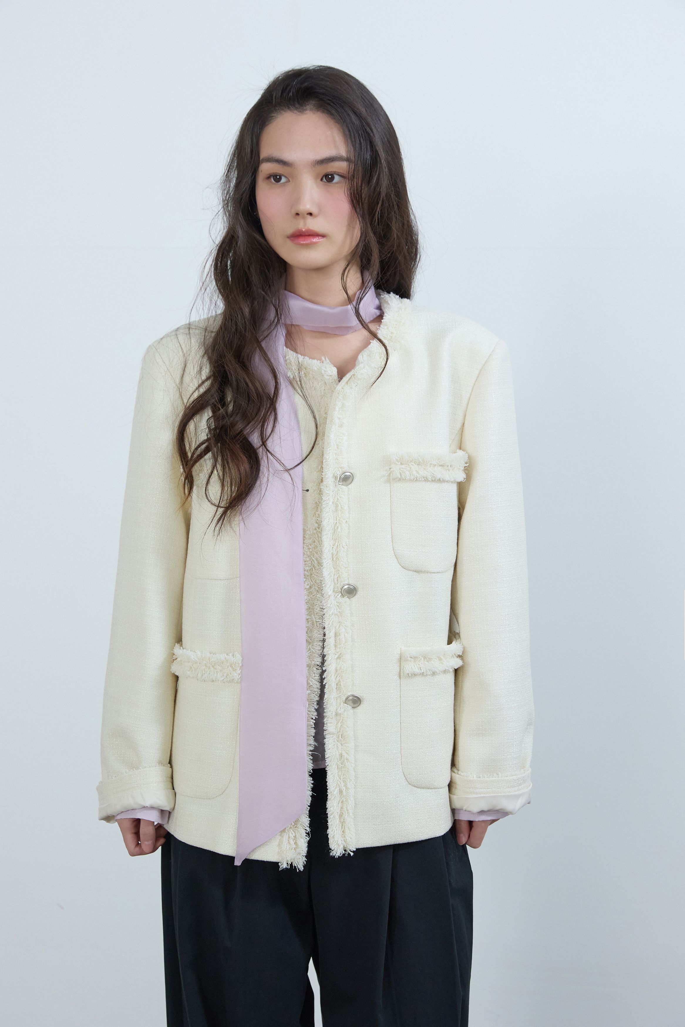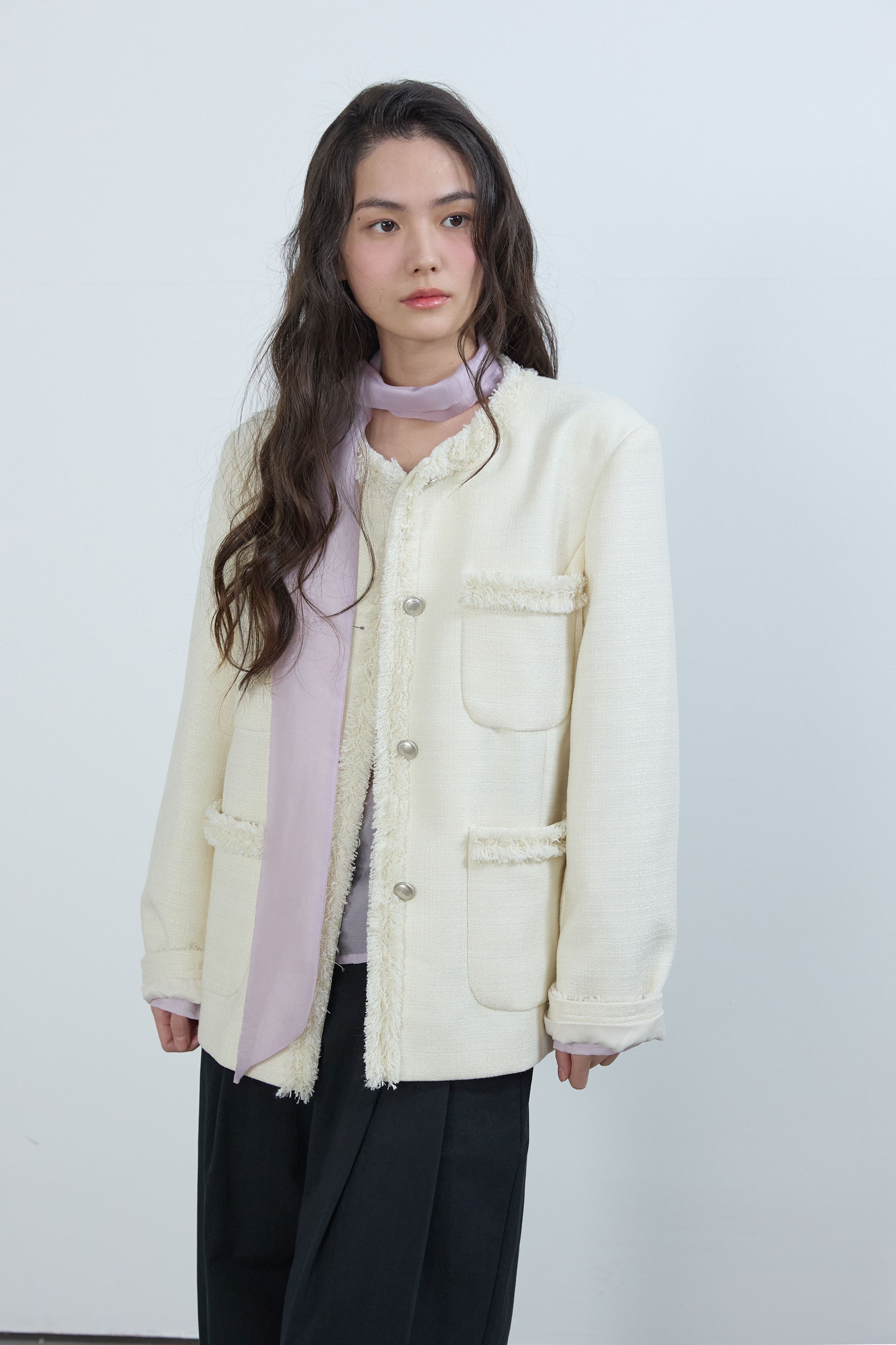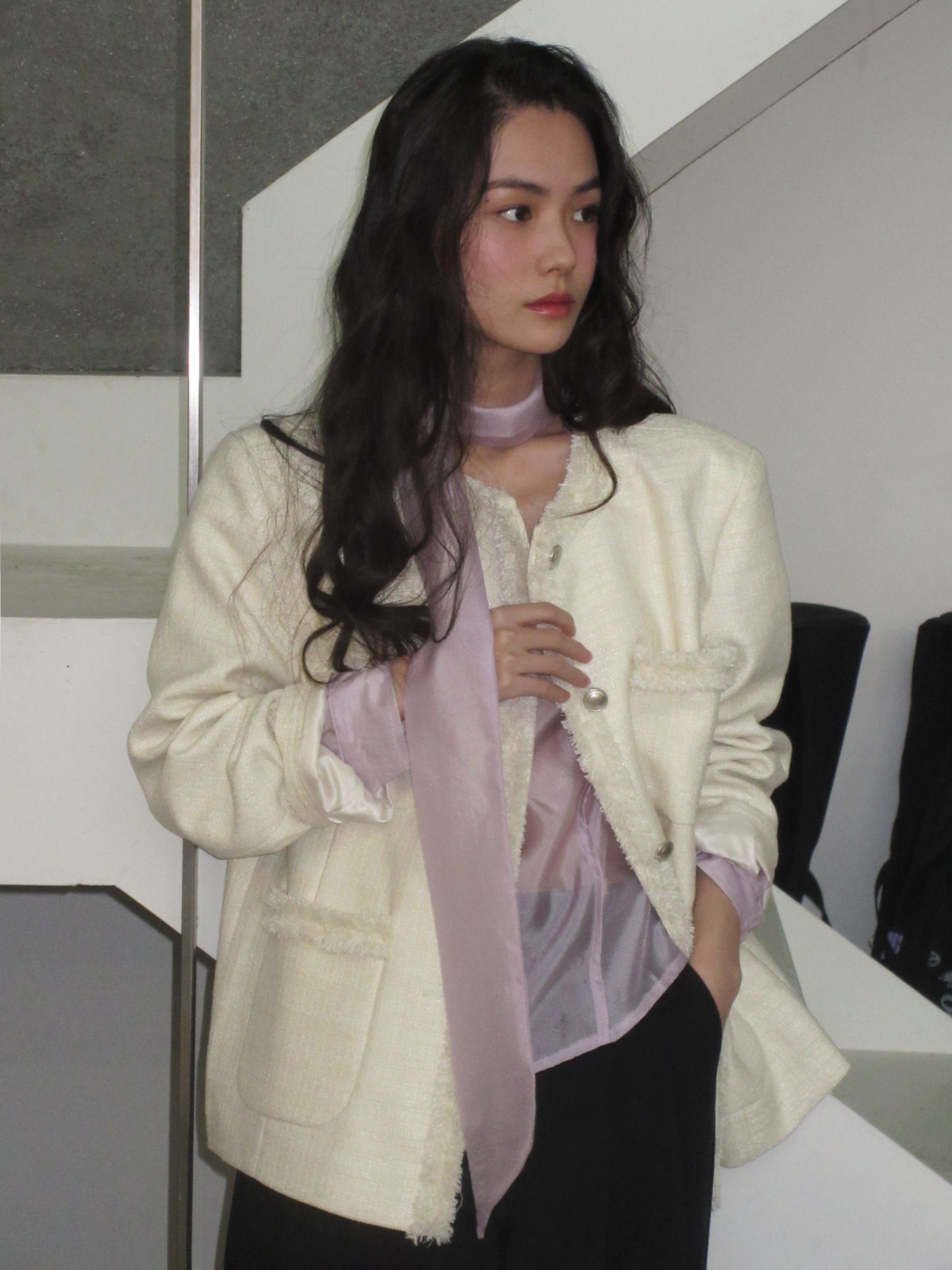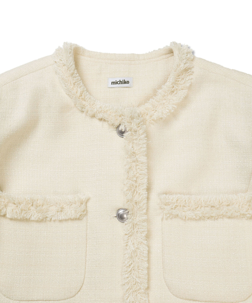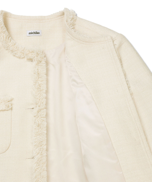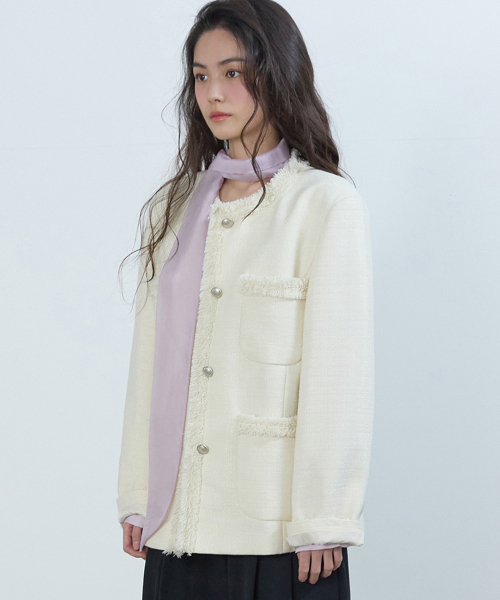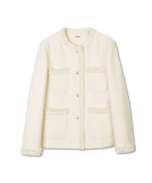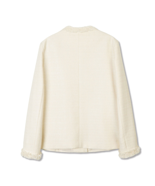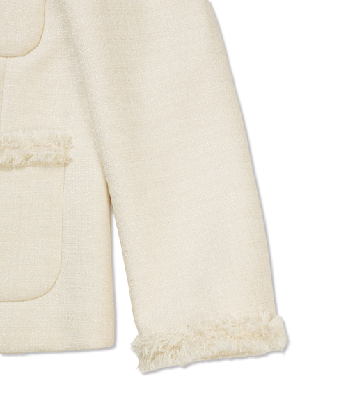 [무료반품] 프린지 트위드 자켓 크림 아이보리