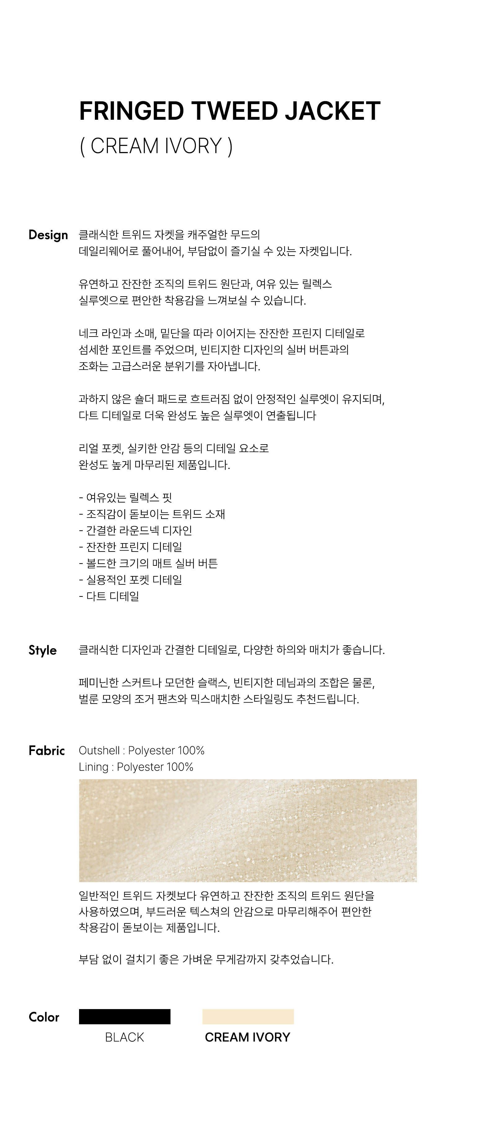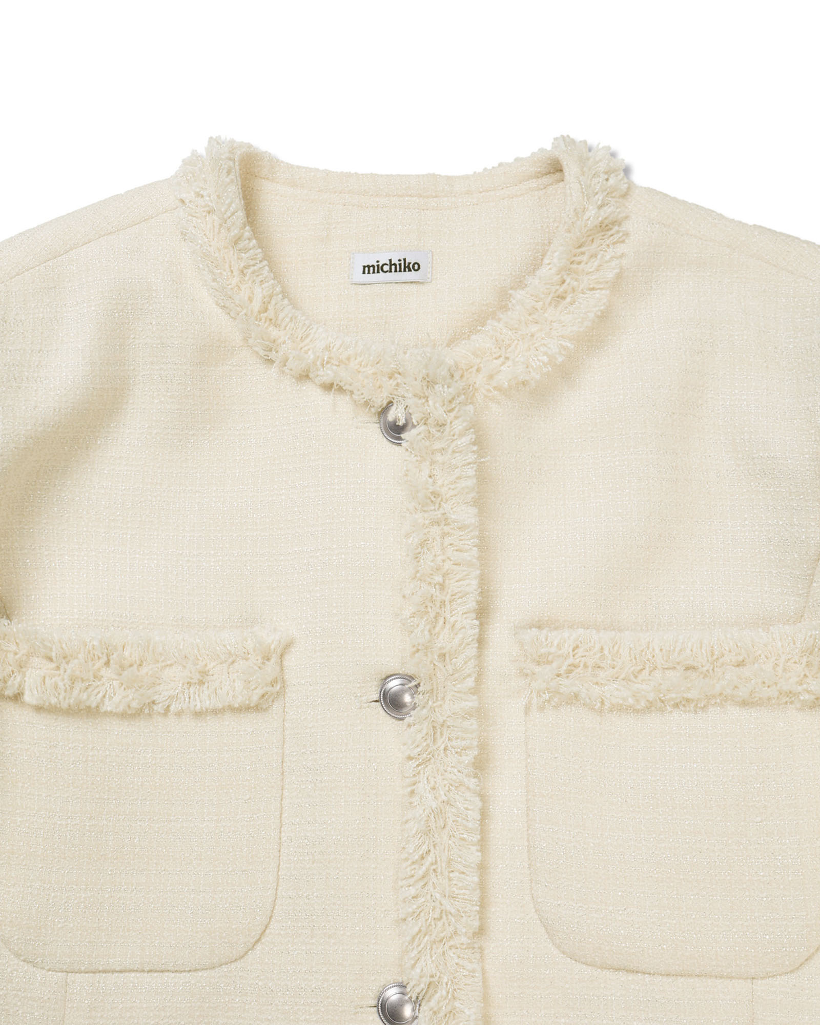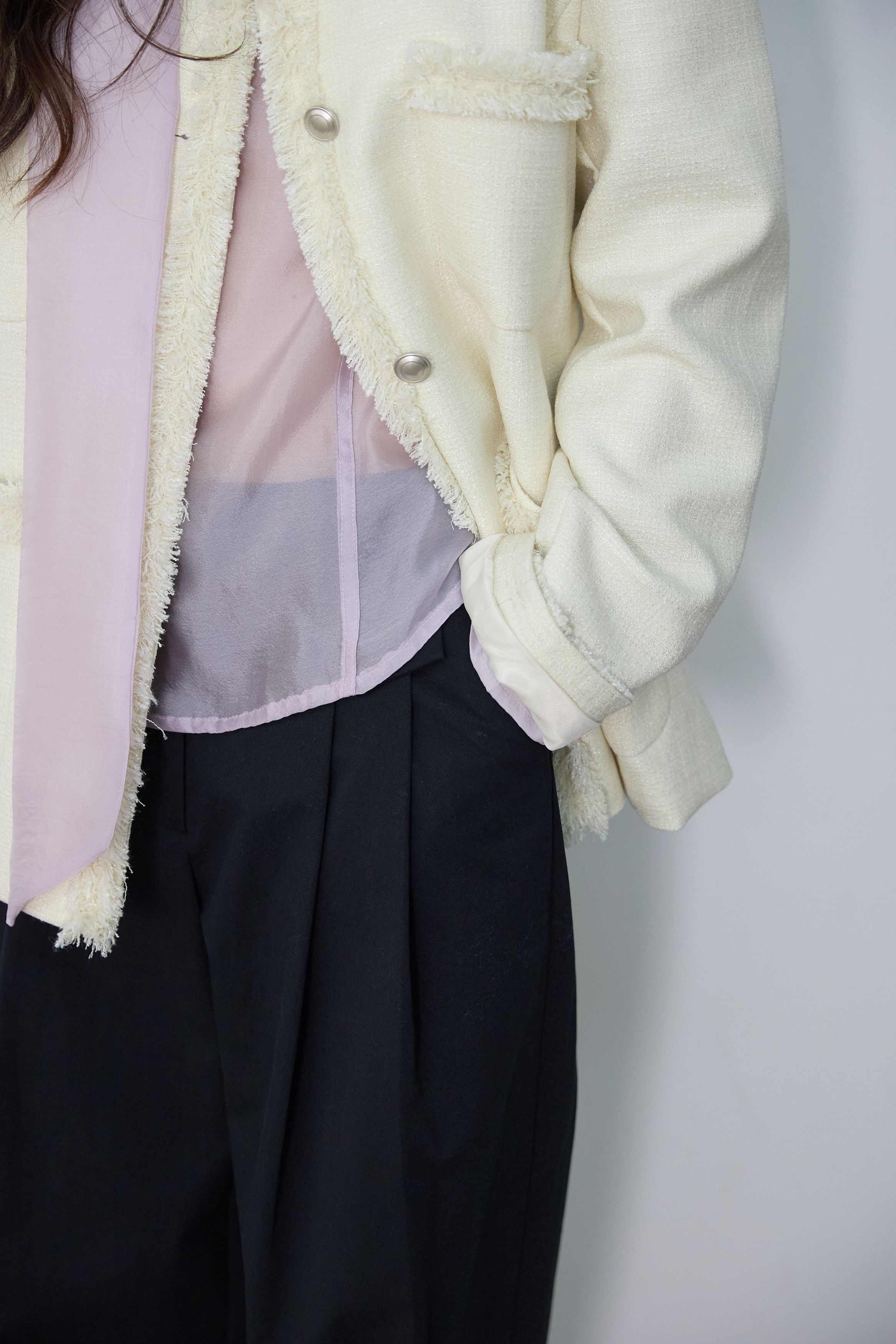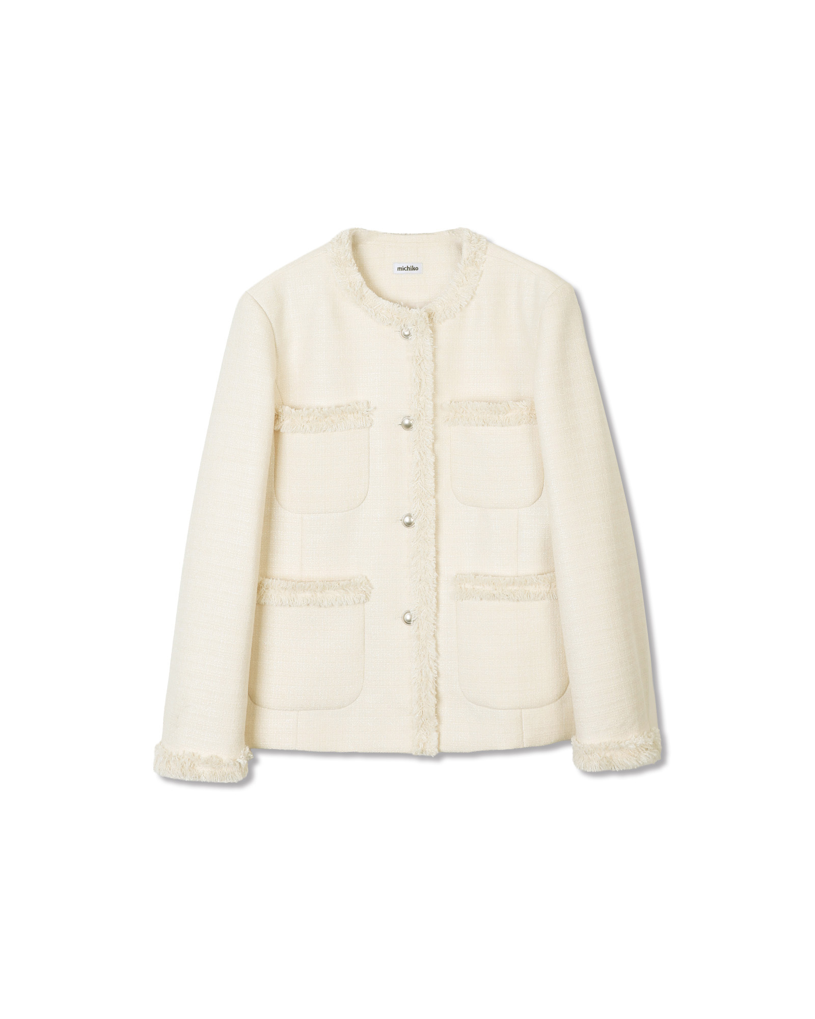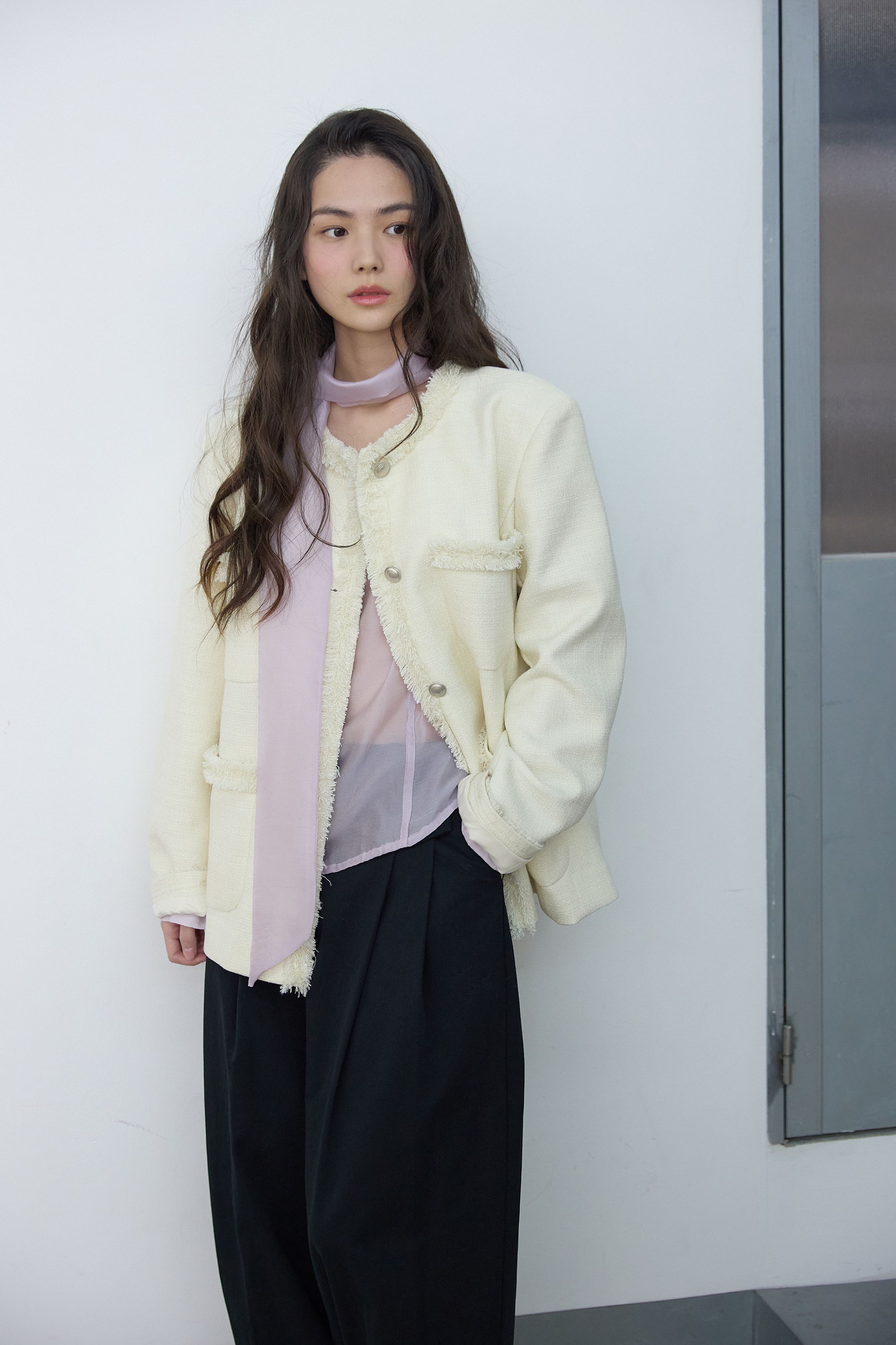 [무료반품] 프린지 트위드 자켓 크림 아이보리