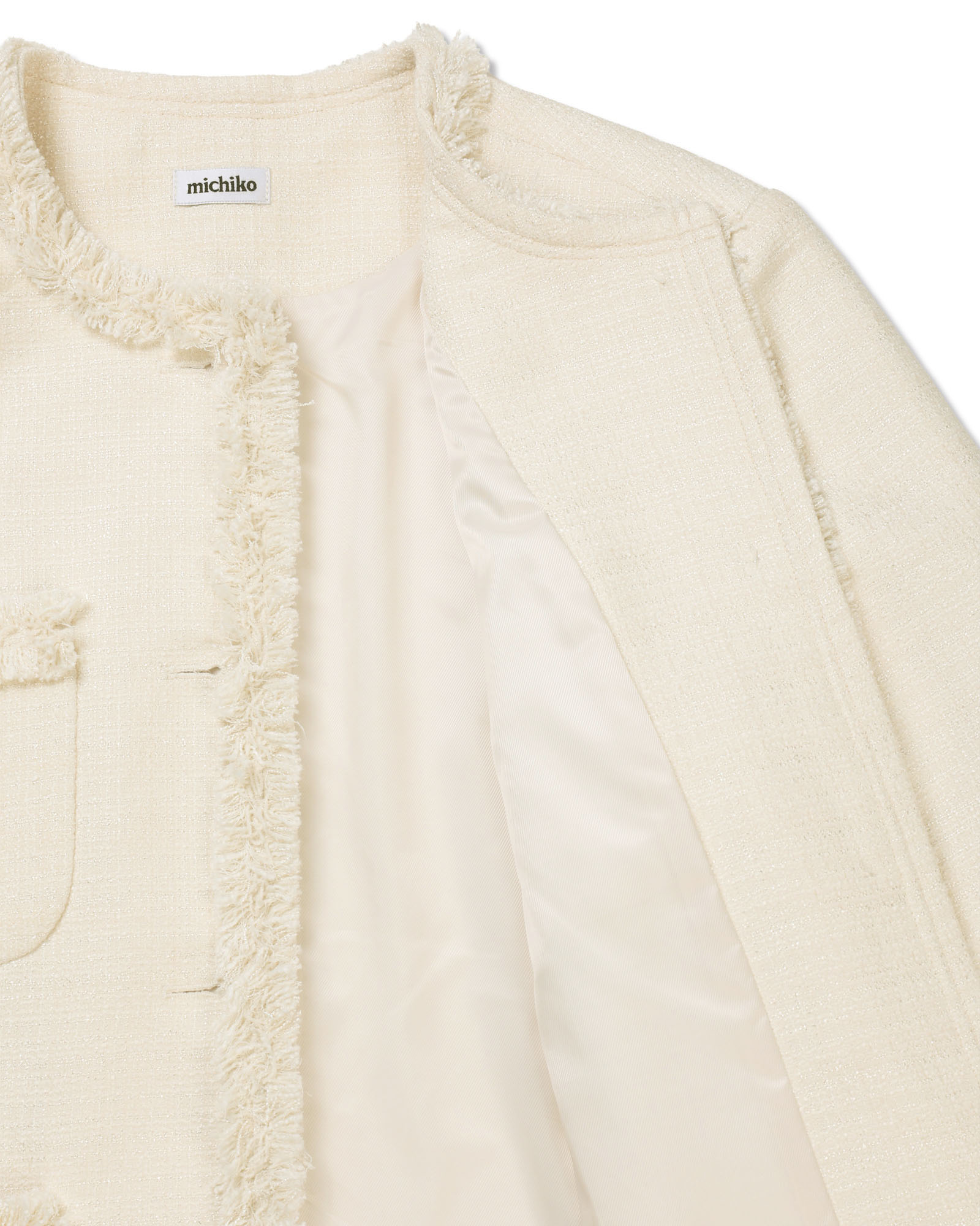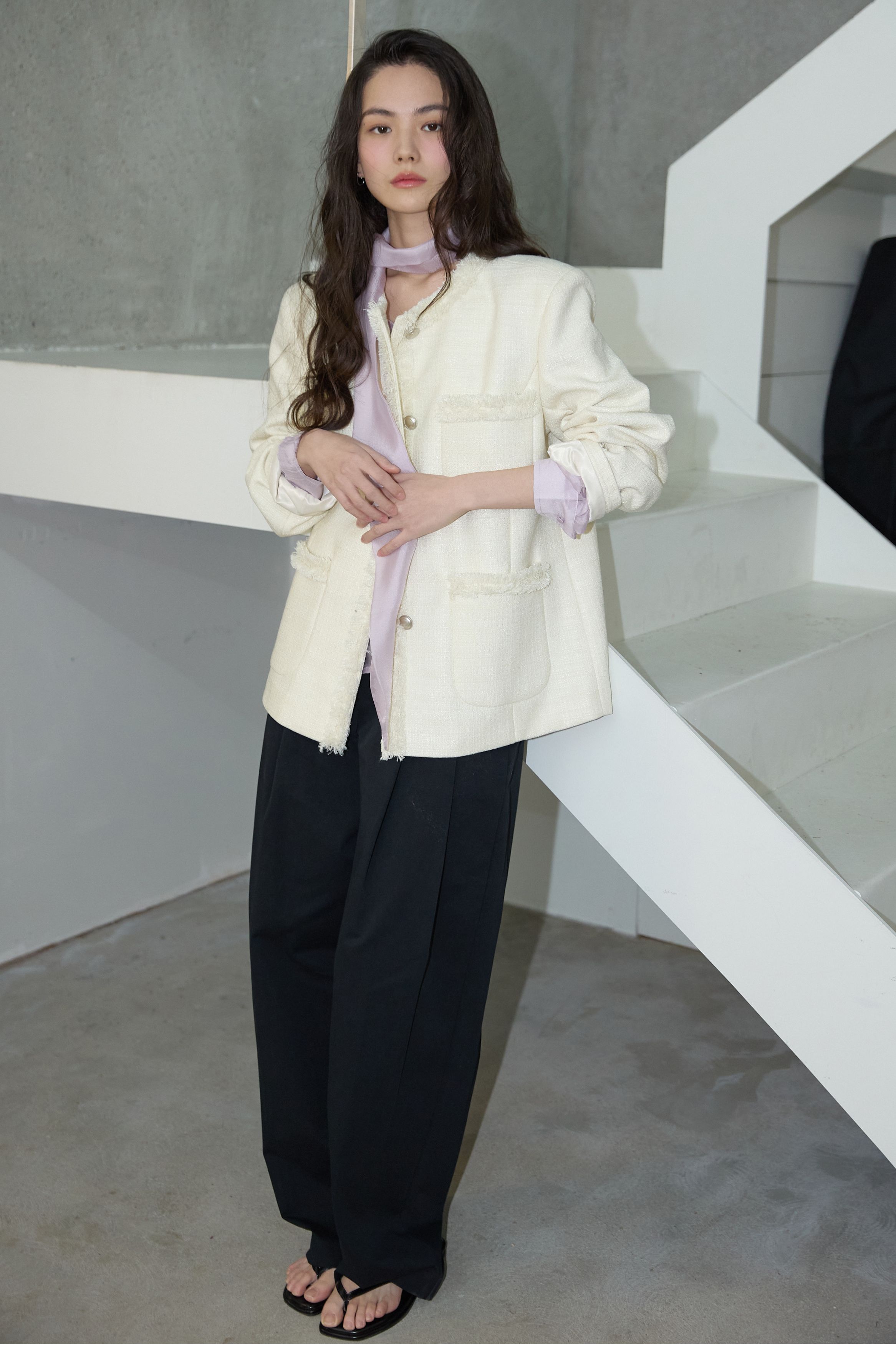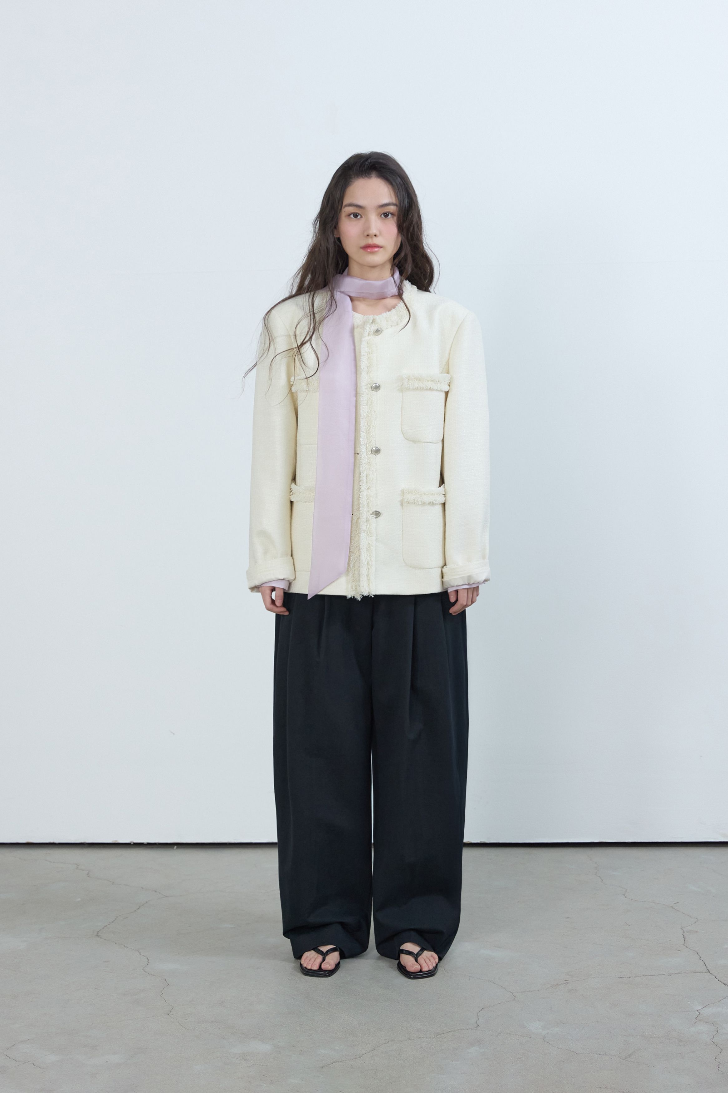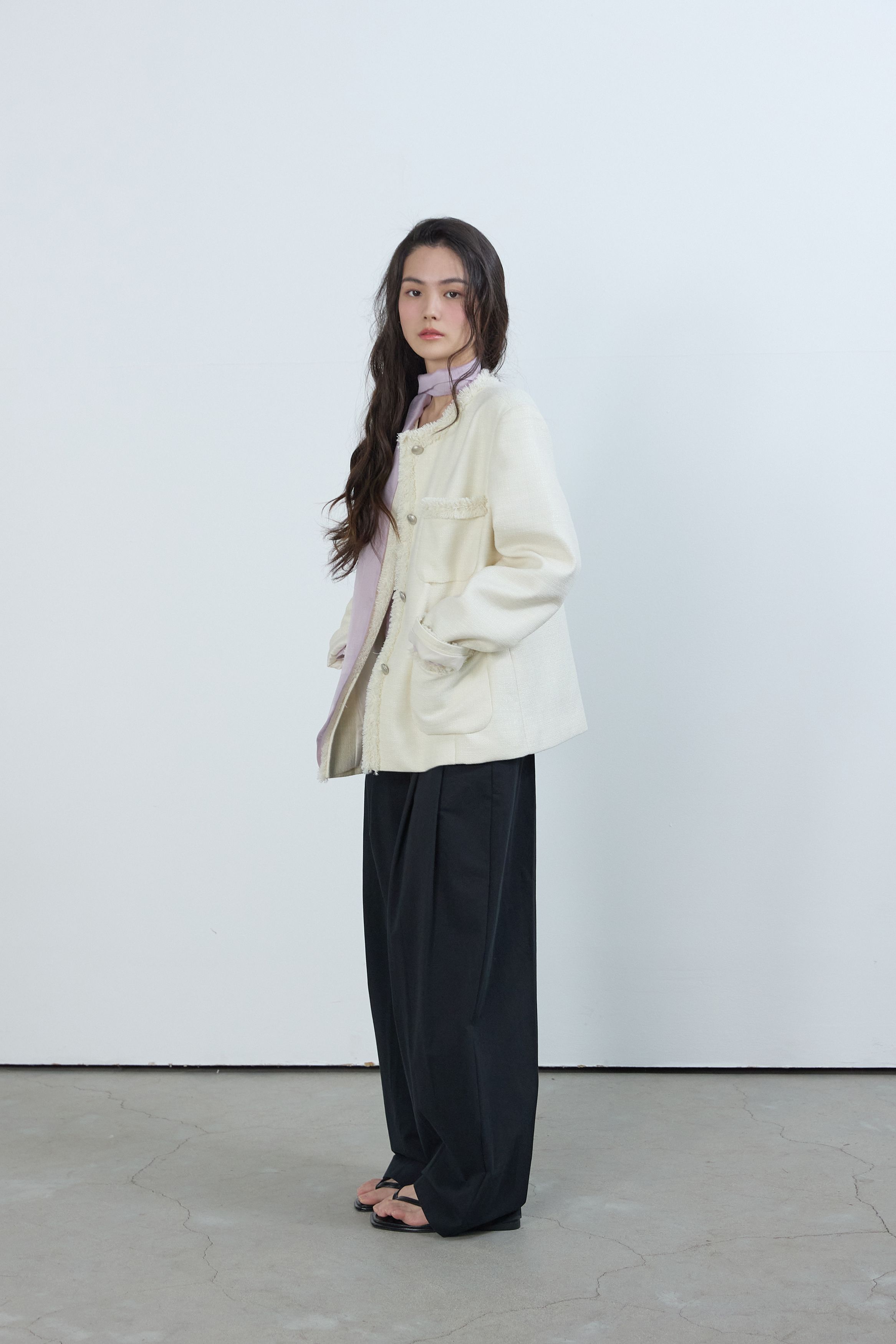 [무료반품] 프린지 트위드 자켓 크림 아이보리