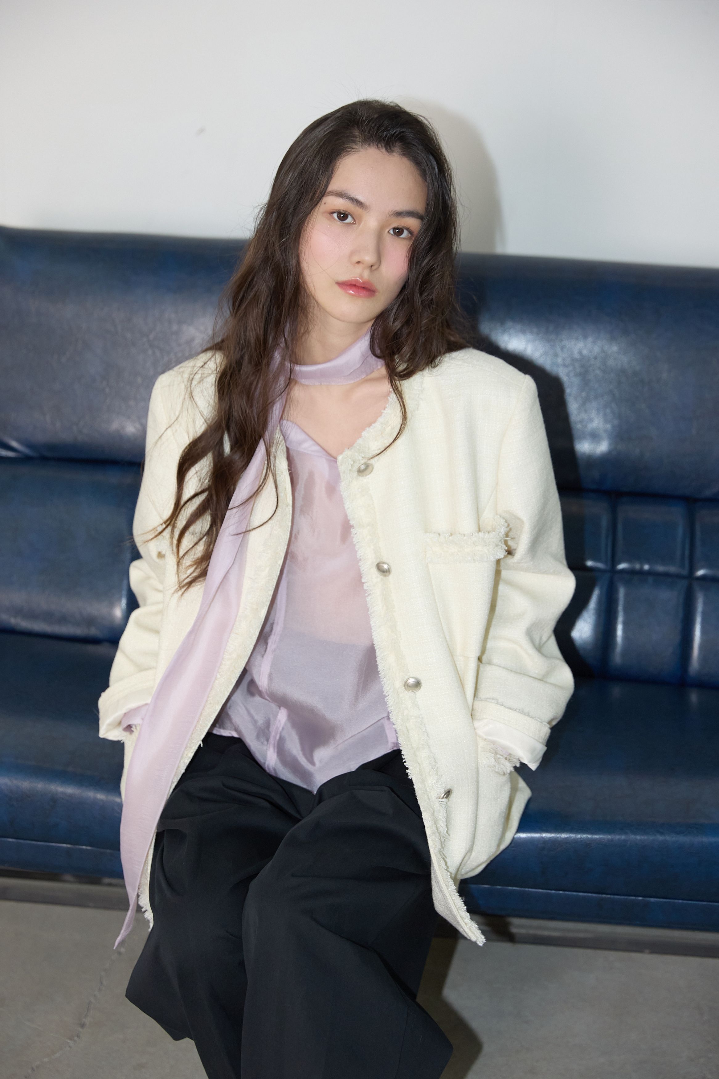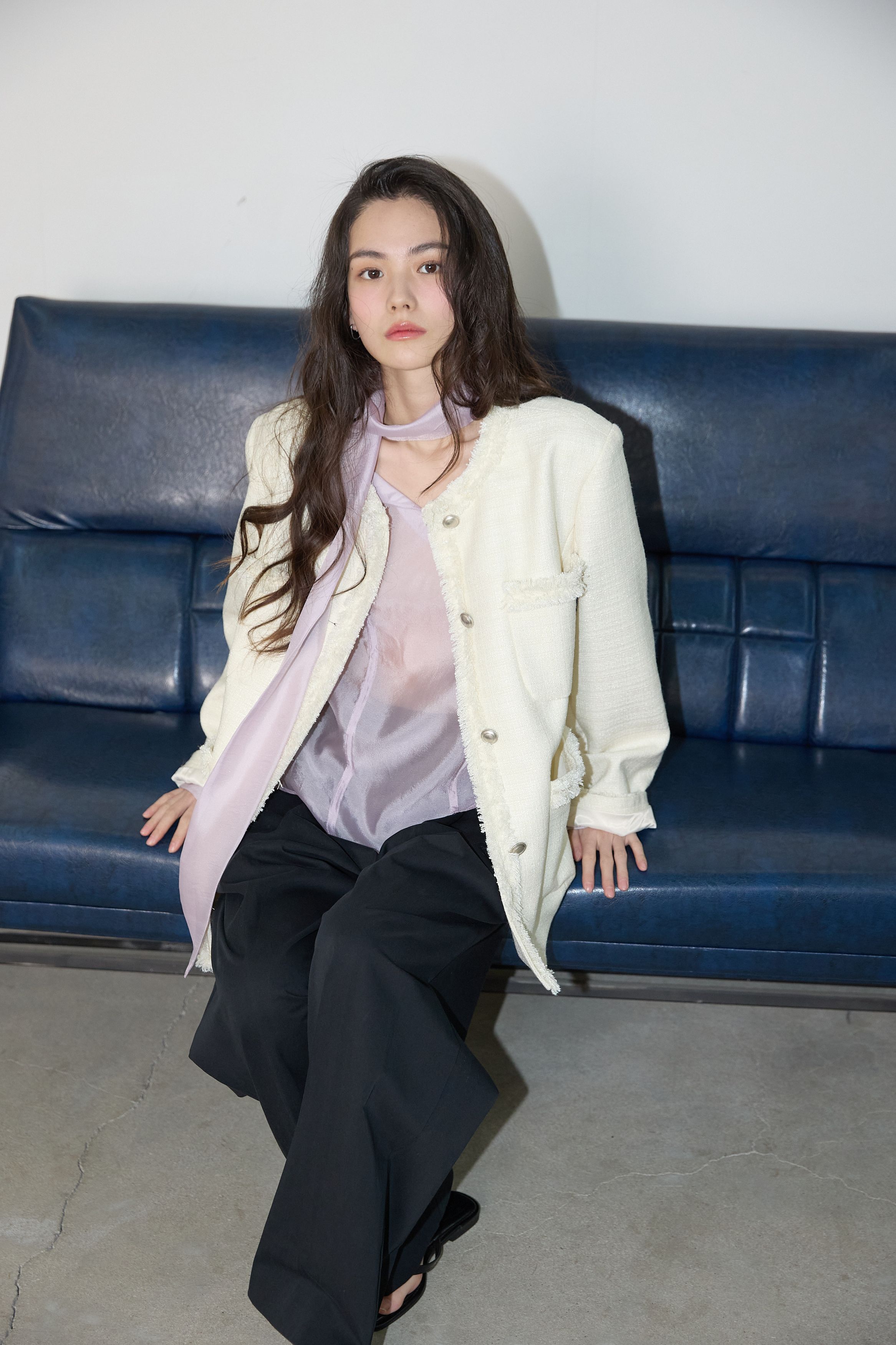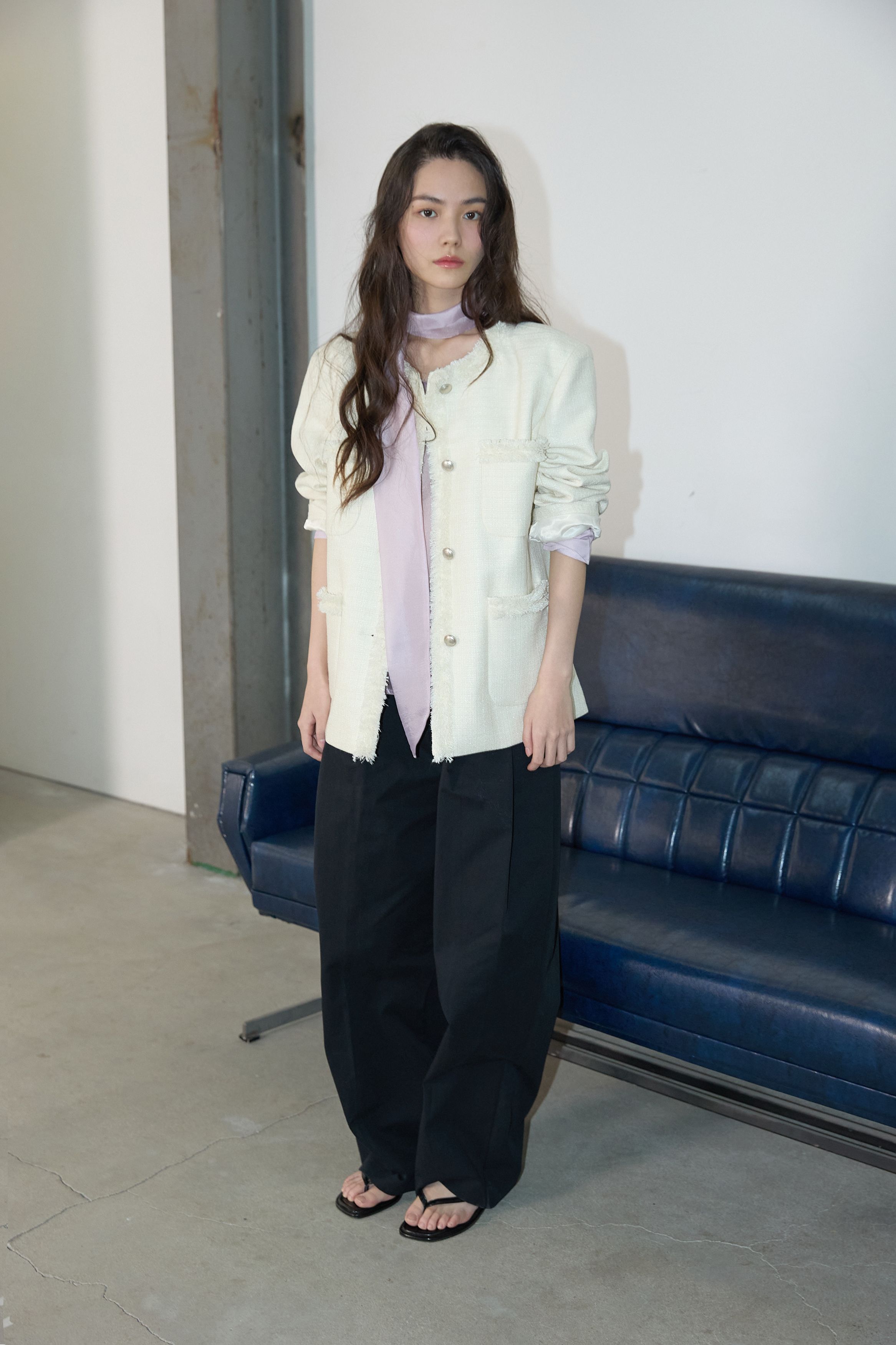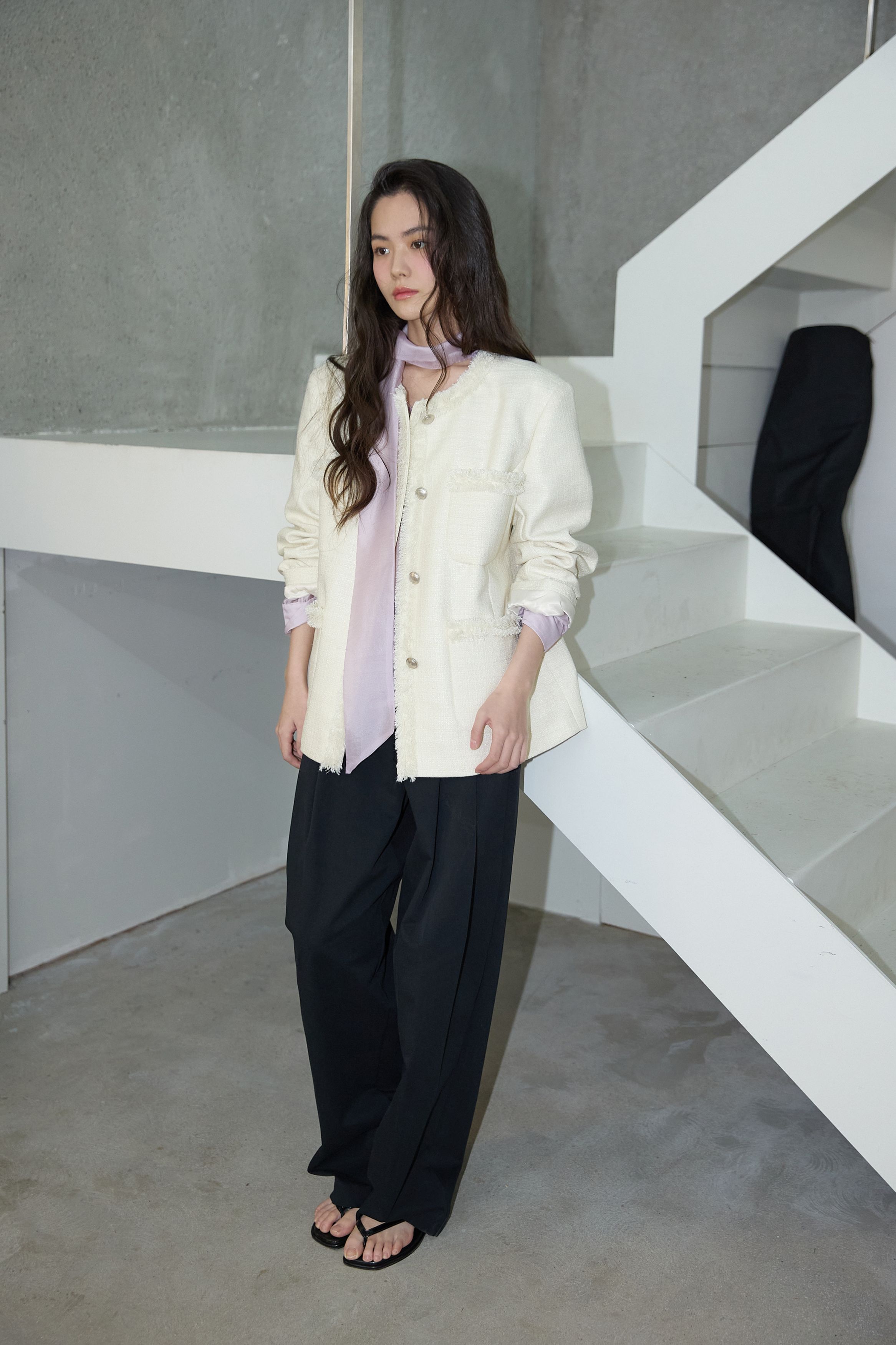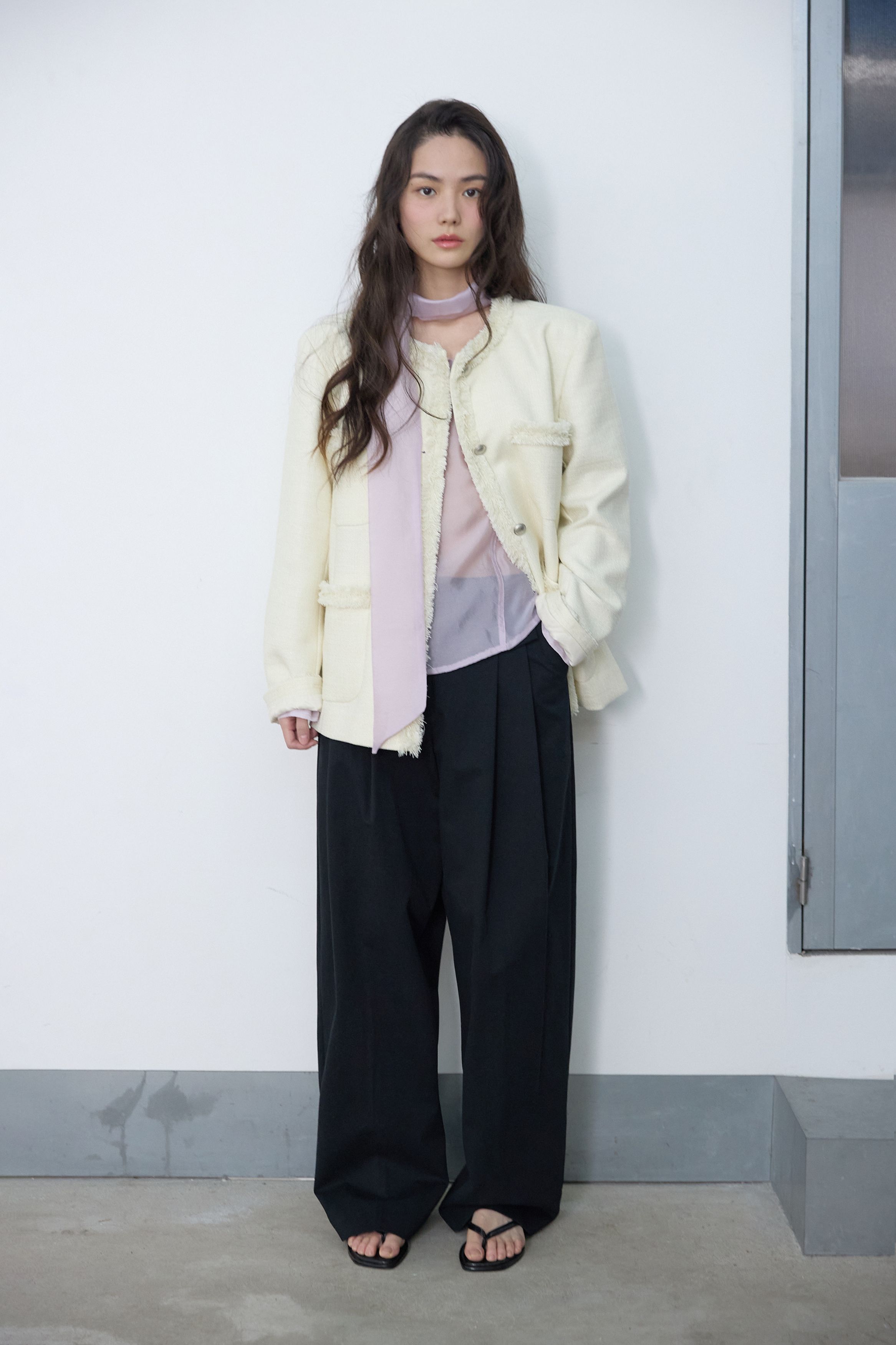 [무료반품] 프린지 트위드 자켓 크림 아이보리