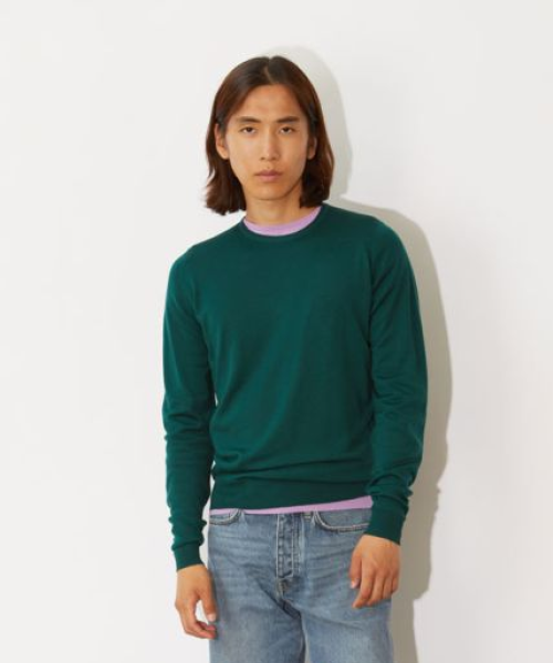 LUNDY Merino Wool Round Neck Knit - Pine