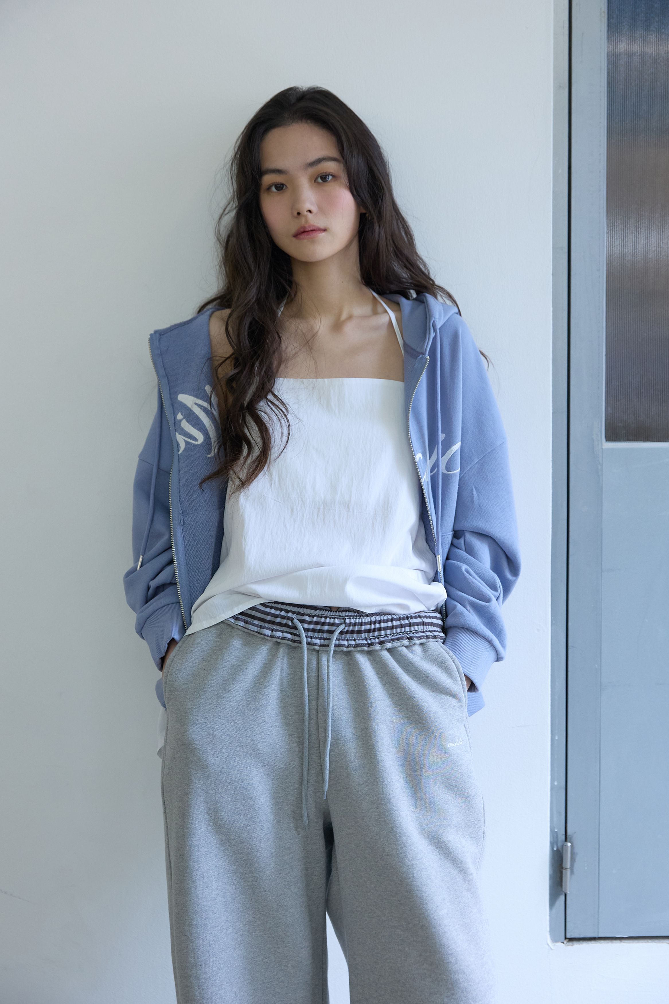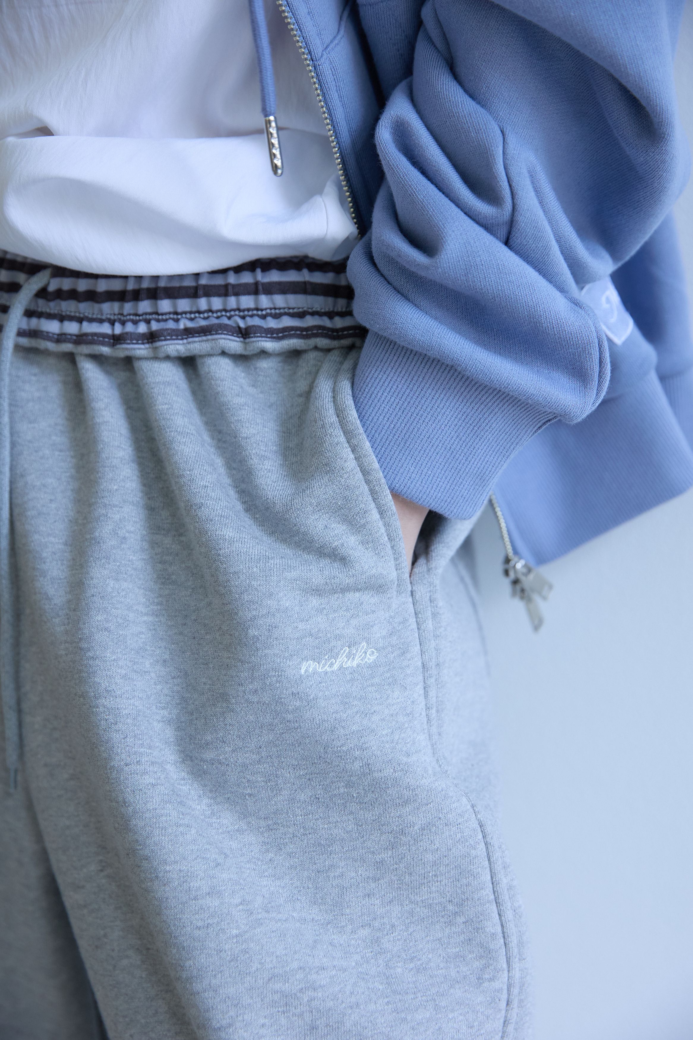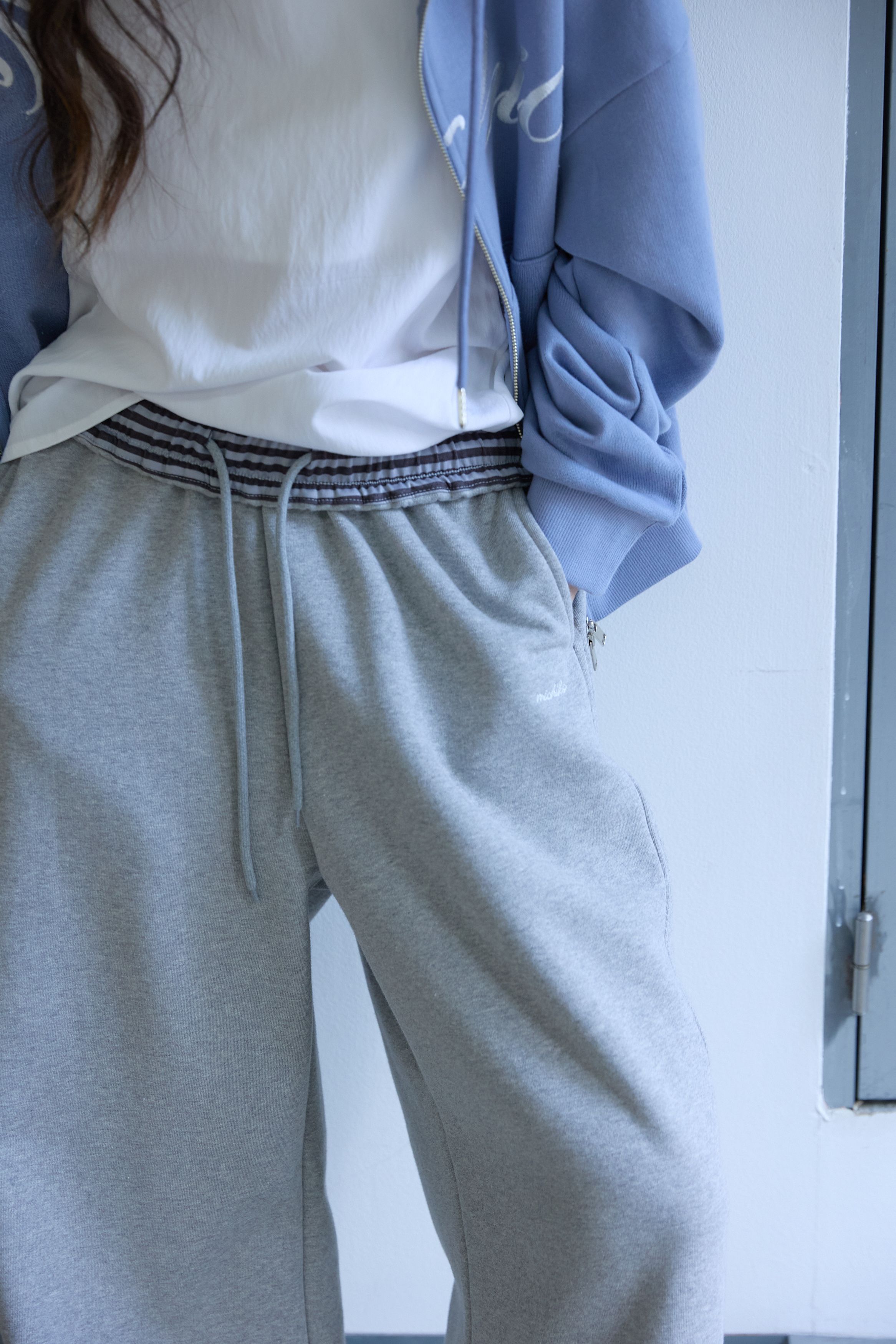 폴드 웨이스트 스웻팬츠 멜란지 그레이