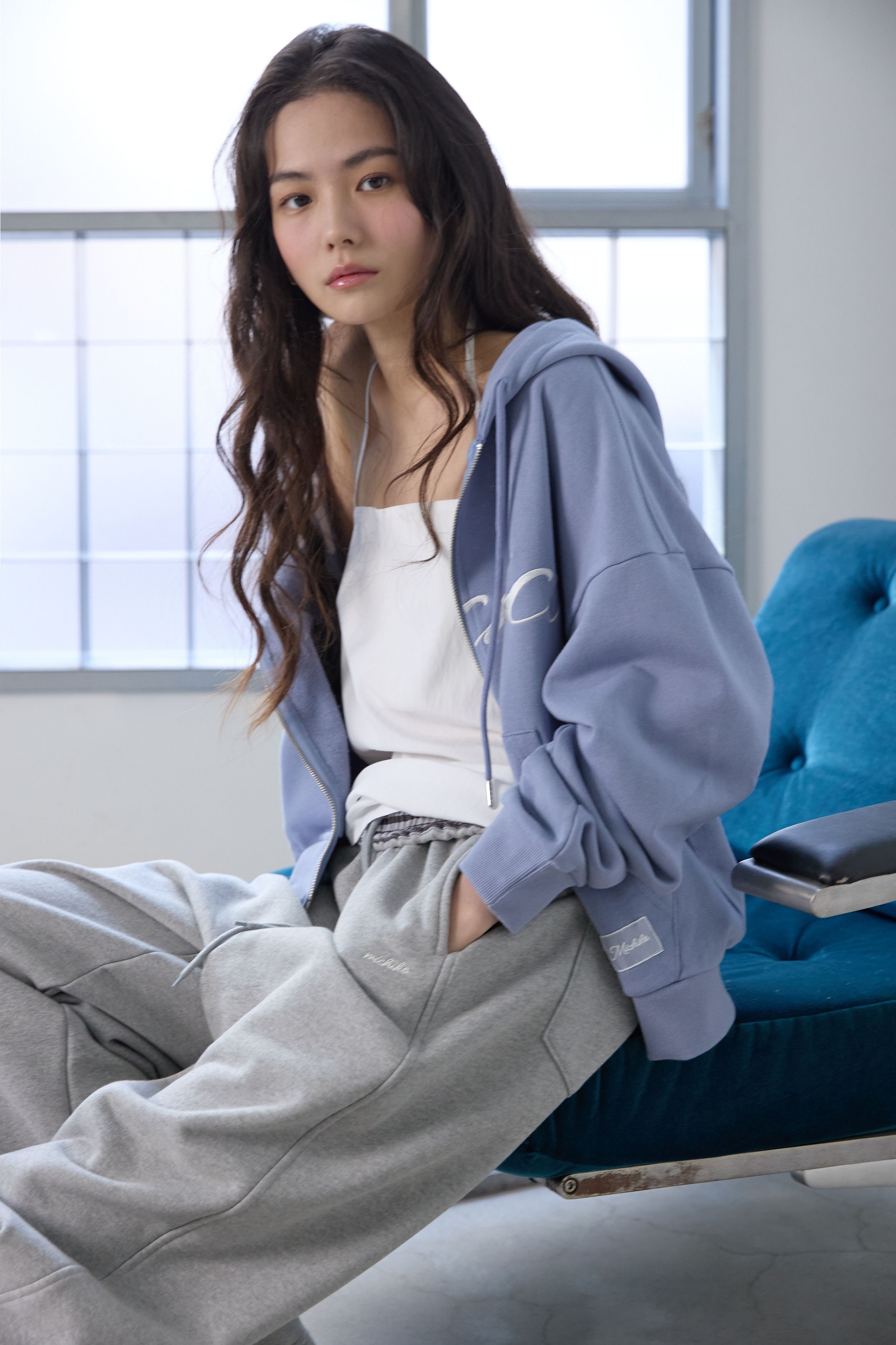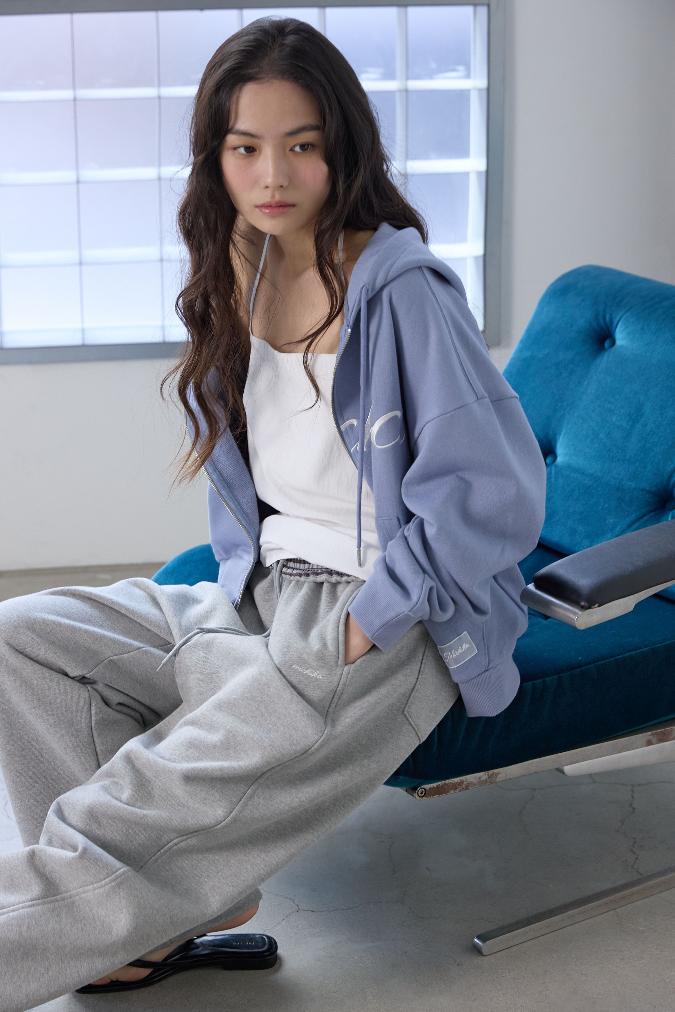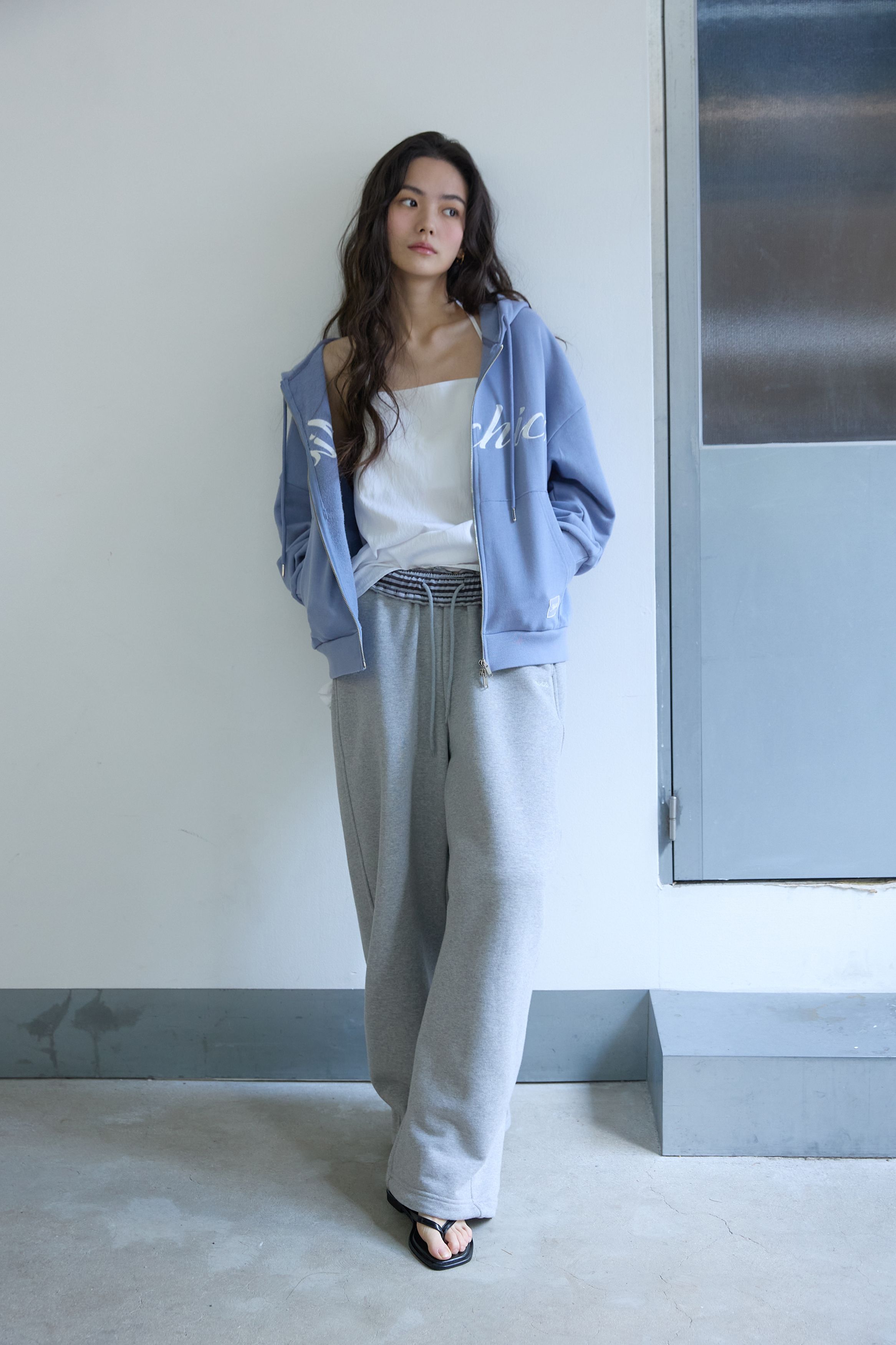 폴드 웨이스트 스웻팬츠 멜란지 그레이
