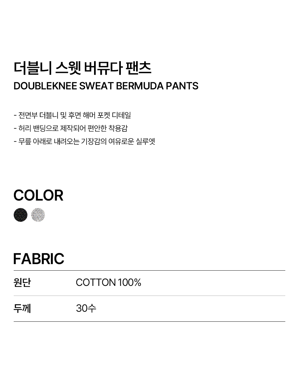 더블니 스웻 버뮤다 팬츠 (BLACK)