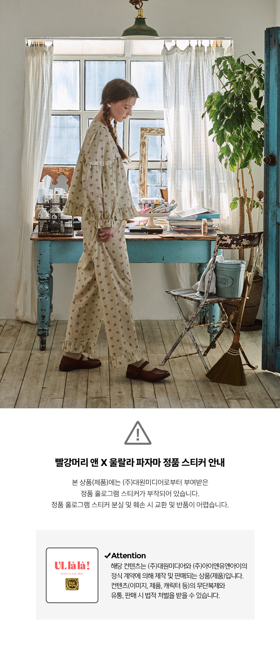 울랄라파자마(ULLALA PAJAMAS)는 '어머나'라는 뜻의 프랑스어 감탄사 '울랄라(ullala)'에서 영감을 받았습니다. 밖에서 돌아와 해방감을 만끽하는 순간처럼 평범한 일상을 마법 같은 하루로 바꾸어 드리고자 합니다.