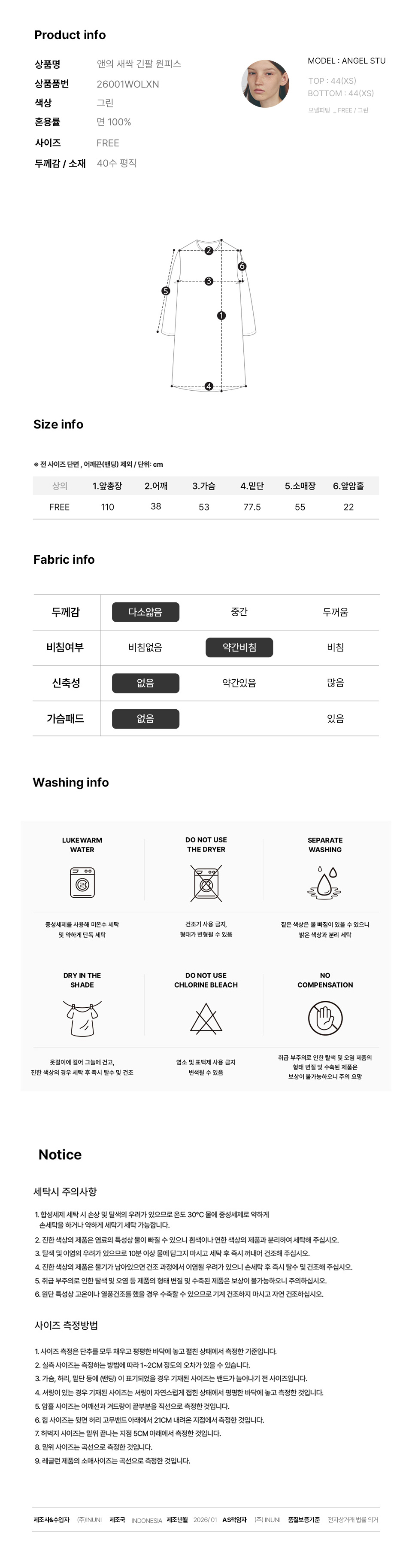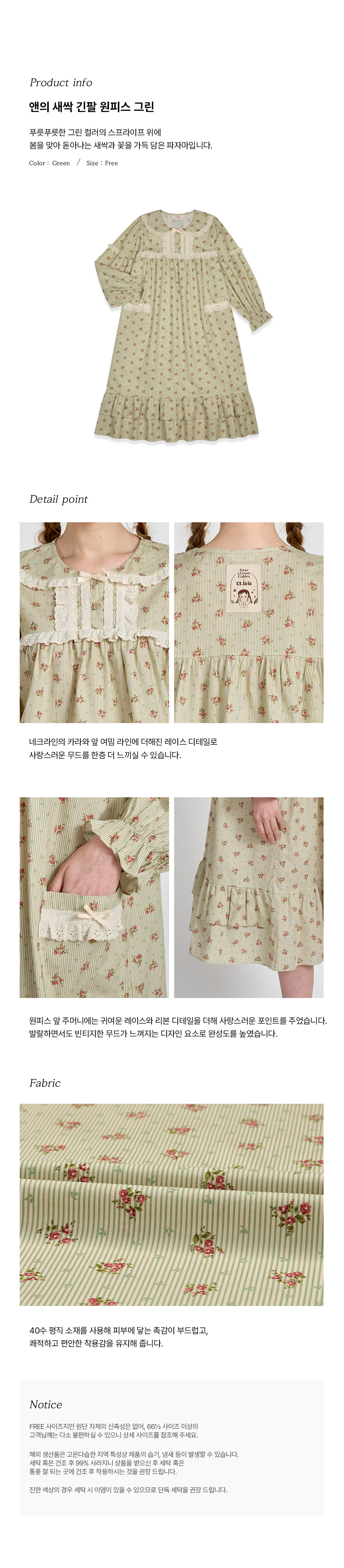 앤의 새싹 긴팔 원피스 그린 (40수)
