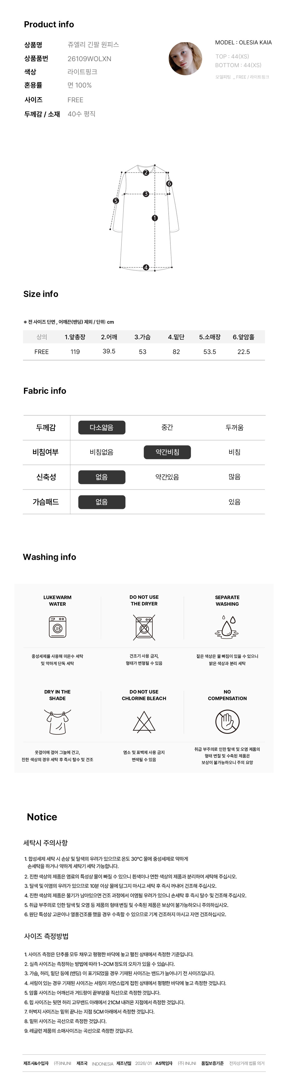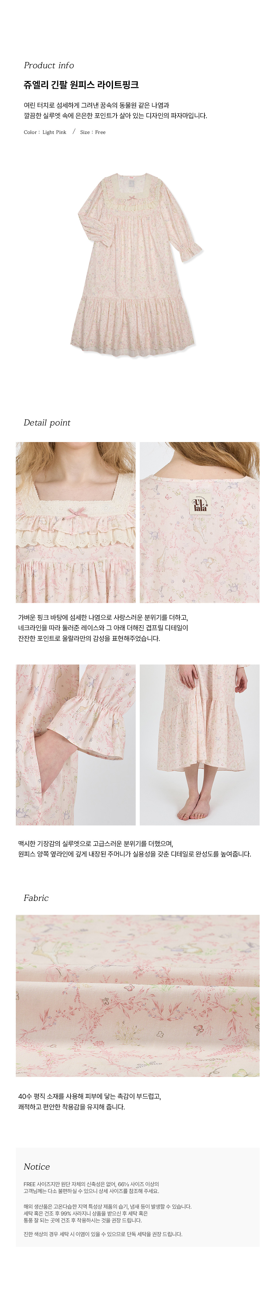 쥬엘리 긴팔 원피스 라이트핑크 (40수)