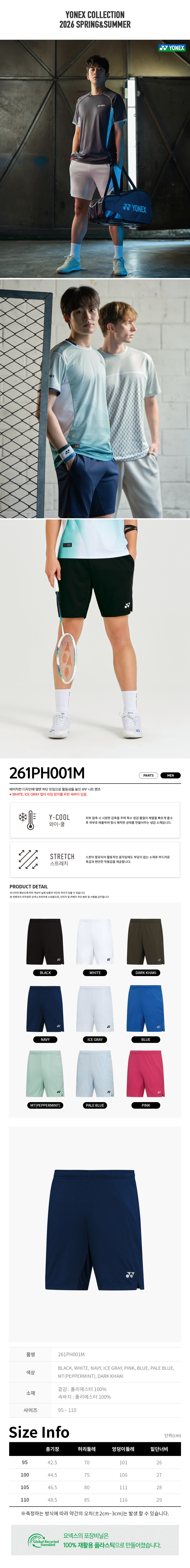 261PH001M 블랙/화이트/네이비/아이스그레이/핑크/블루/페일블루/민트/다크카키 남성용 4부 니트 반바지