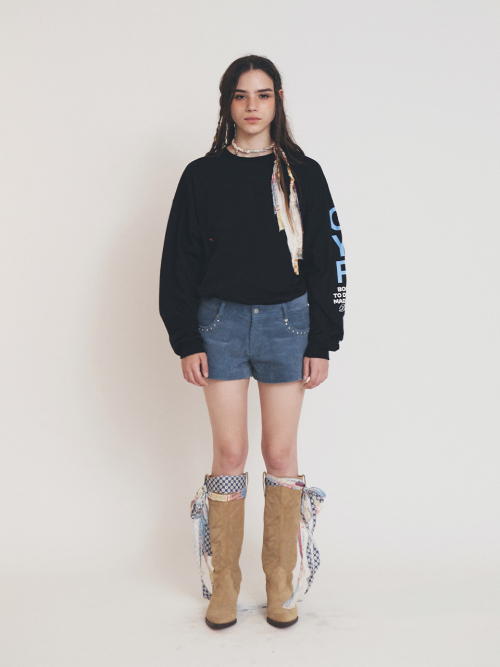 소매 라인에는 세로 레터링 프린트를 더해 유니크한 무드를 주었으며,