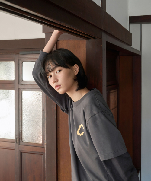 쿨 코튼 C 로고 티셔츠 차콜