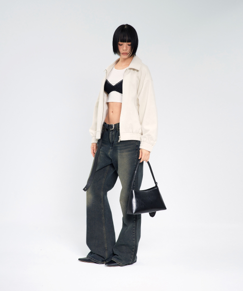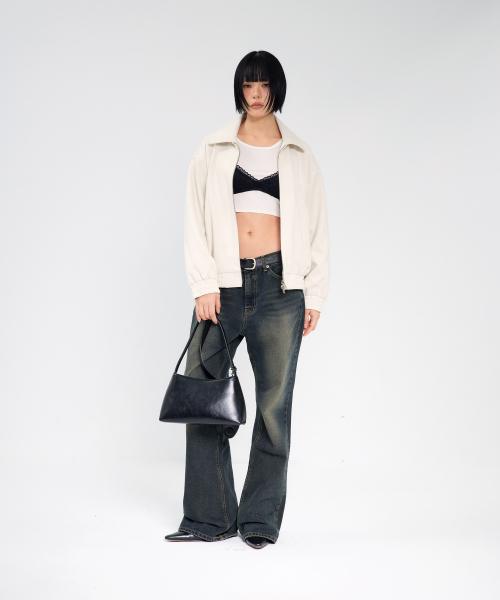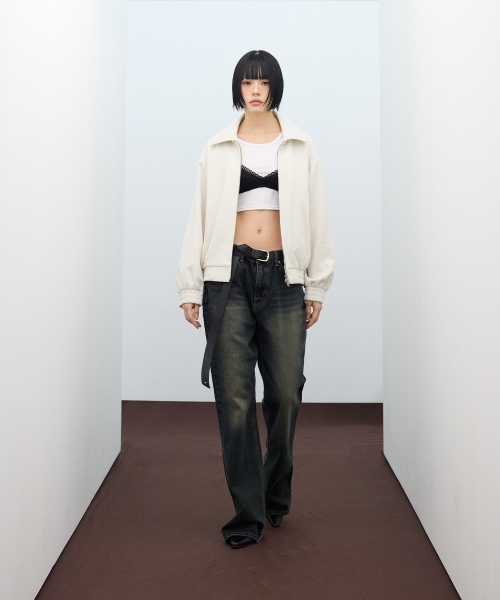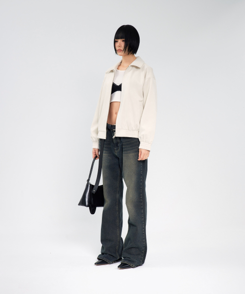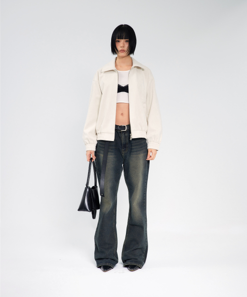 85-VIVA153 멜로우 크롭 블루종 스웨이드 자켓 아이보리