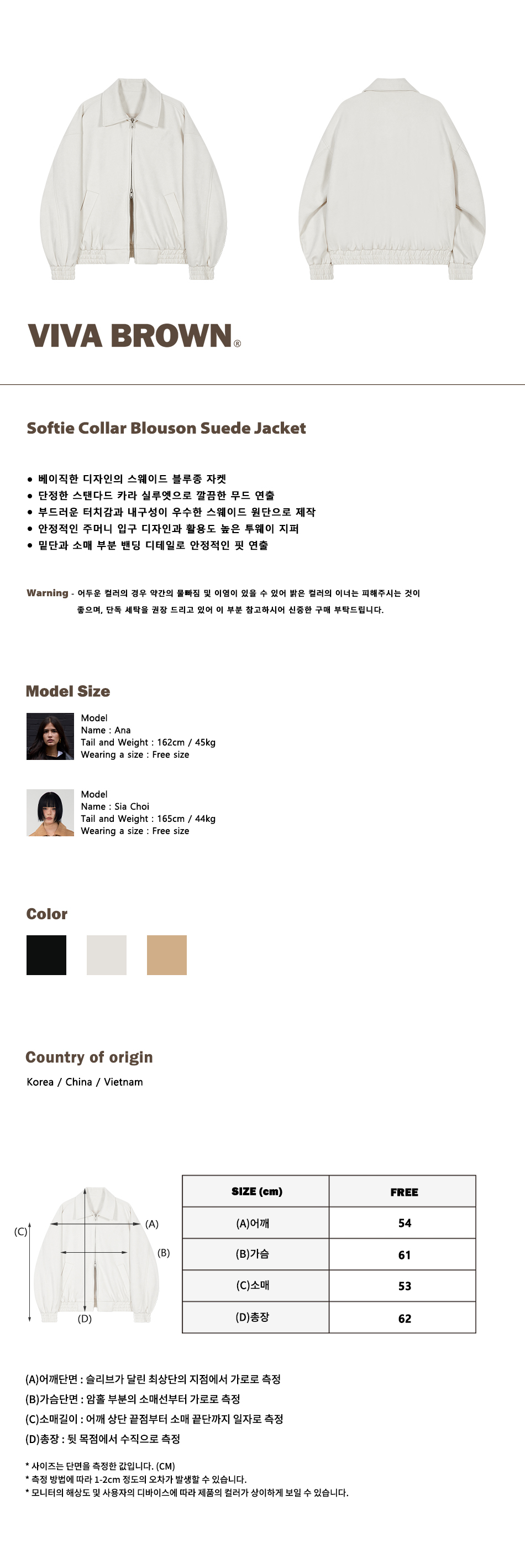 85-VIVA142 소프티 카라 블루종 스웨이드 자켓 아이보리