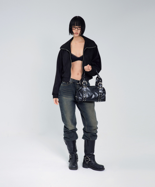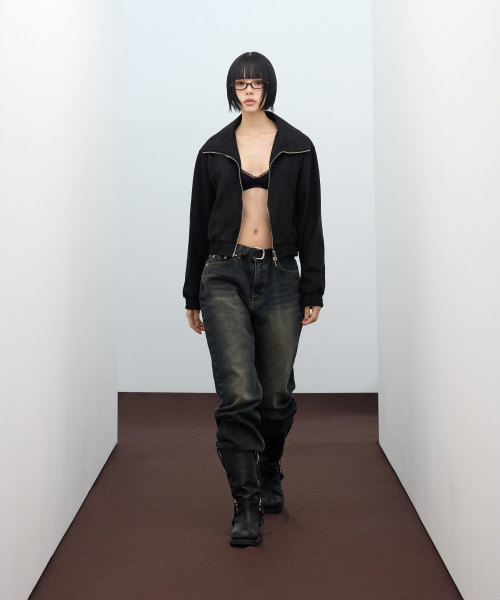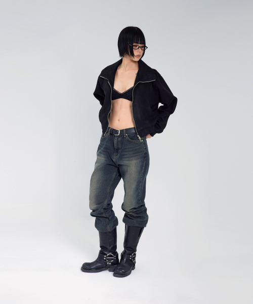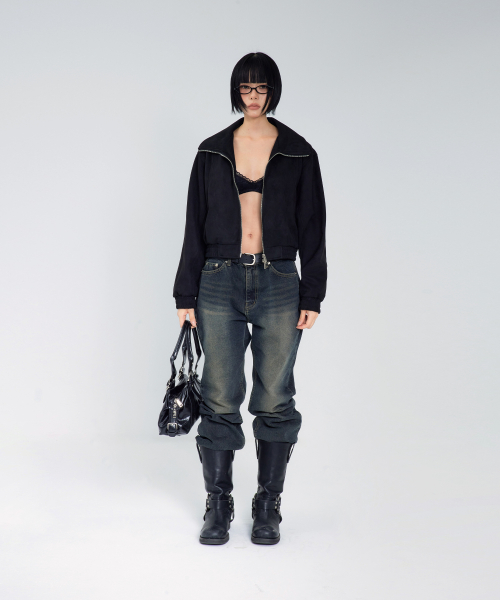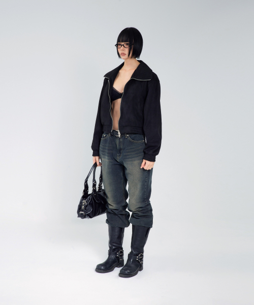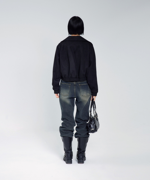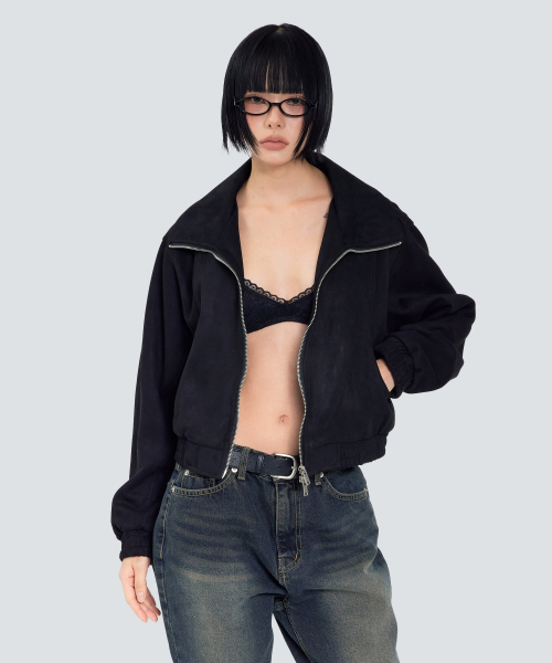 85-VIVA143 카빙 크롭 스웨이드 자켓 블랙