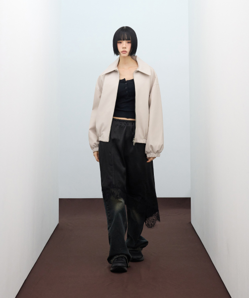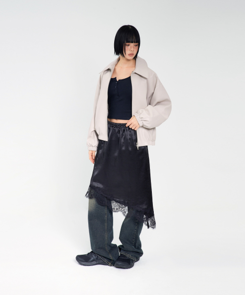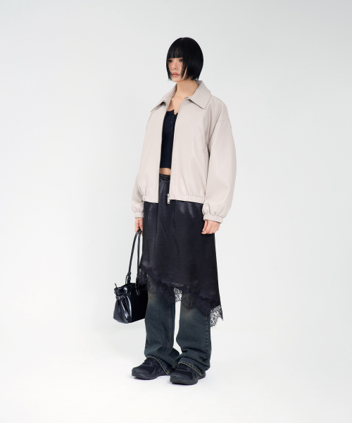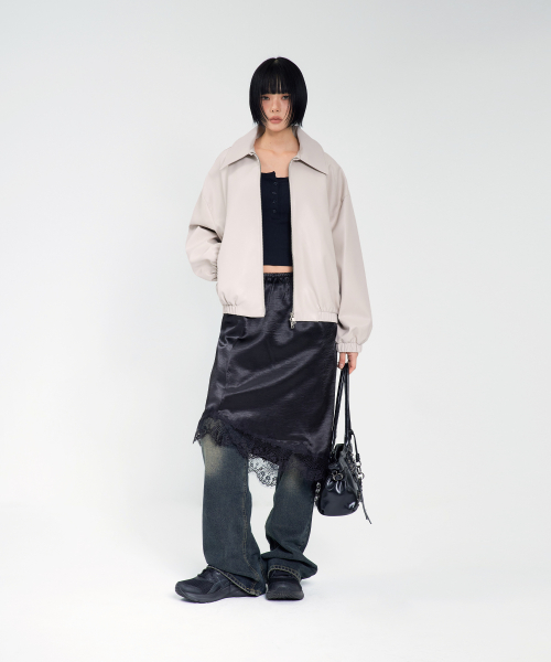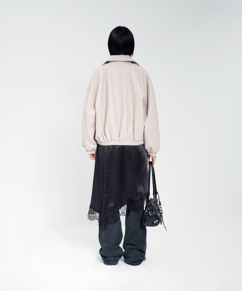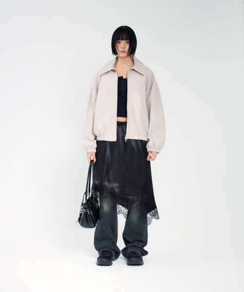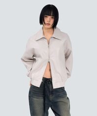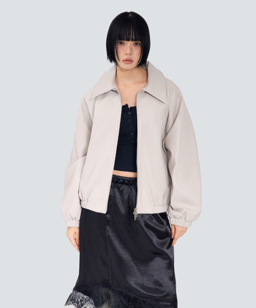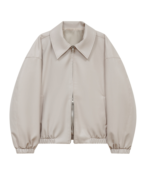 85-VIVA146 누벨 카라 블루종 레더 자켓 아이보리