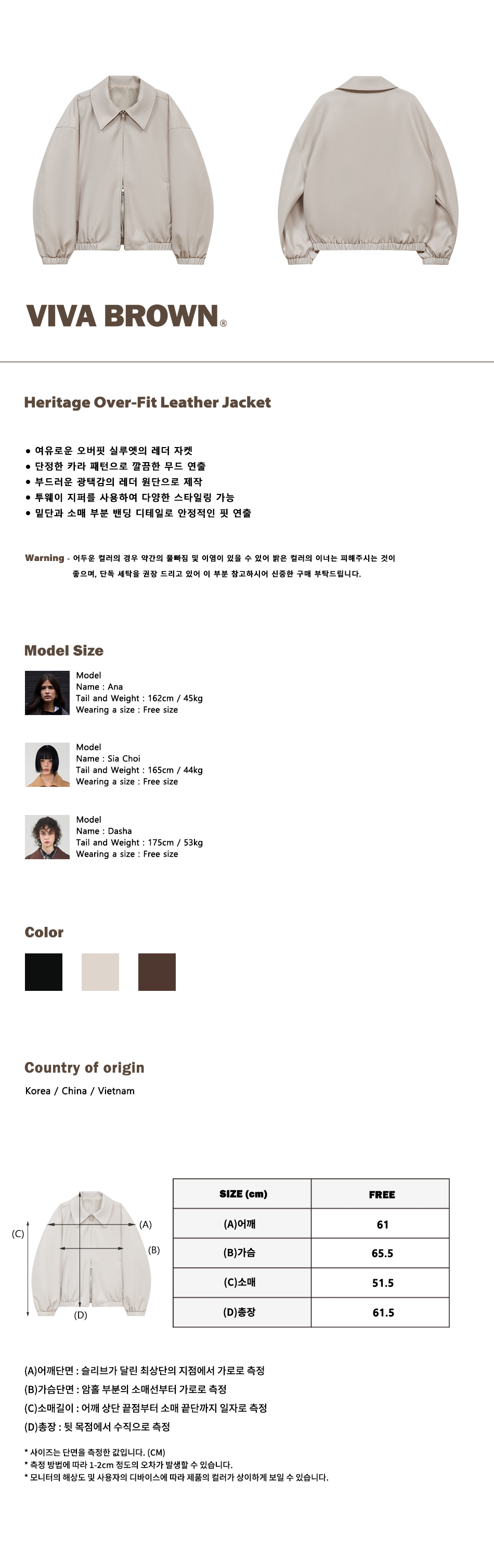 85-VIVA152 헤리티지 오버핏 레더 자켓 아이보리