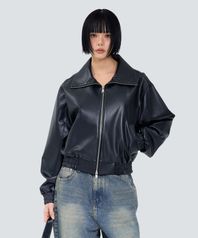85-VIVA148 스탠드 풀업 크롭 레더 자켓 블랙
