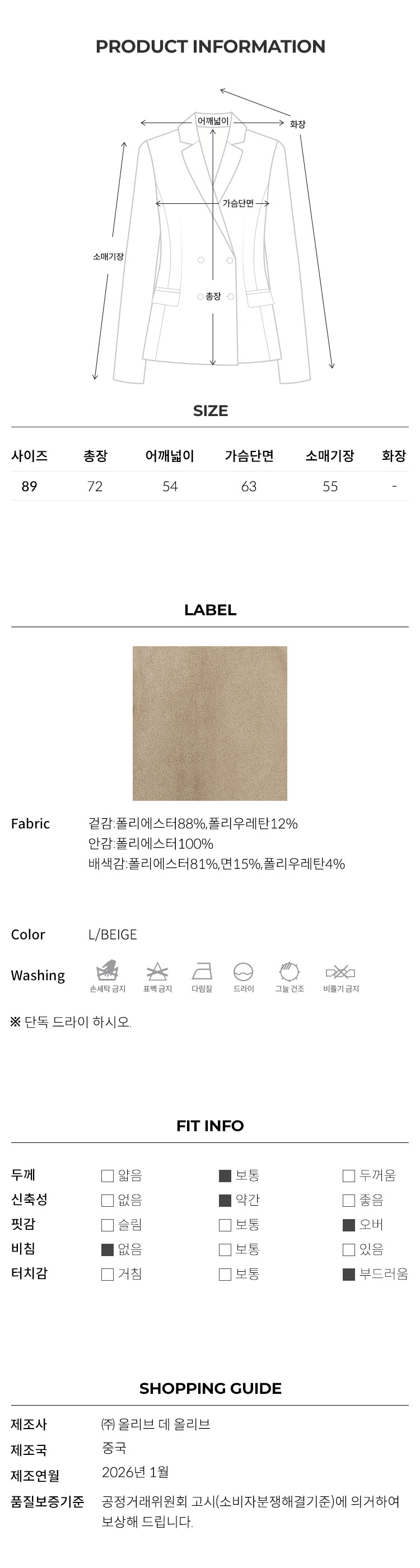 쓰리버튼 테일러드 울자켓 OW5WJA520A