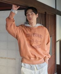 플래그 그래픽 피그먼트 맨투맨 오렌지
