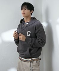 [추영우 착용] 웜온 아치로고 플리스 후디 Charcoal