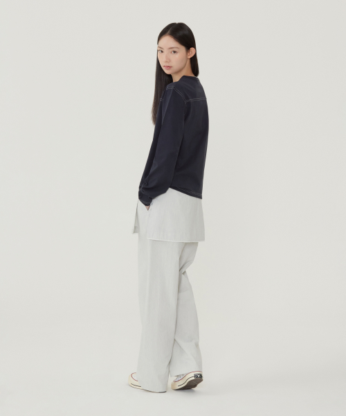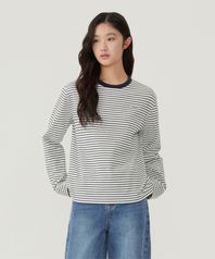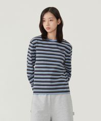 우먼 멀티 스트라이프 롱슬리브 다크 네이비