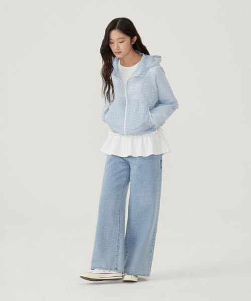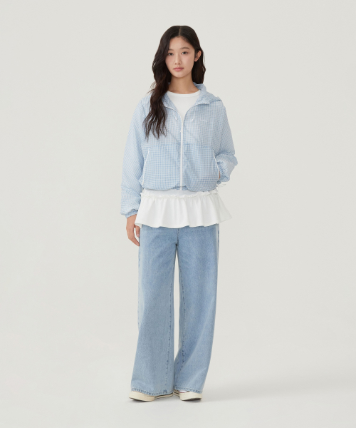 우먼 패커블 경량 UV 윈드브레이커 스카이블루
