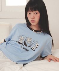 [커버낫X하이다나] 럭키 씨리얼 링거 티셔츠 Sky Blue