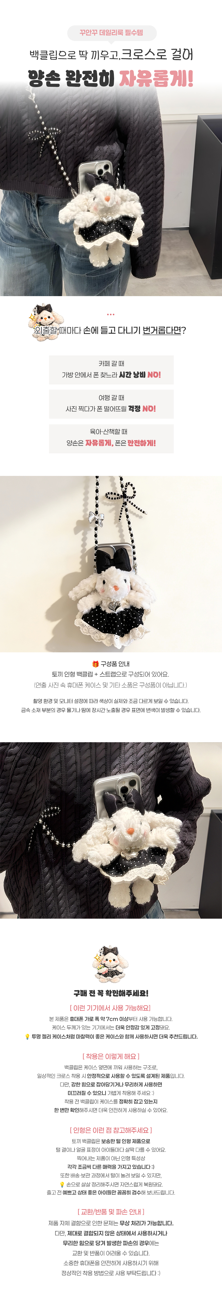 핸드폰 백클립 폰스트랩 케이스 도트드레스래빗