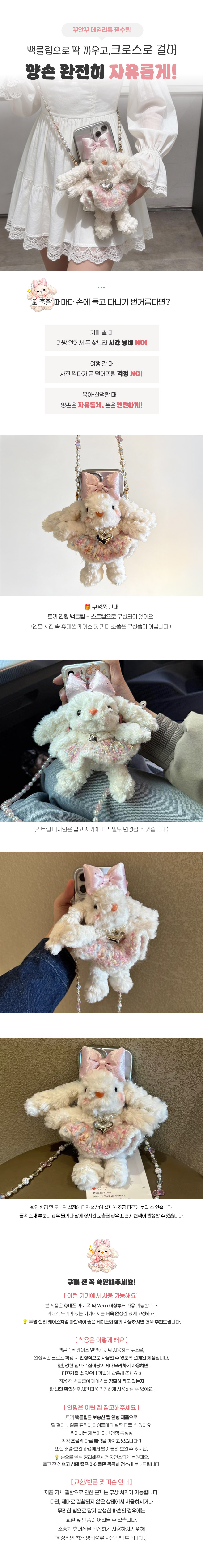 핸드폰 백클립 폰스트랩 케이스 핑크드레스래빗