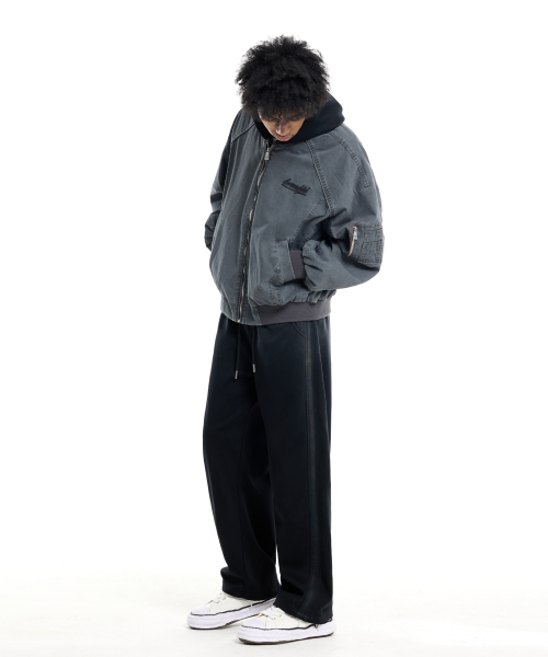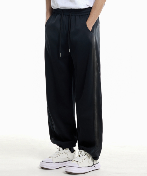 밴딩 와이드 파이핑 사선 카고 팬츠 블랙