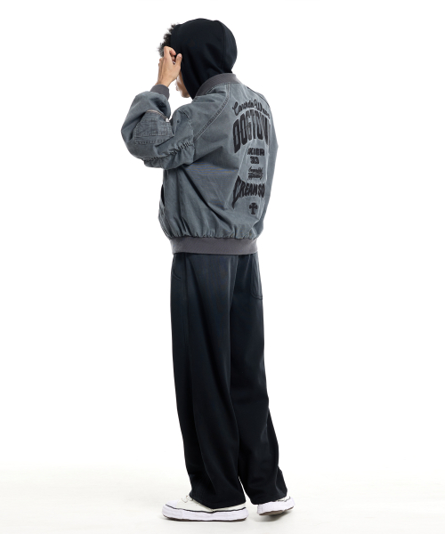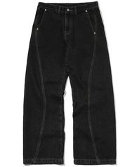 커브드 와이드 데님 팬츠 블랙