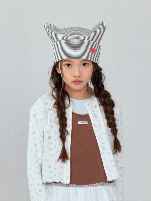 MINI CAT STRIPE BEANIE_IVORY/BLACK