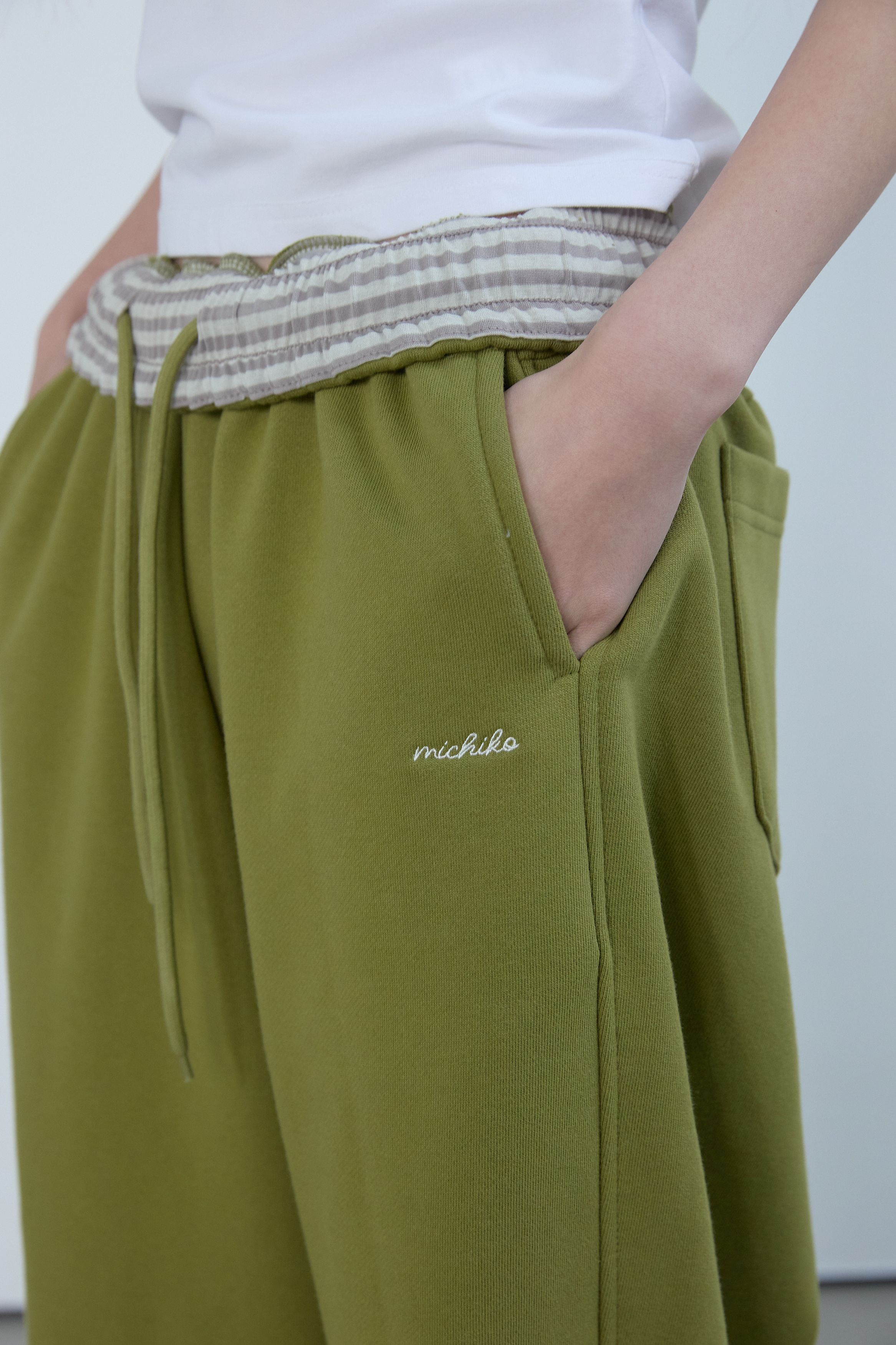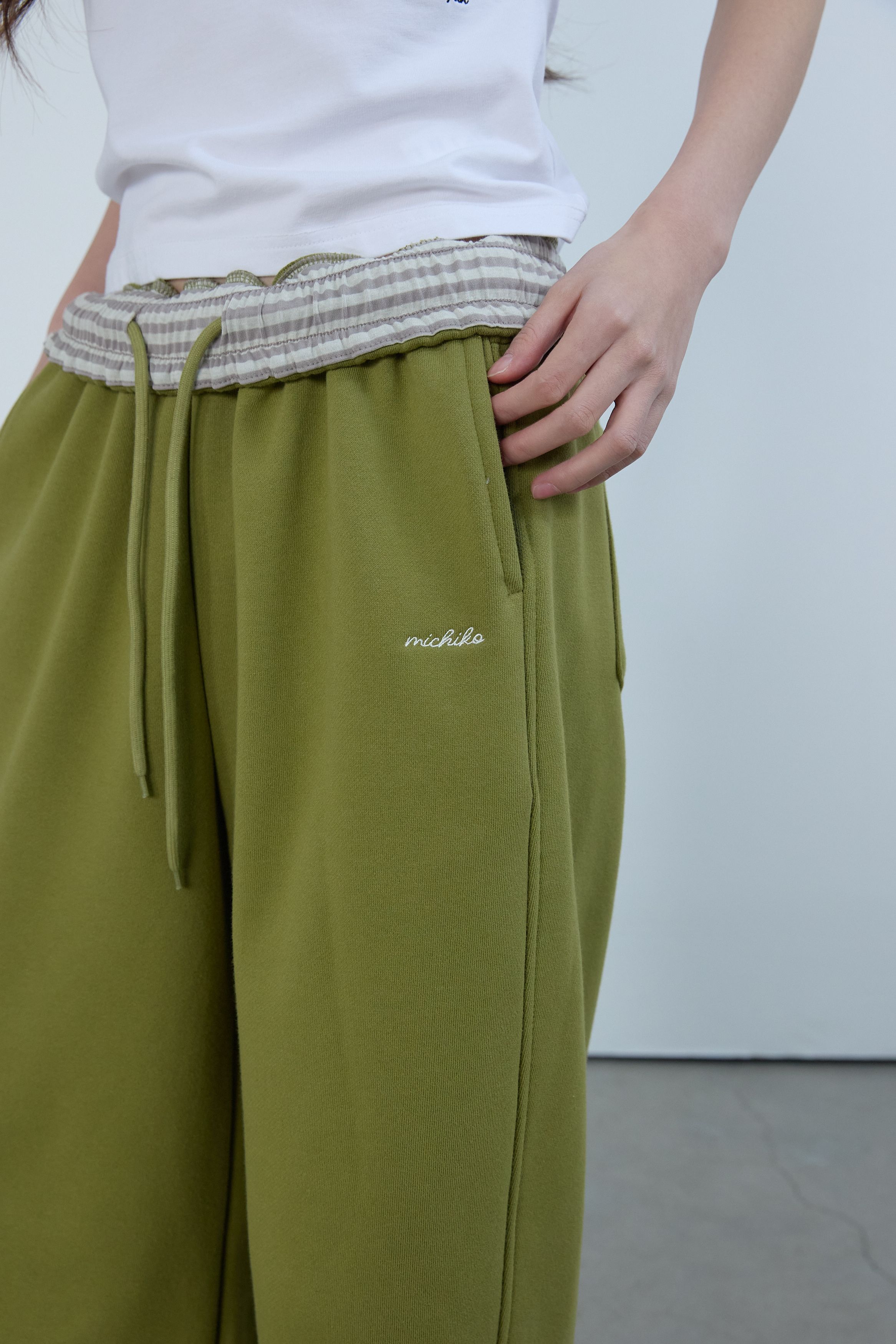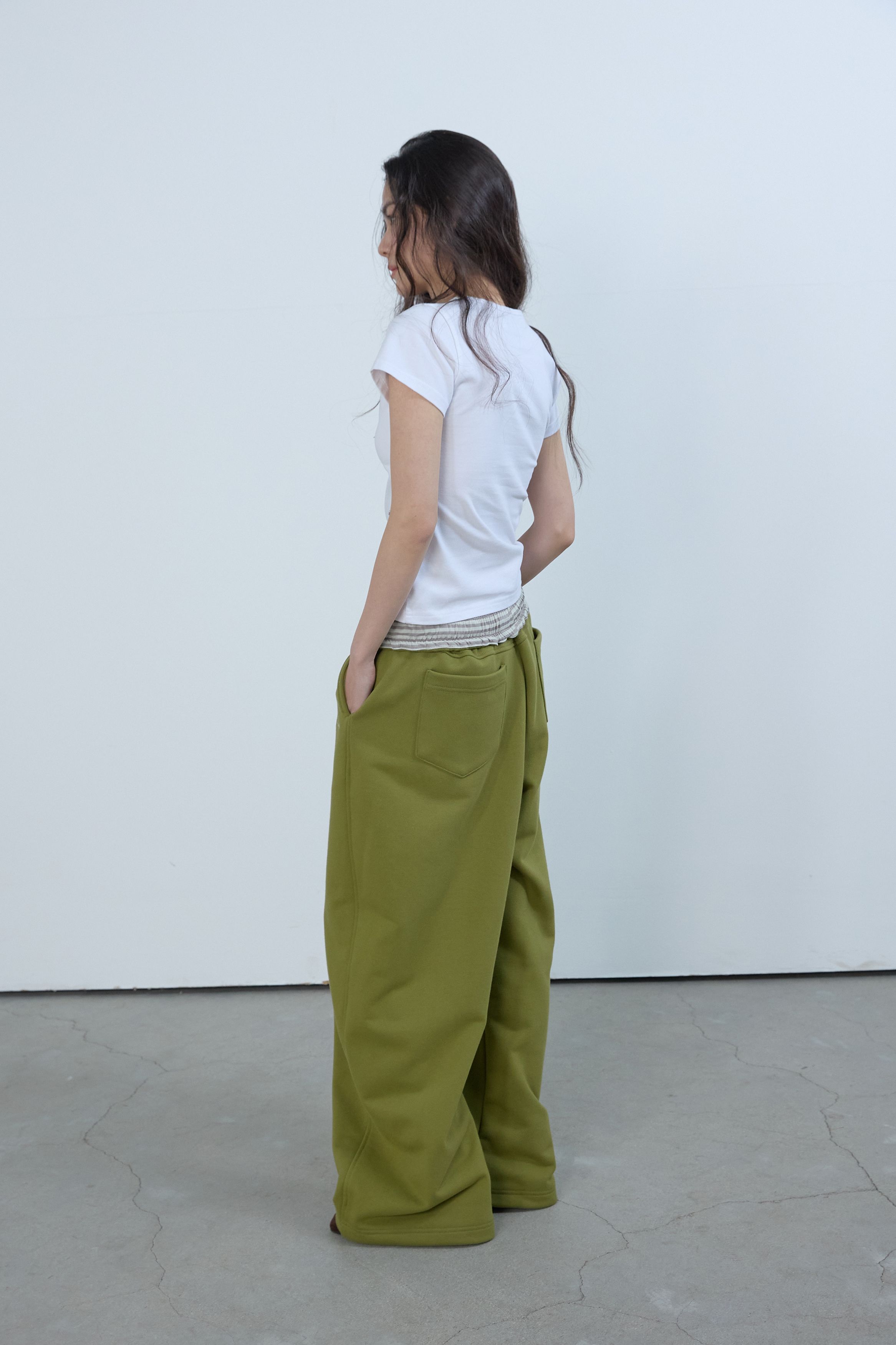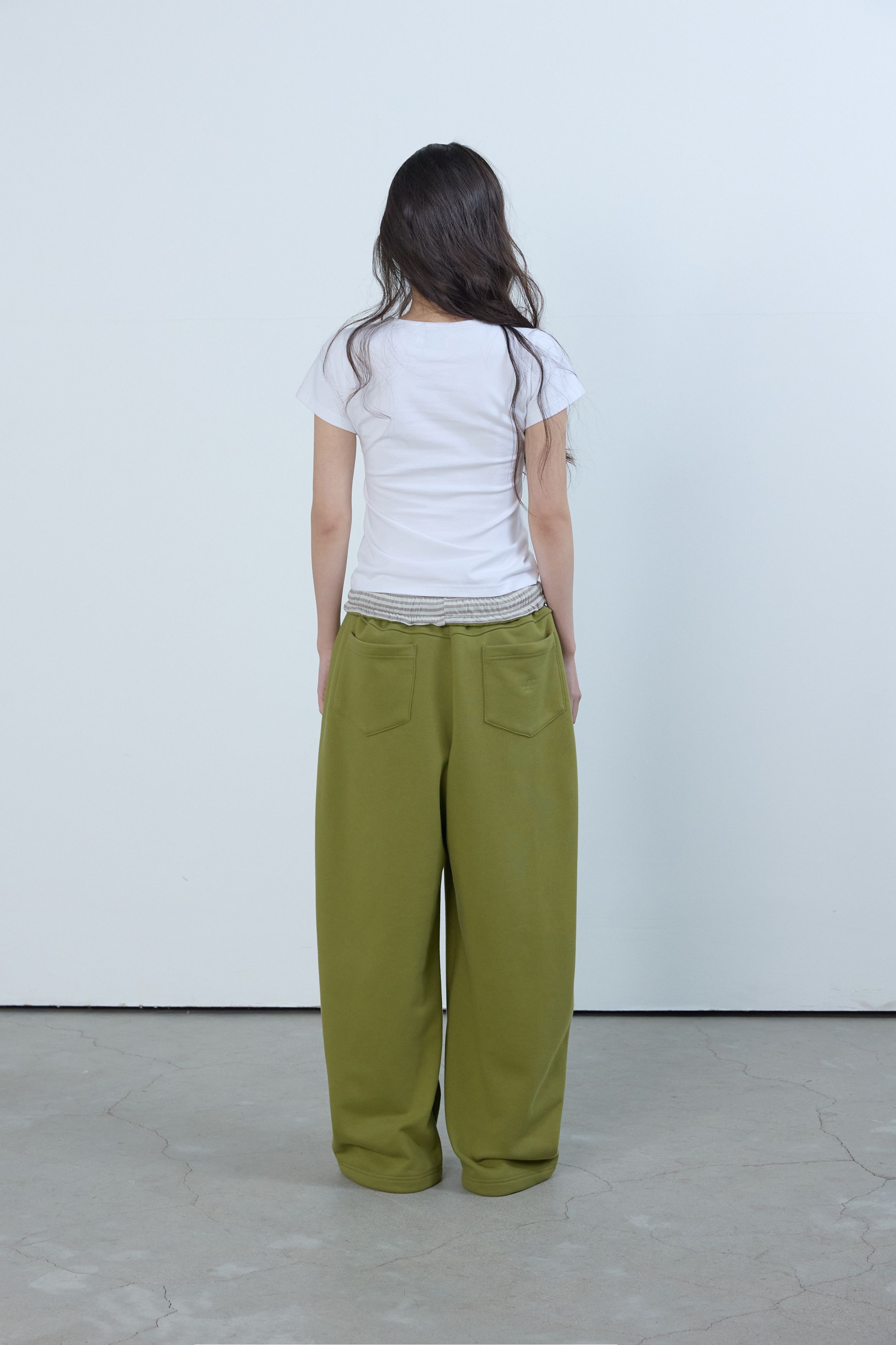폴드 웨이스트 스웻팬츠 올리브 그린