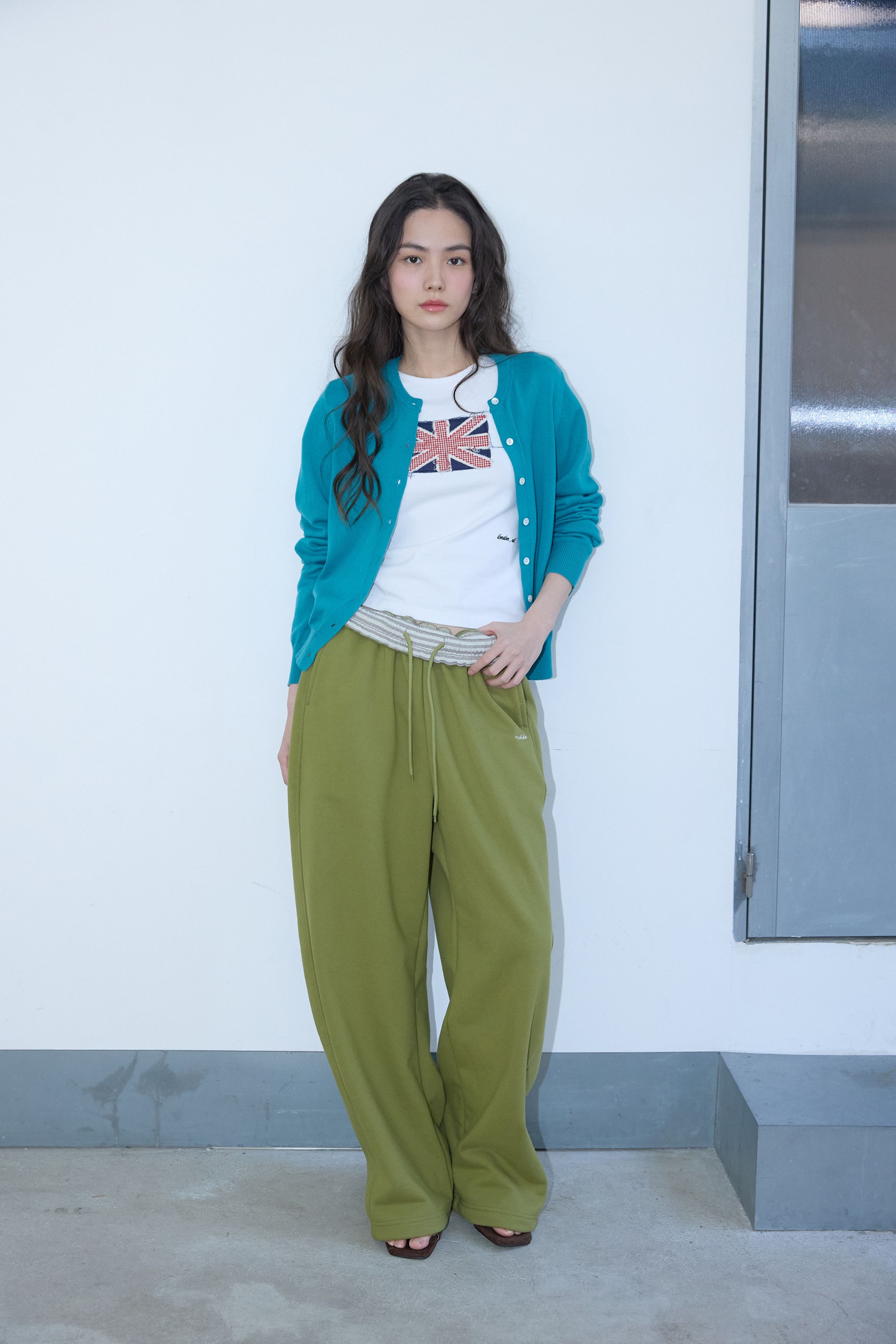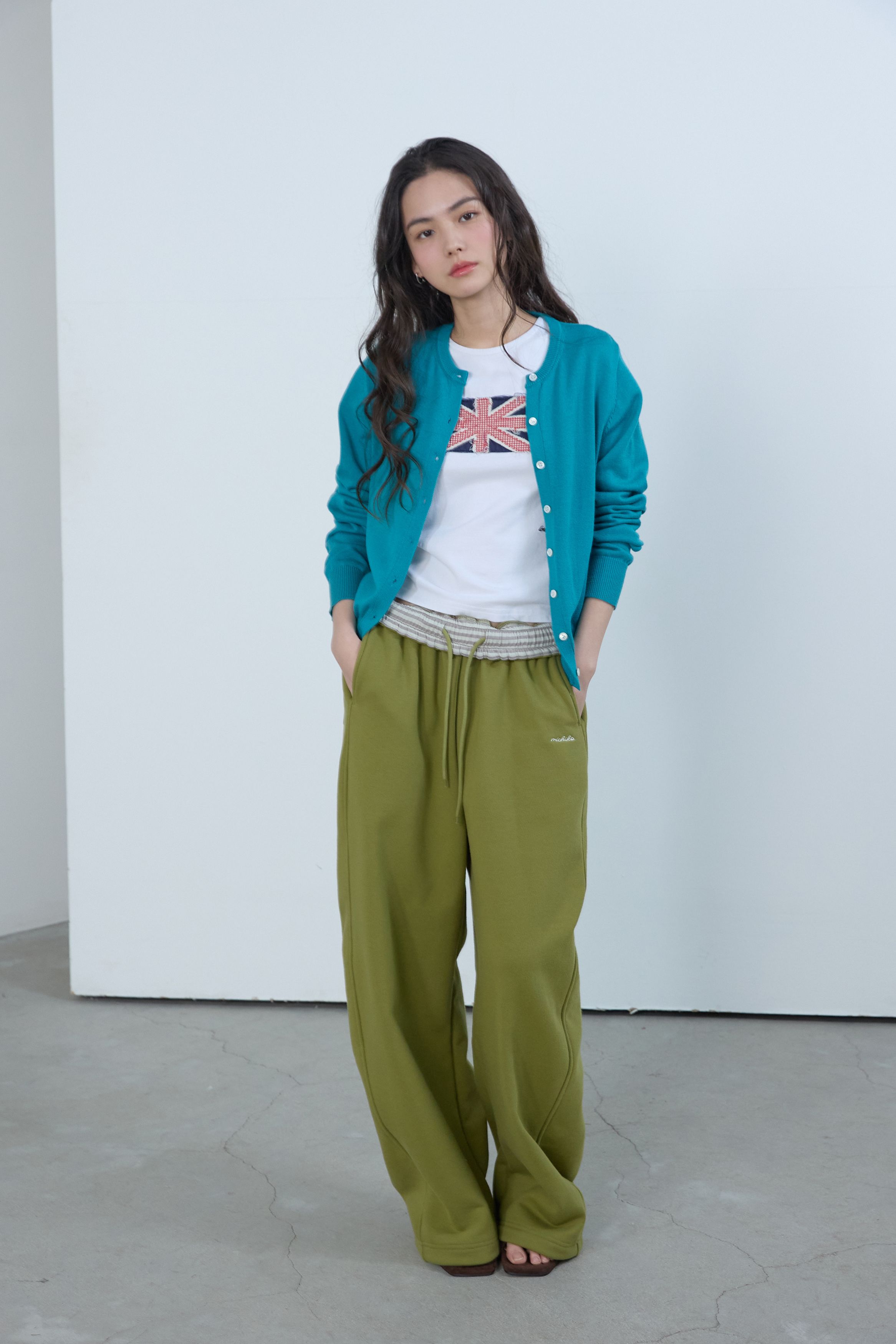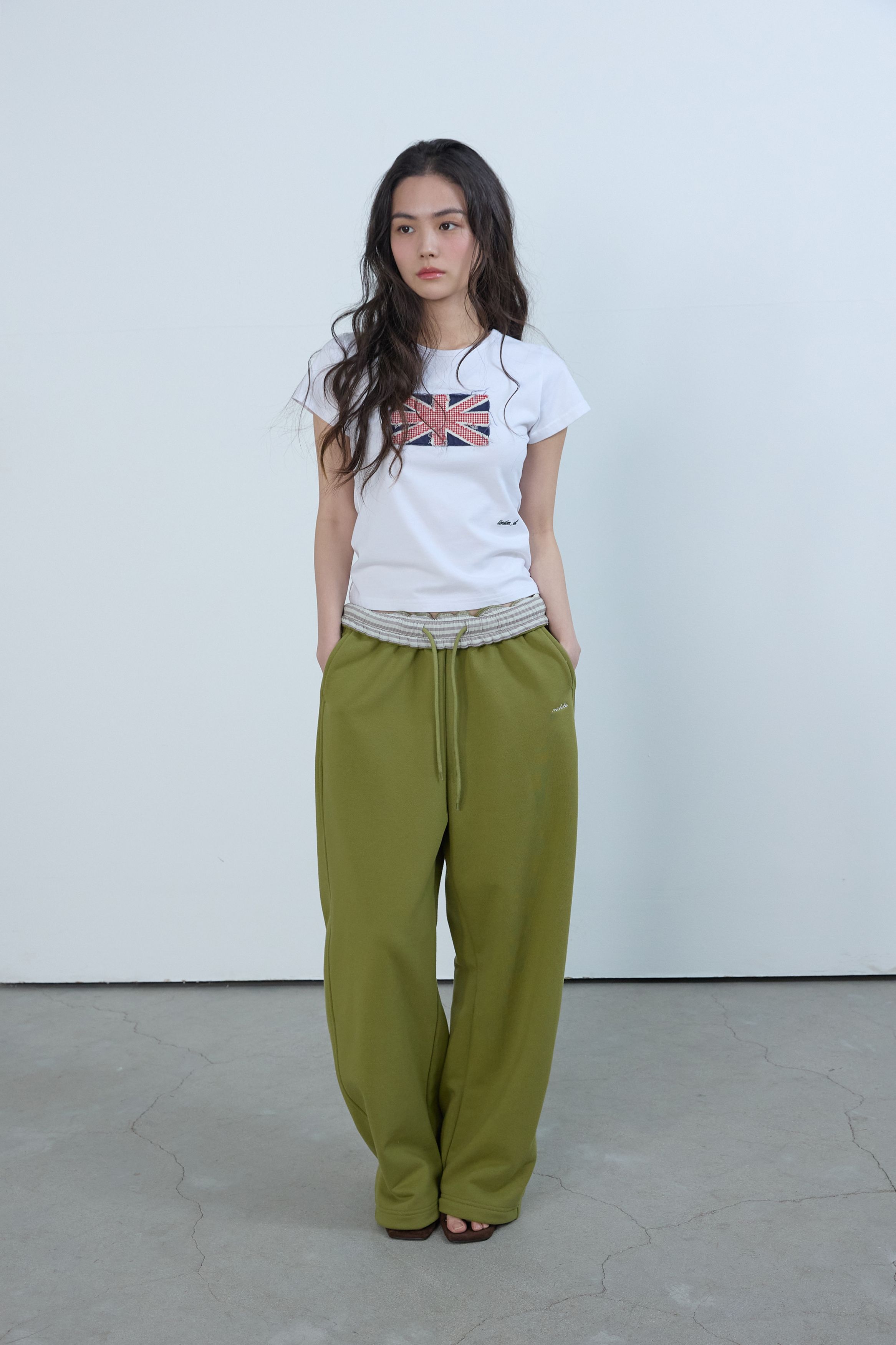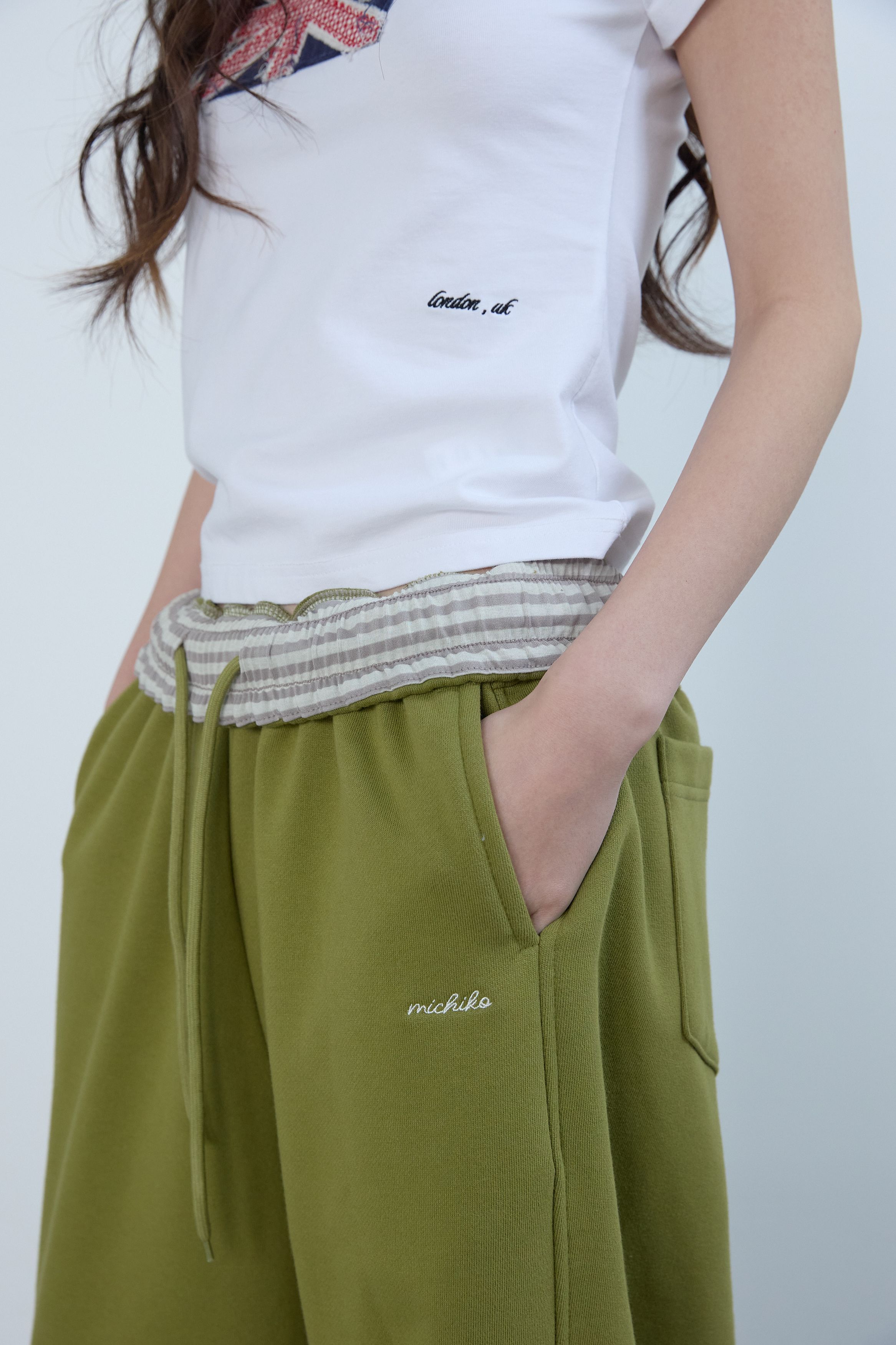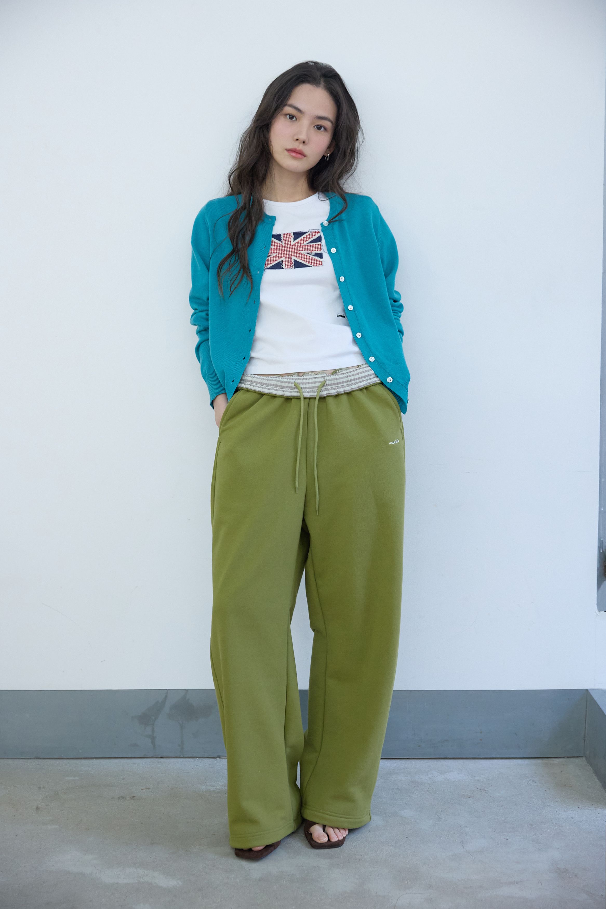 폴드 웨이스트 스웻팬츠 올리브 그린