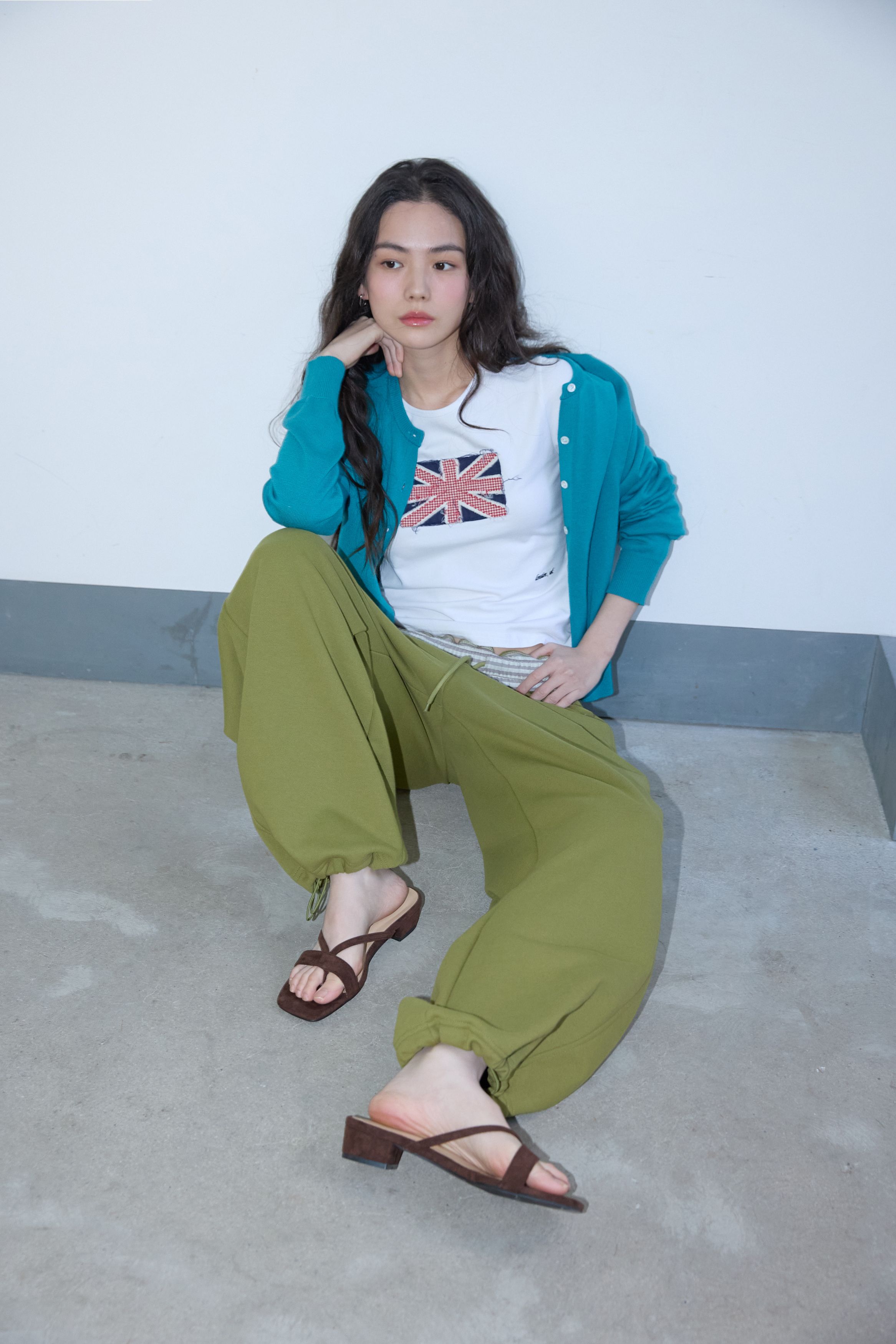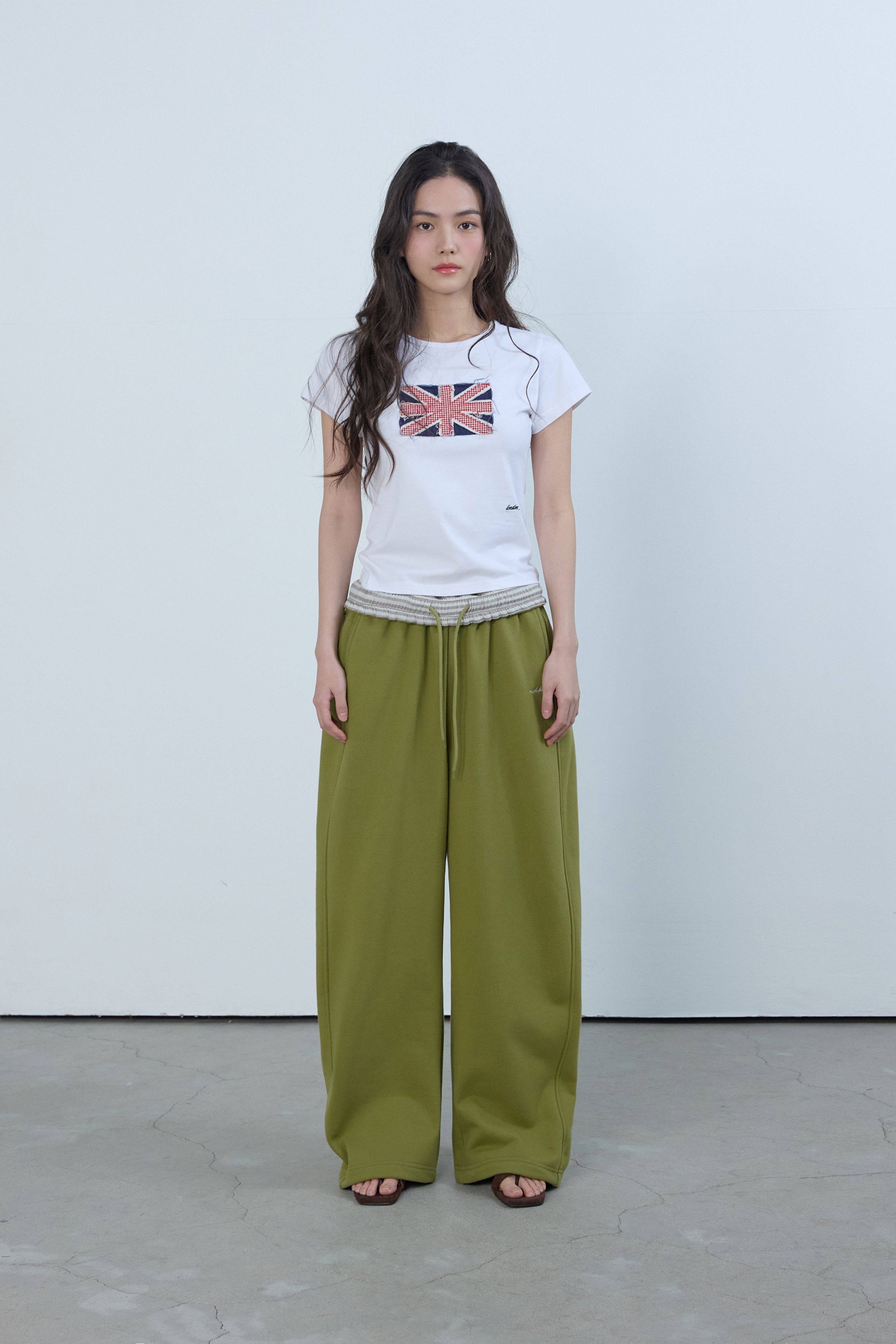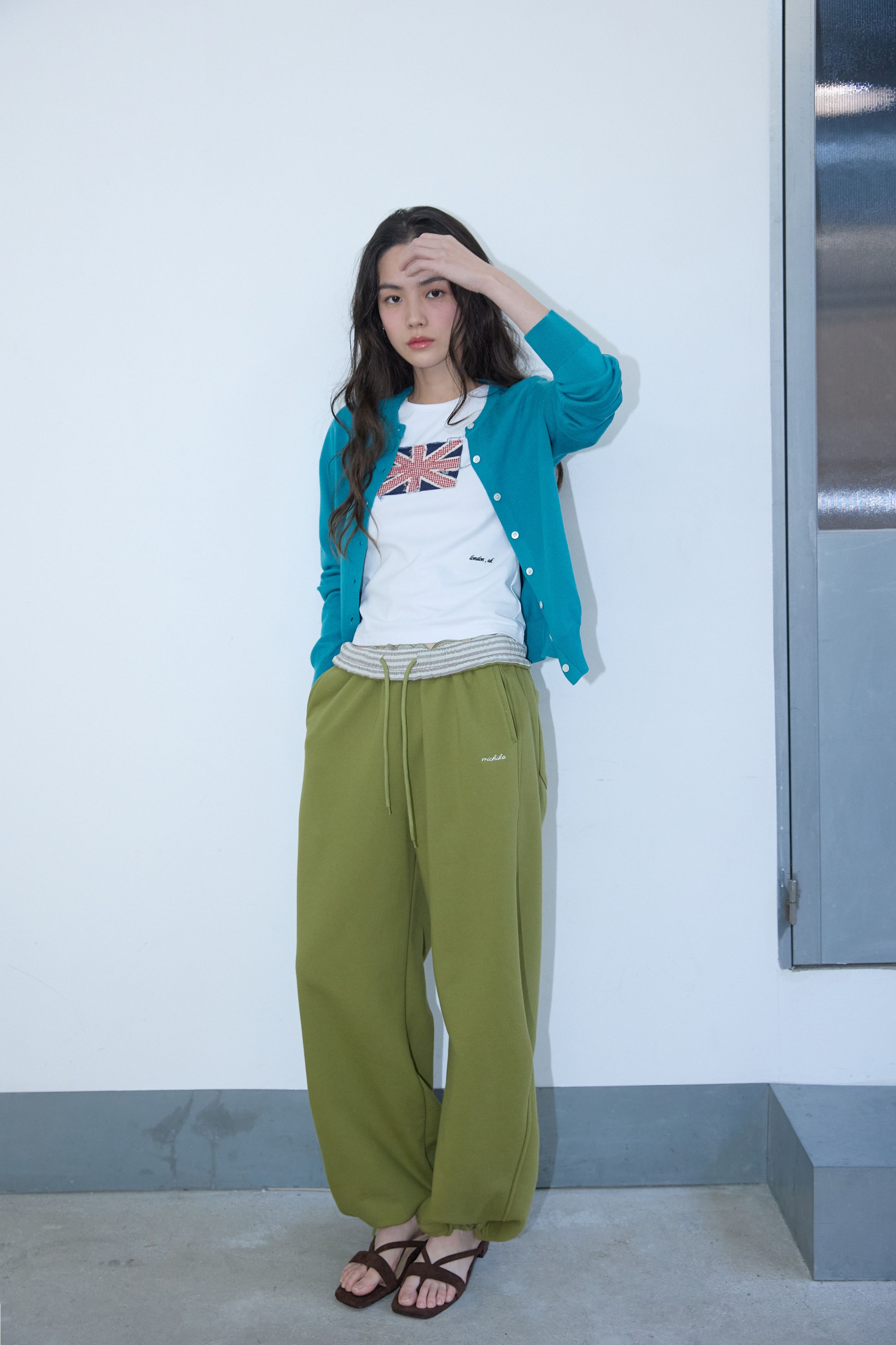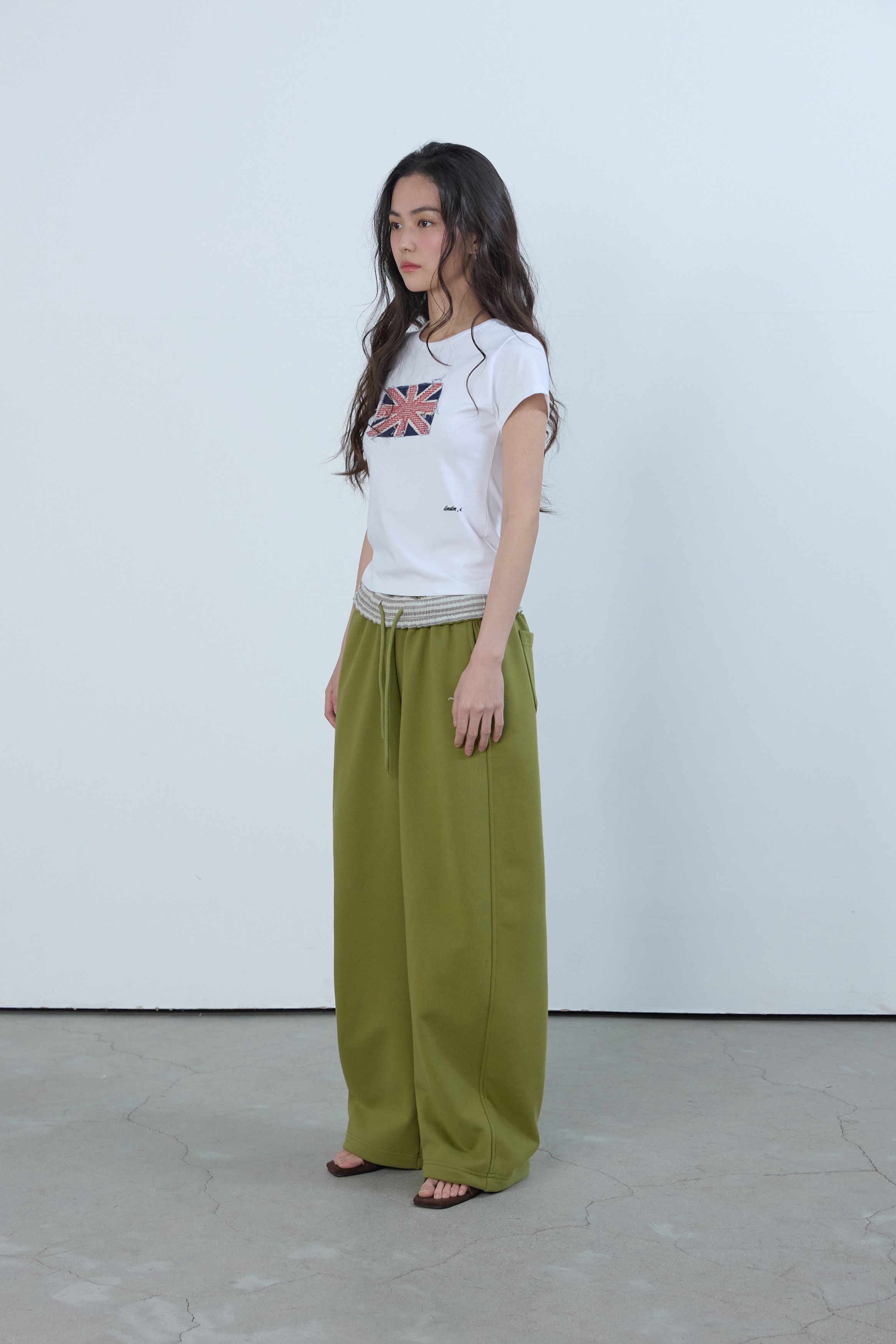 폴드 웨이스트 스웻팬츠 올리브 그린