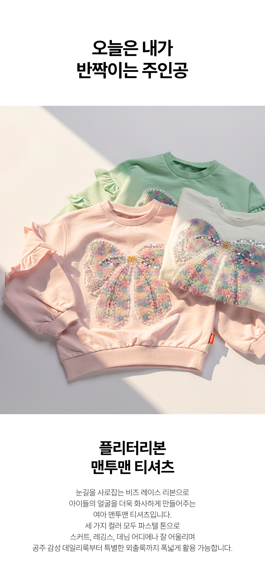 플리터리본 맨투맨 티셔츠 - 3 COLOR