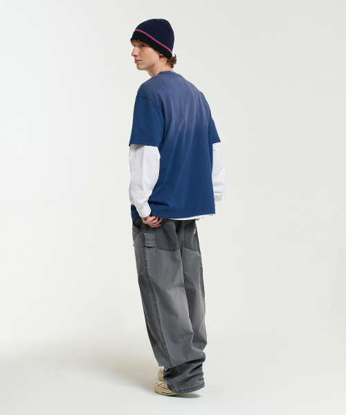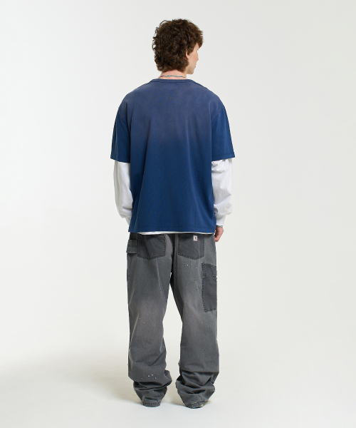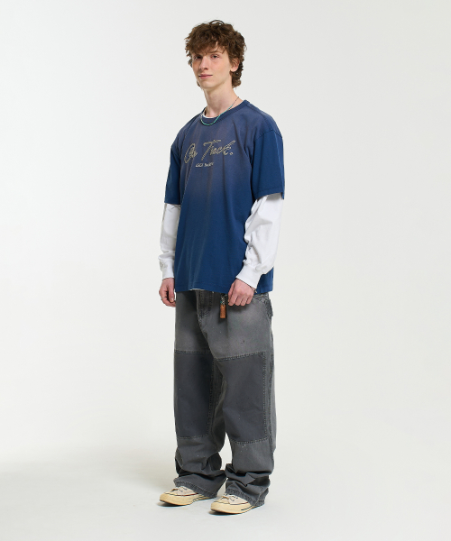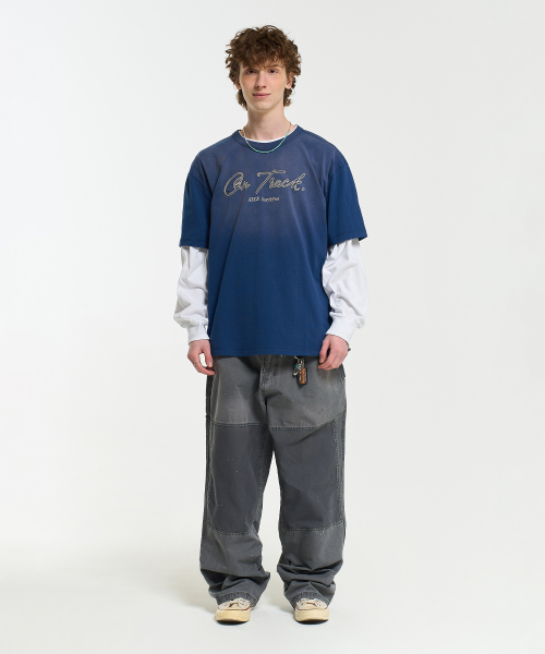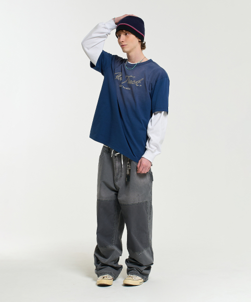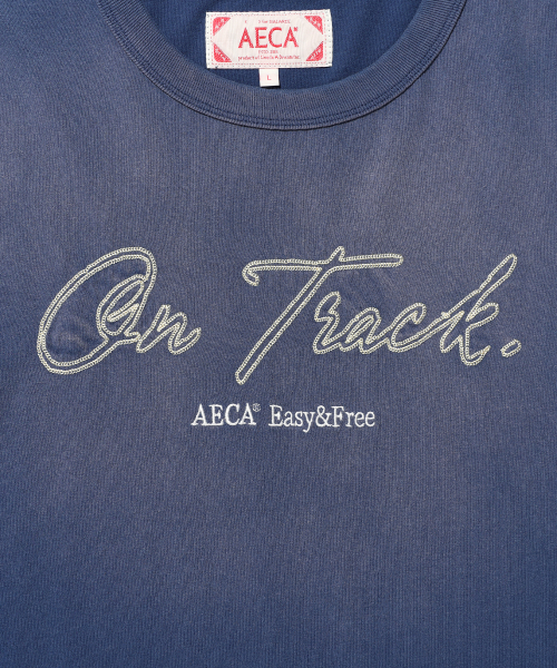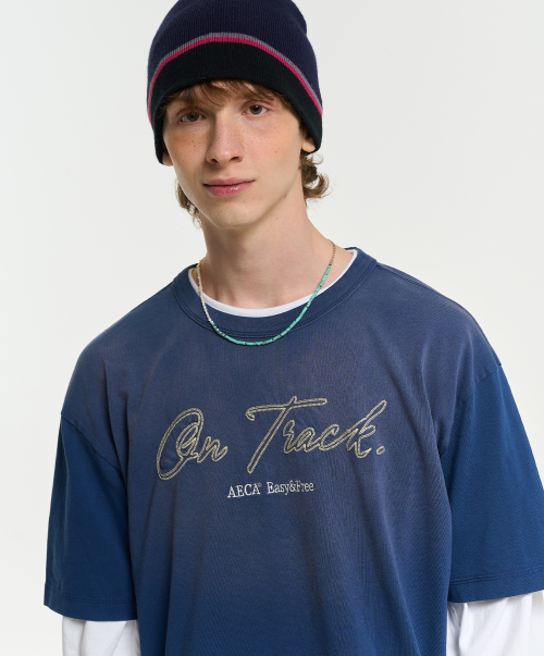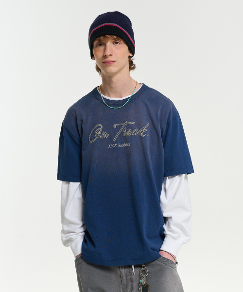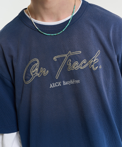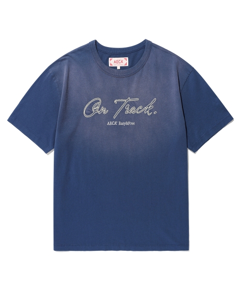 ON TRACK EMBROIDERY WASHED HALF SLEEVE TEE-DARK BLUE