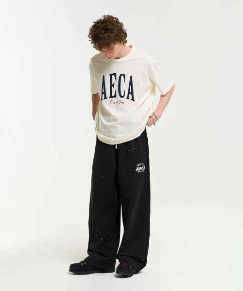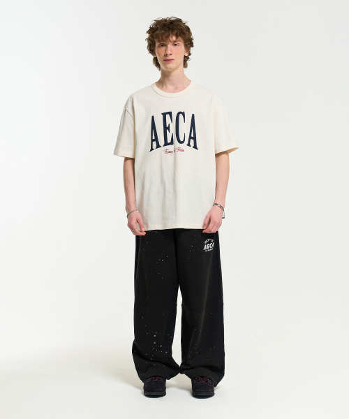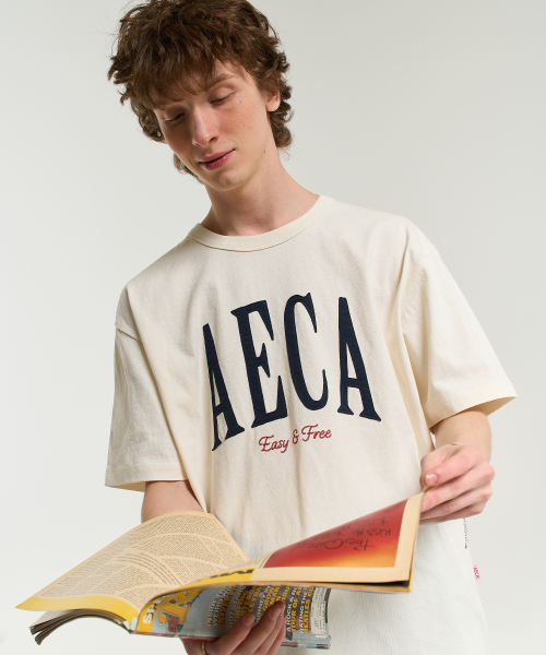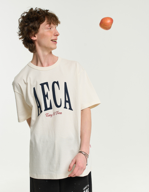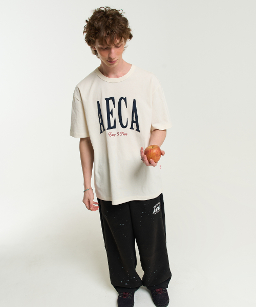 AECA CLASSIC LOGO DISTRESSED HALF SLEEVE TEE-ECRU