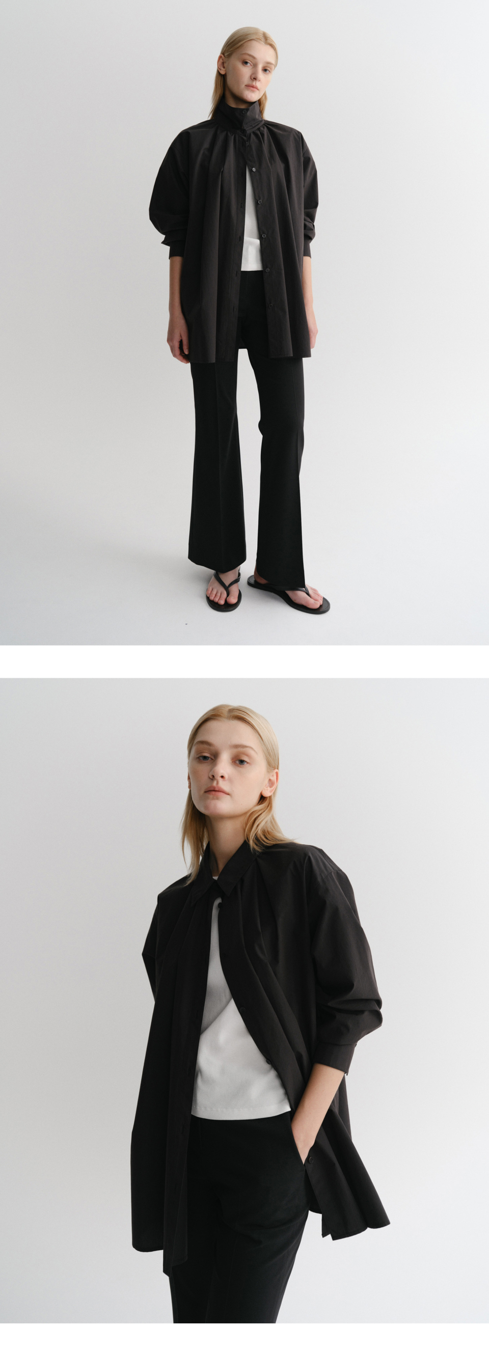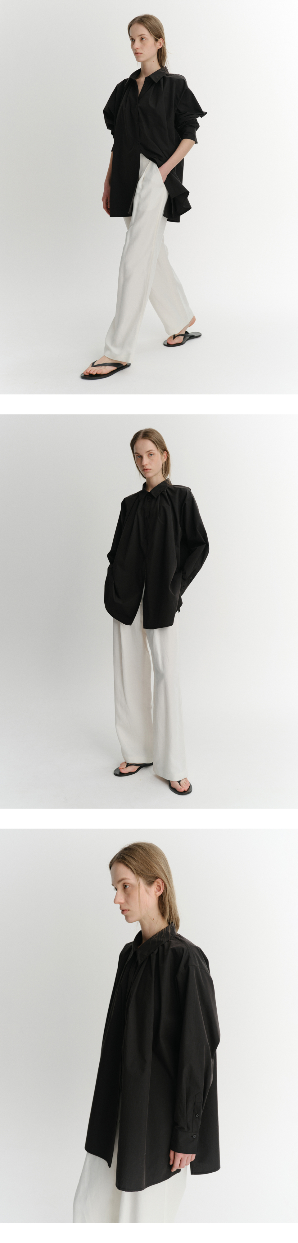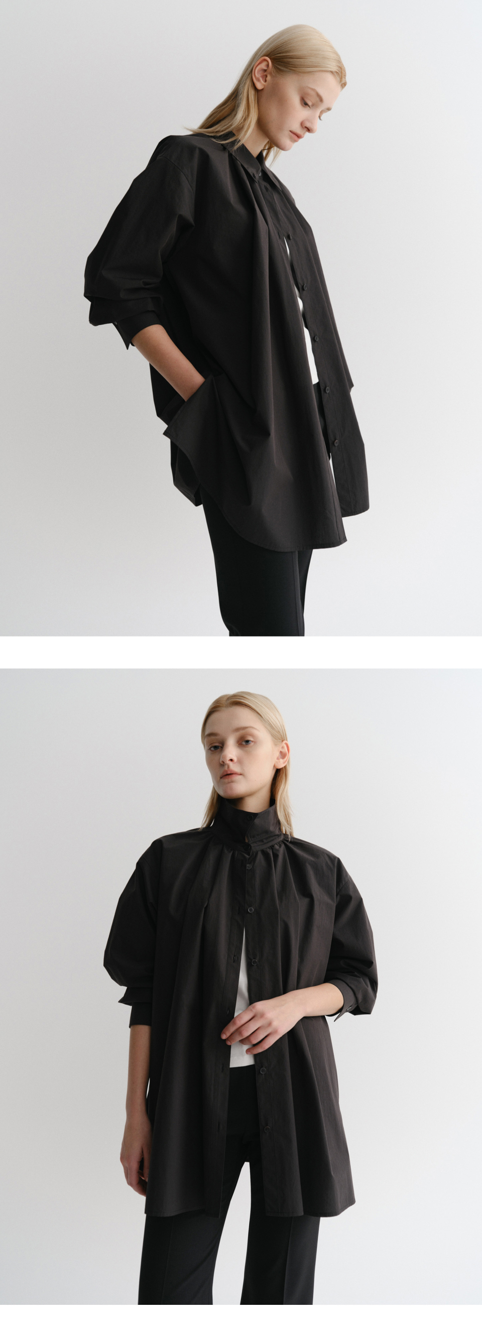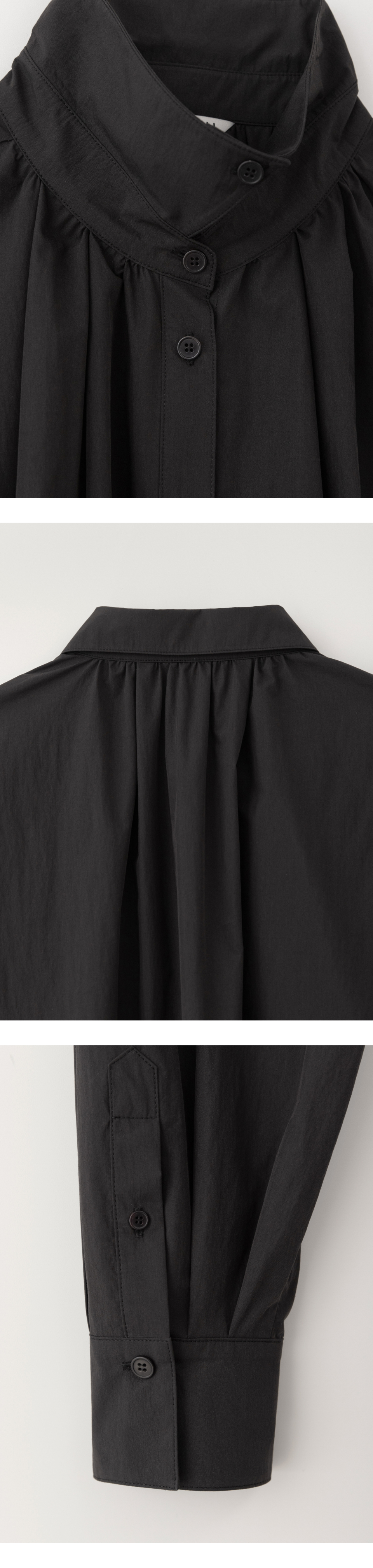 HIGH NECK SHIRRING SHIRT (BLACK)