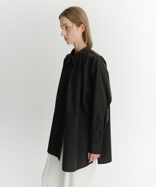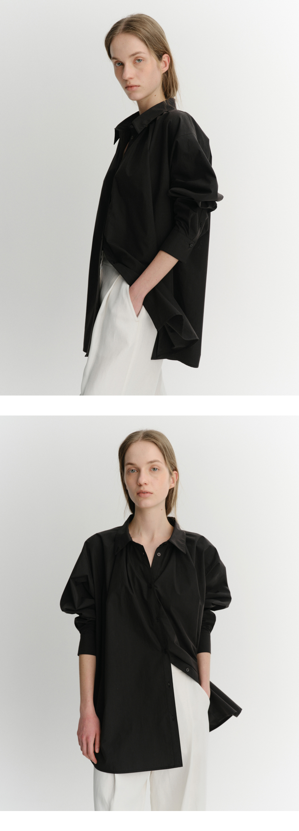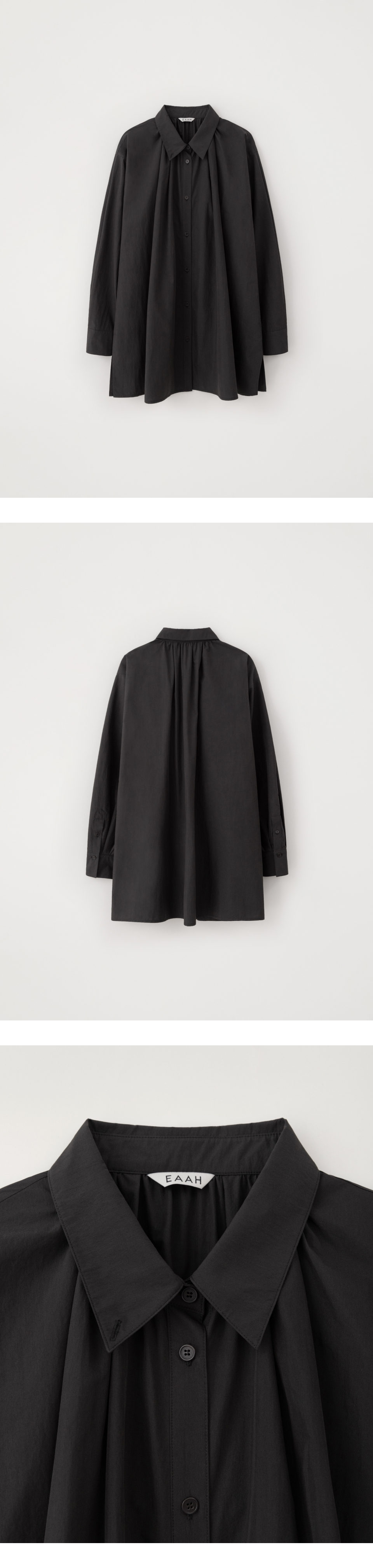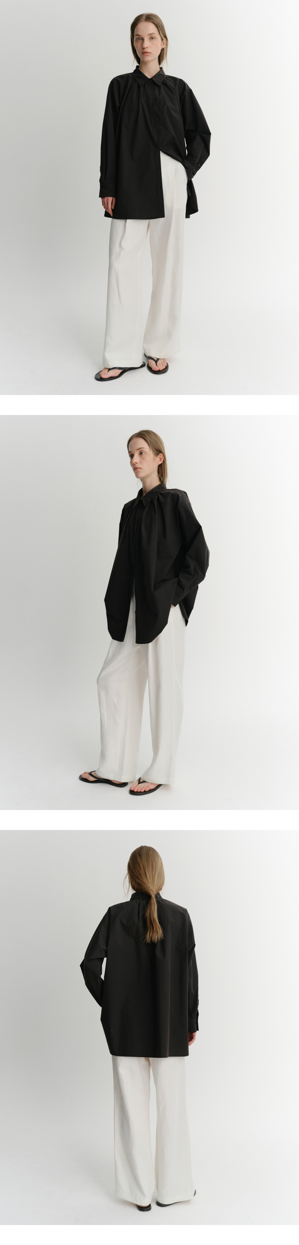 HIGH NECK SHIRRING SHIRT (BLACK)