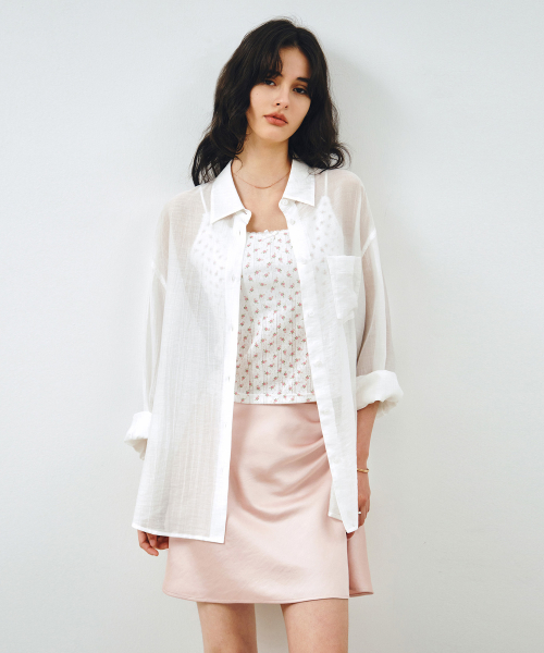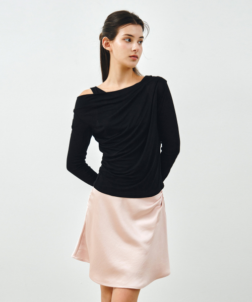 사이드 턱 새틴 미디 스커트 라이트핑크 MDSK033LPINK