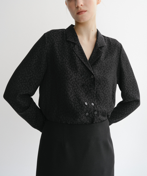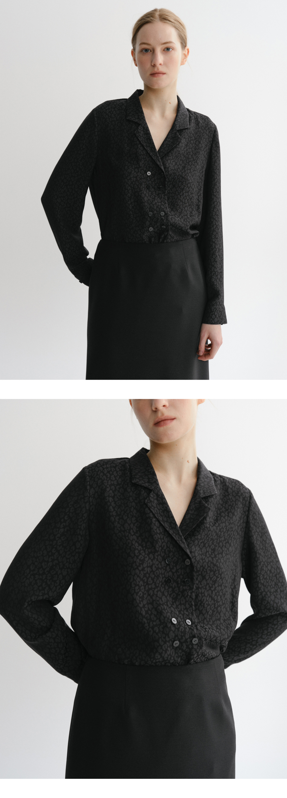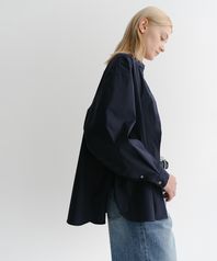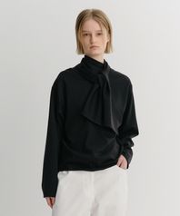 HIGH NECK SHIRRING SHIRT (BLACK)