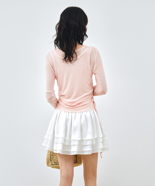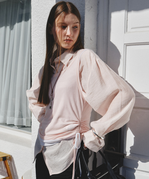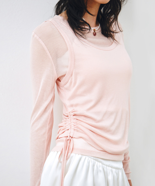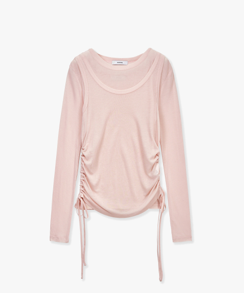 [SET] 사이드 셔링 레이어드 티셔츠 핑크 MDTS067PINK