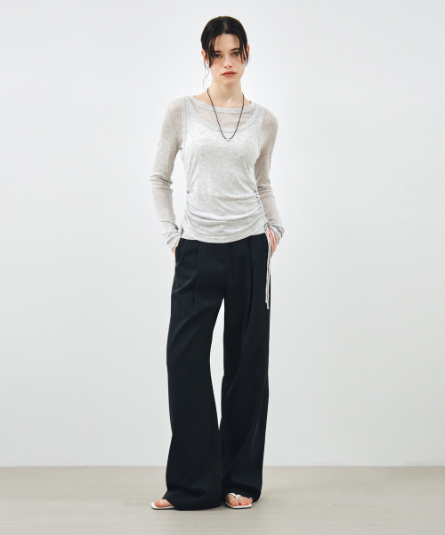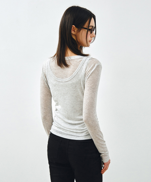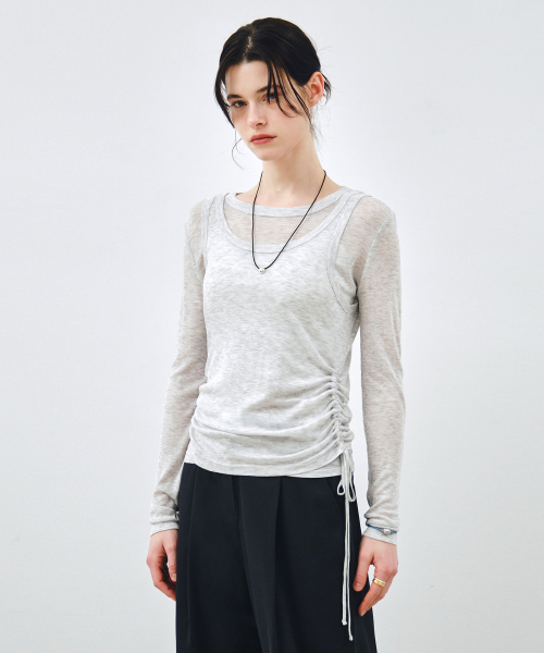 [SET] 사이드 셔링 레이어드 티셔츠 라이트그레이 MDTS067LGRAY