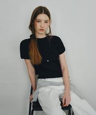 홀가먼트 하프넥 플리츠 니트 탑 블랙 MDKT107BLACK