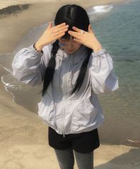 (우먼) 나글란 체크 후드 점퍼-라이트 카키